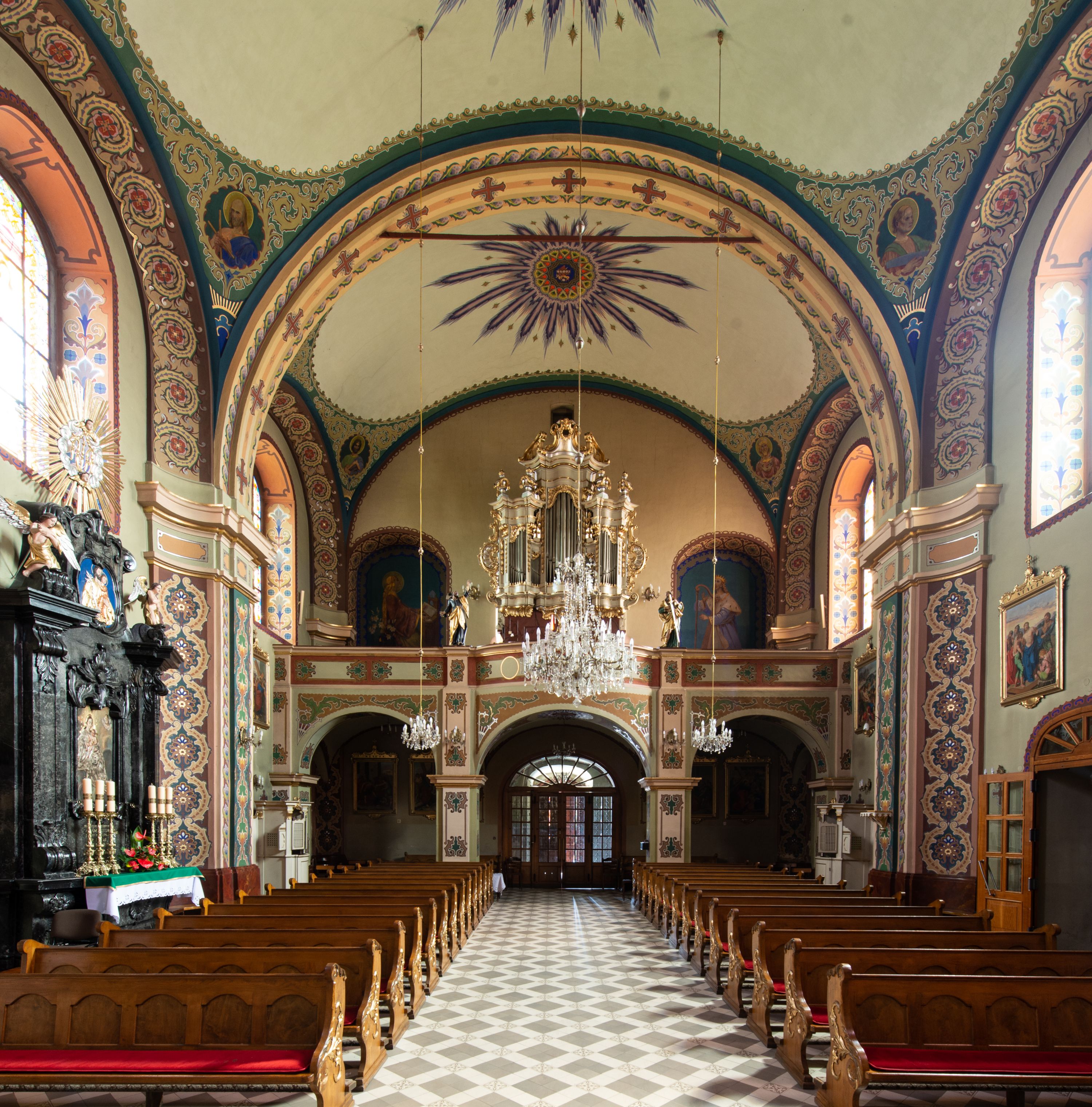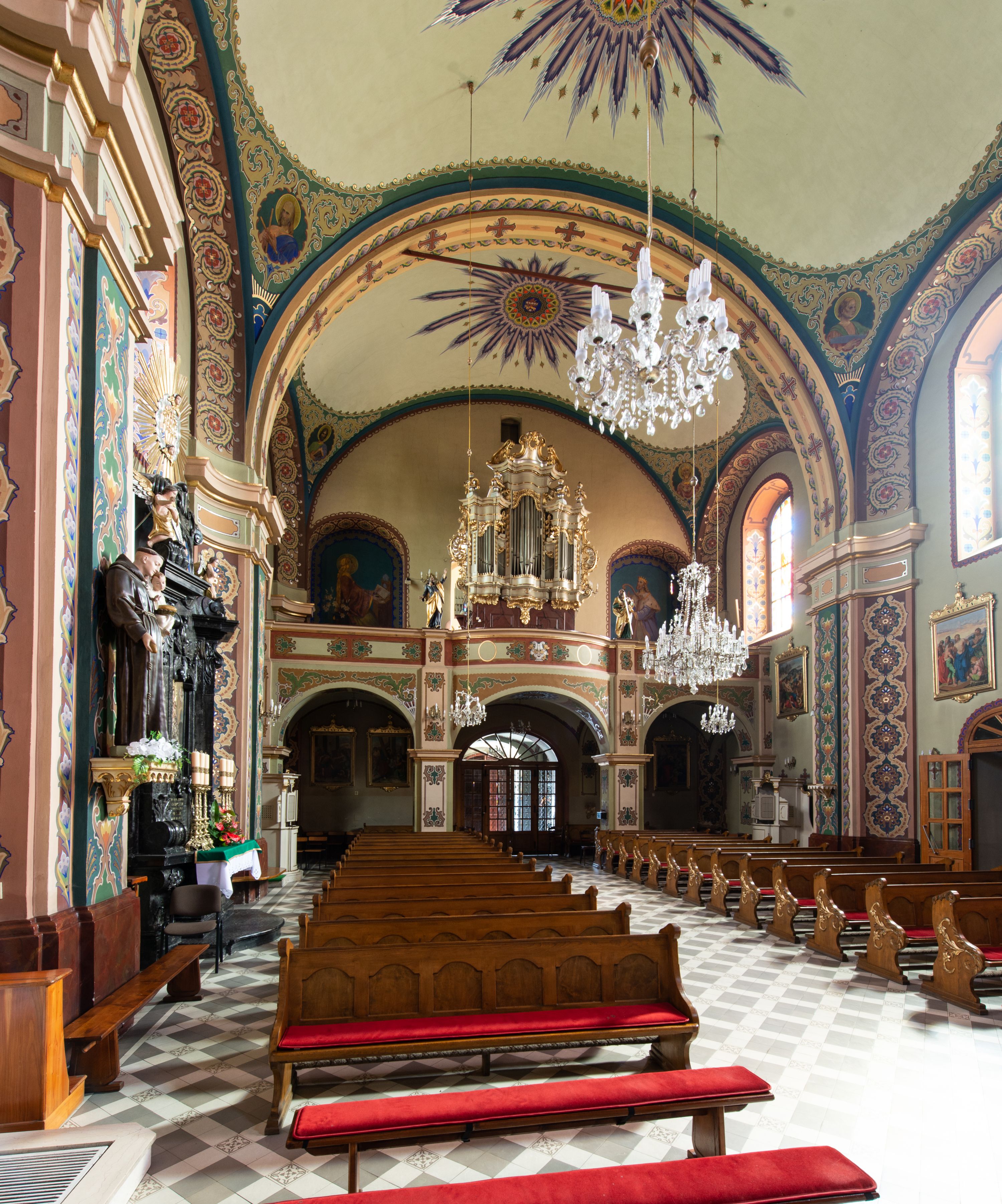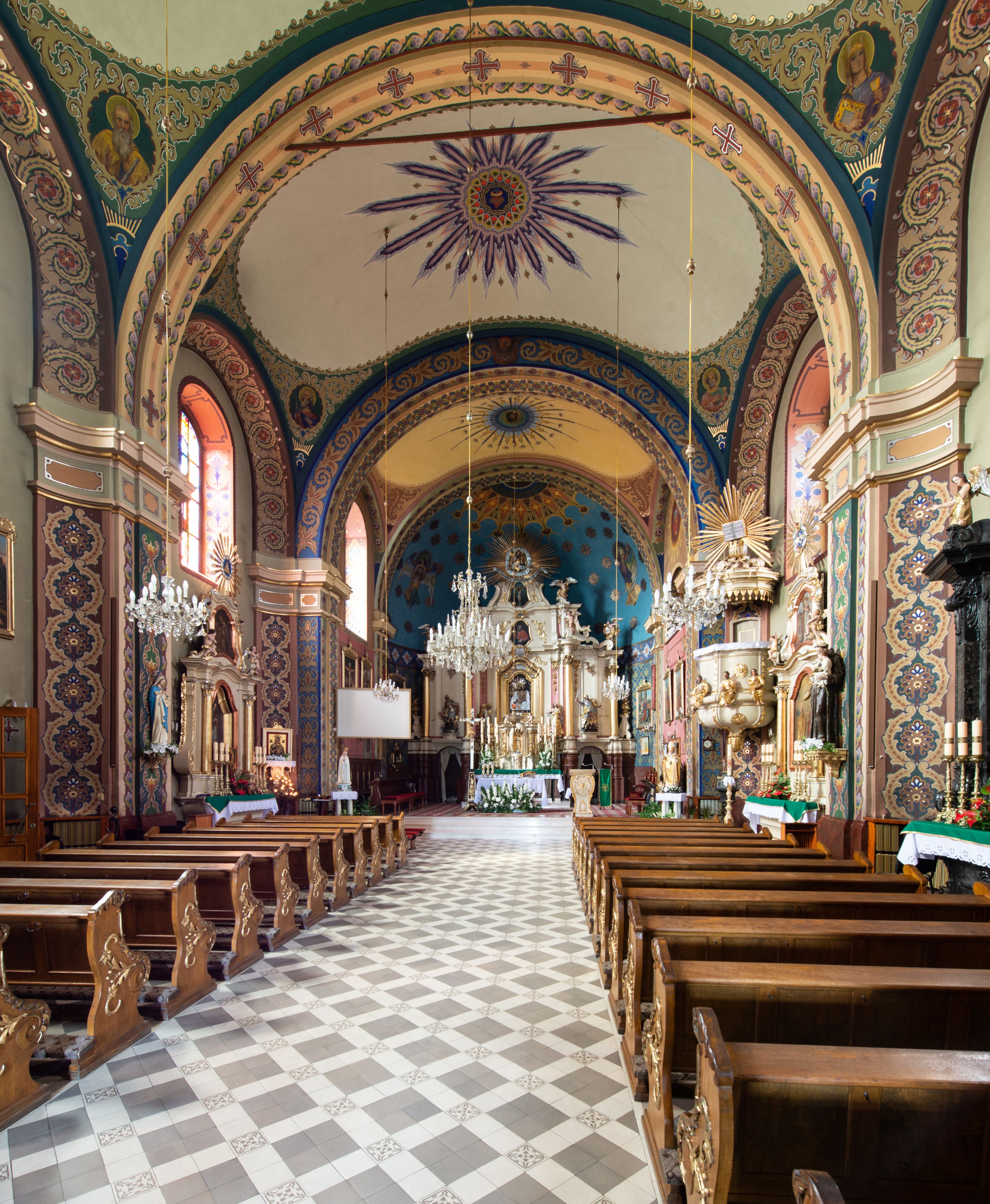 W aktach wizytacji z 1748 roku wskazano, że w nawie głównej była polichromia przedstawiająca 12 apostołów z ich symbolami, okna nowe, wykonane w tym roku, a posadzka była drewniana. We wnętrzu, przy łuku tęczowym znajdowały się nowe konfesjonały, na chórze muzycznym organy o siedmiu głosach, niedawno wybudowane i pomalowane, z tympanonem. W świątyni były wówczas już cztery ołtarze, prócz wymienionych wyżej, również retabulum Matki Boskiej Częstochowskiej po prawej stronie nawy, obok ołtarza Jezusa. W tym czasie prowadzono prace przy kościele. W 1752 roku dobudowano do świątyni kaplicę ufundowaną przez Annę Russocką z Graboszyc, w której umieszczono cudowny obraz Chrystusa. Prace budowlane prowadził Szymon Ficek. W dokumentach z 1792 roku wskazano, że przeprowadzono remont świątyni, położono kamienną posadzkę oraz poprawiono dzwonnicę.