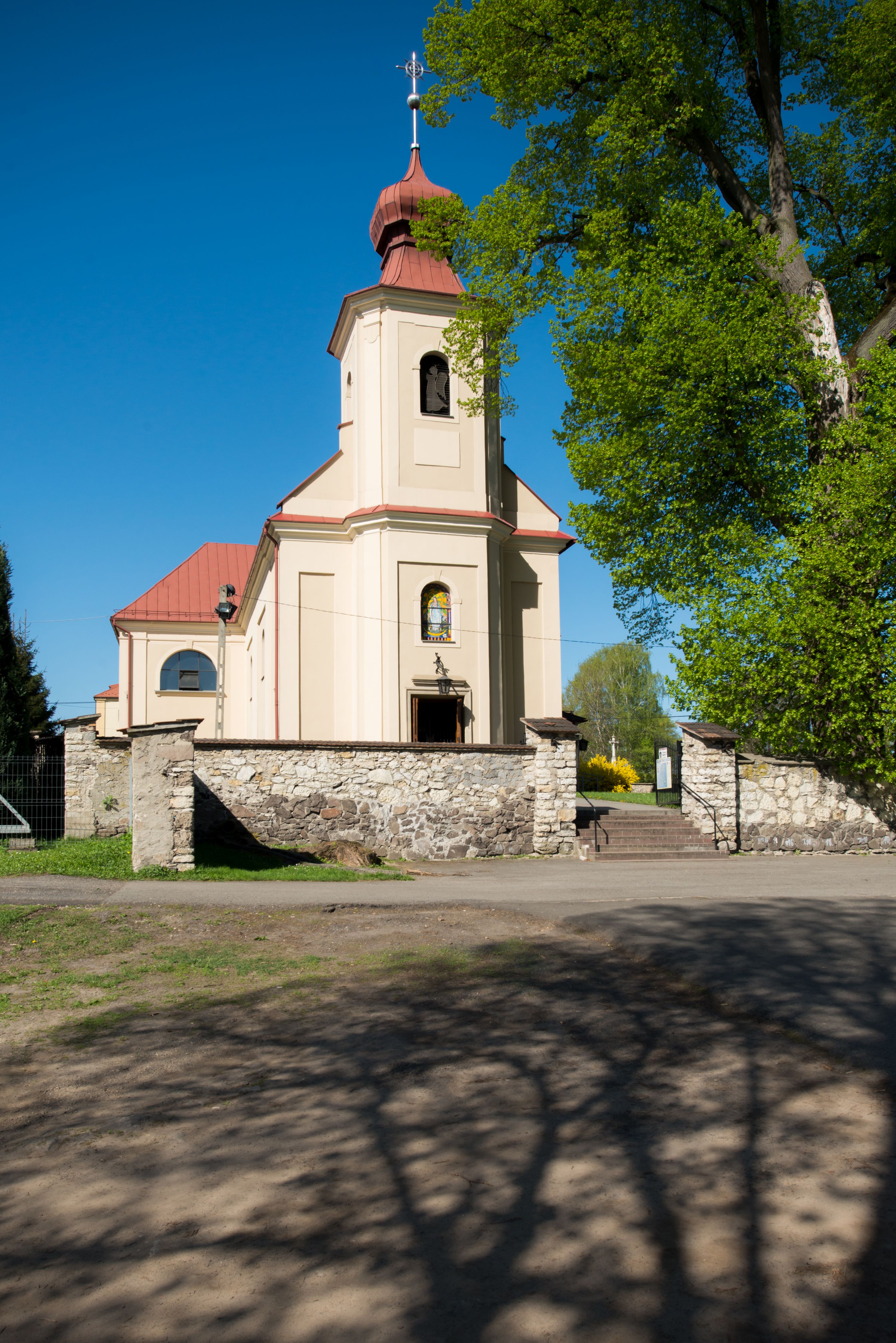 Budynek jednonawowy, z wieżą częściowo wtopioną w elewację zachodnią oraz ściany zewnętrzne o podziałach ramowych i zaokrąglonych narożnikach nawiązują do powstałego na Śląsku i w krajach habsburskich typu szeregowego kościoła. Z tego założenia wykształcił się później, w czasie zaborów typ kościoła józefińskiego. Świątynia ma skromne cechy sztuki późnego baroku.