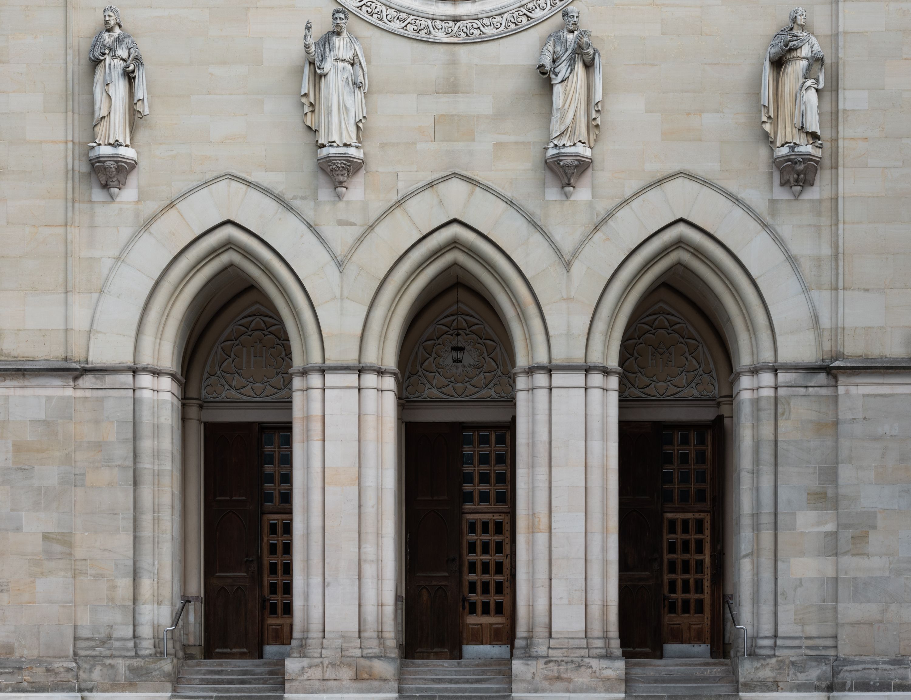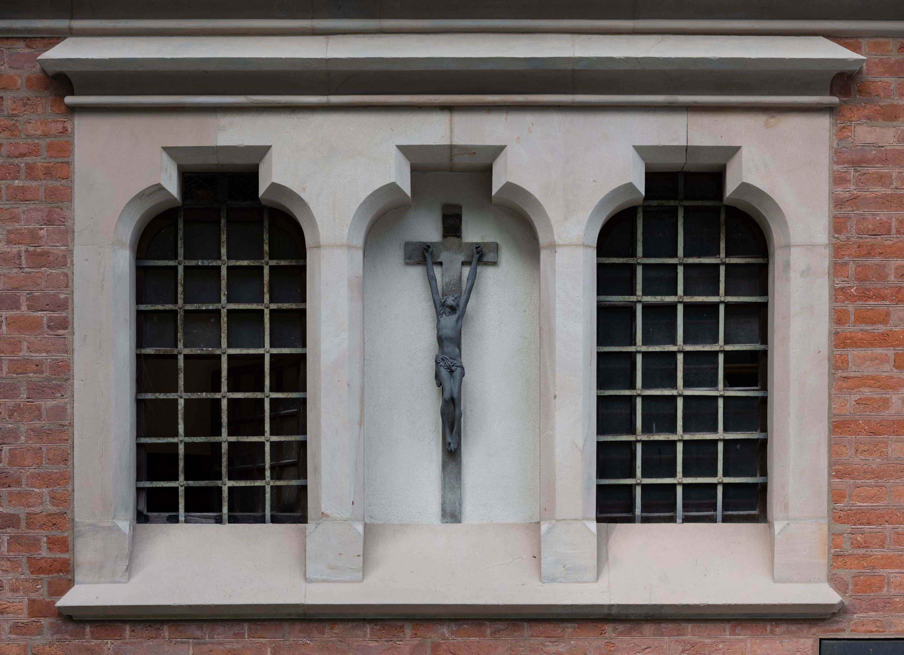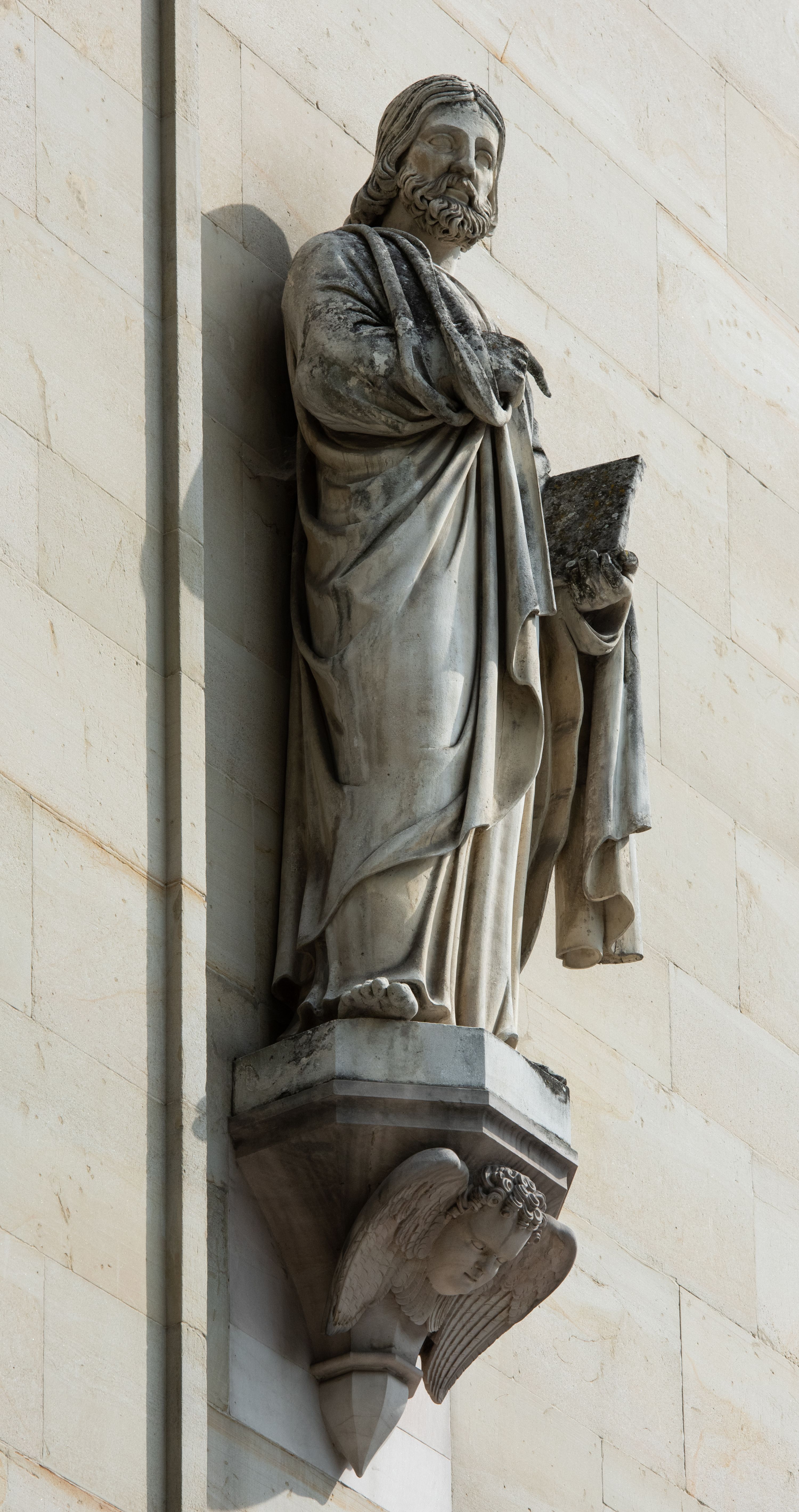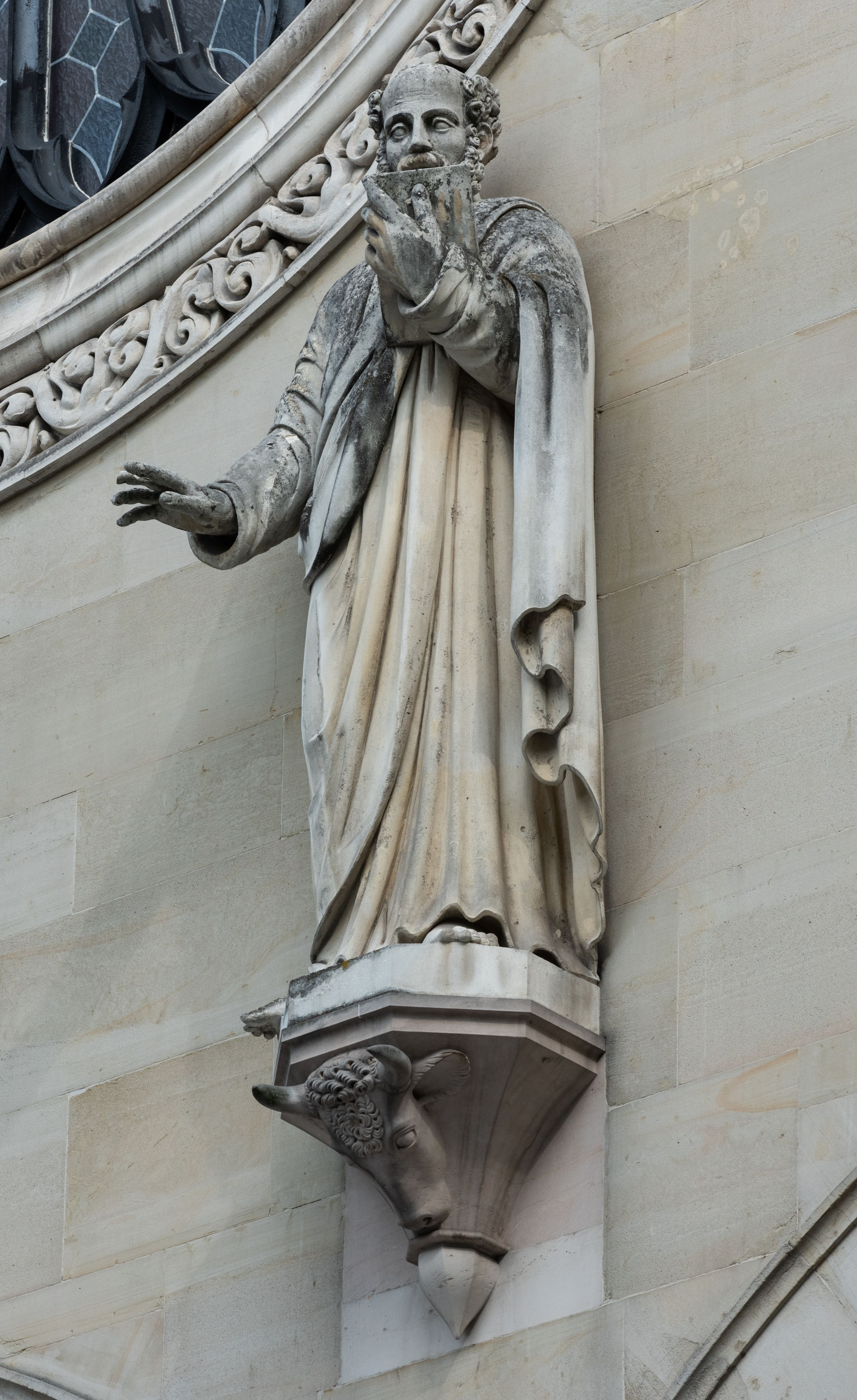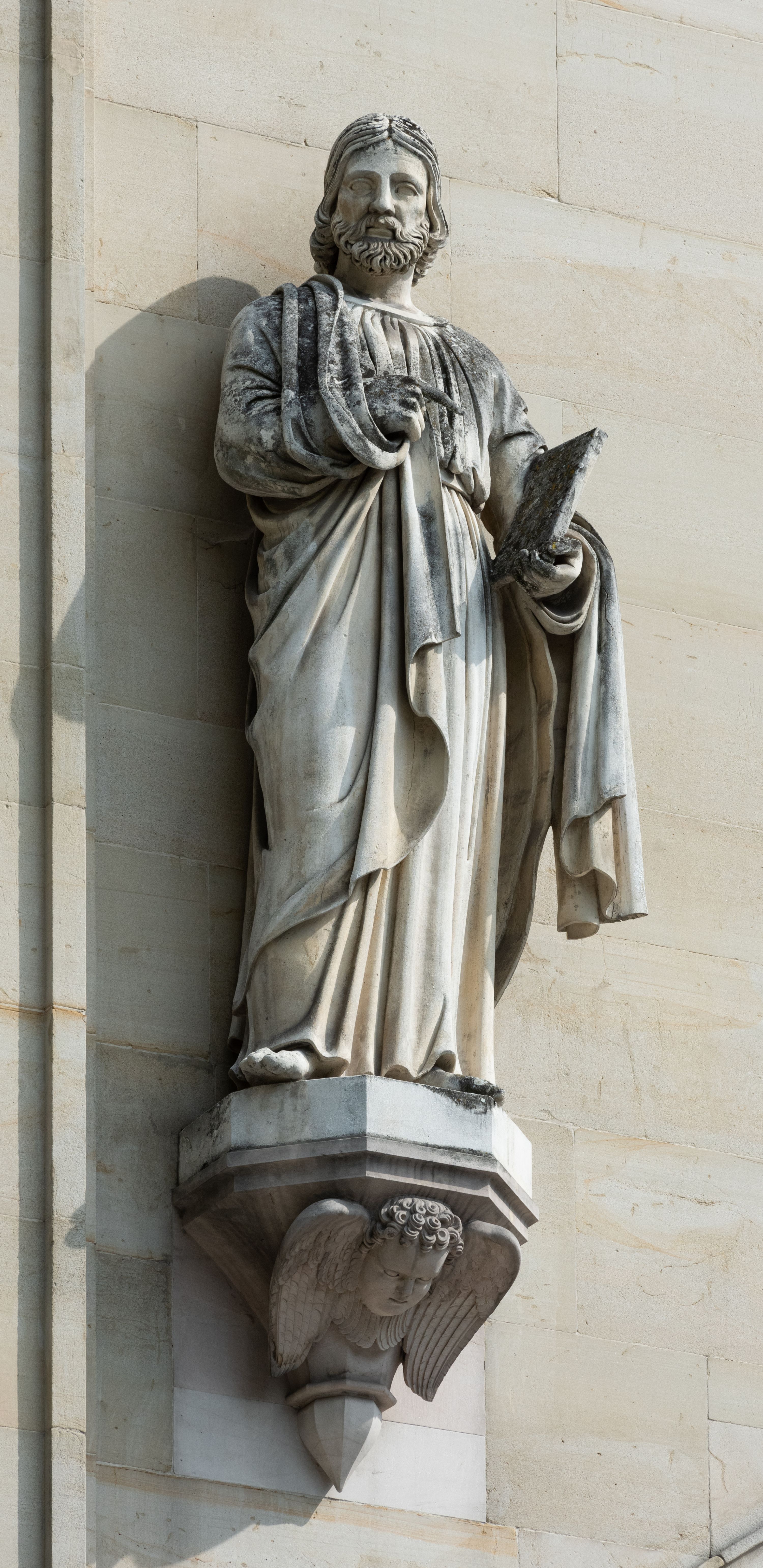 Kościół z cegły i kamienia. Na rzucie krzyża łacińskiego, jednonawowy z wciągniętymi do wnętrza przyporami. Prezbiterium krótkie, zamknięte pięcioma bokami ośmioboku. Korpus jednonawowy, czteroprzęsłowy, po bokach z płytkimi wnękami-kaplicami pomiędzy przyporami, poprzedzony od zach. przedsionkiem. Do pierwszego przęsła dostawione dwie symetryczne, trójboczne kaplice, nad nimi dwie czworoboczne wieże. Zakrystia przy prezbiterium na osi kościoła. Sklepienia krzyżowo-żebrowe, w kaplicach gwiaździste, w zakrystii kolebkowe zaostrzone i krzyżowe z lunetami. Fasada z kamienną okładziną, trójosiowa, z trzema ostrołukowymi, profilowanymi arkadami u dołu, rzeźbami czterech Ewangelistów powyżej i rozetą na osi; flankowana lizenami zwieńczonymi czworobocznymi latarniami nakrytymi ostrosłupowymi hełmami. Neogotycki, wzniesiony według projektu architekta K.F. Schinkla, w latach 1829-1844 (z przerwą 1832-1840).
