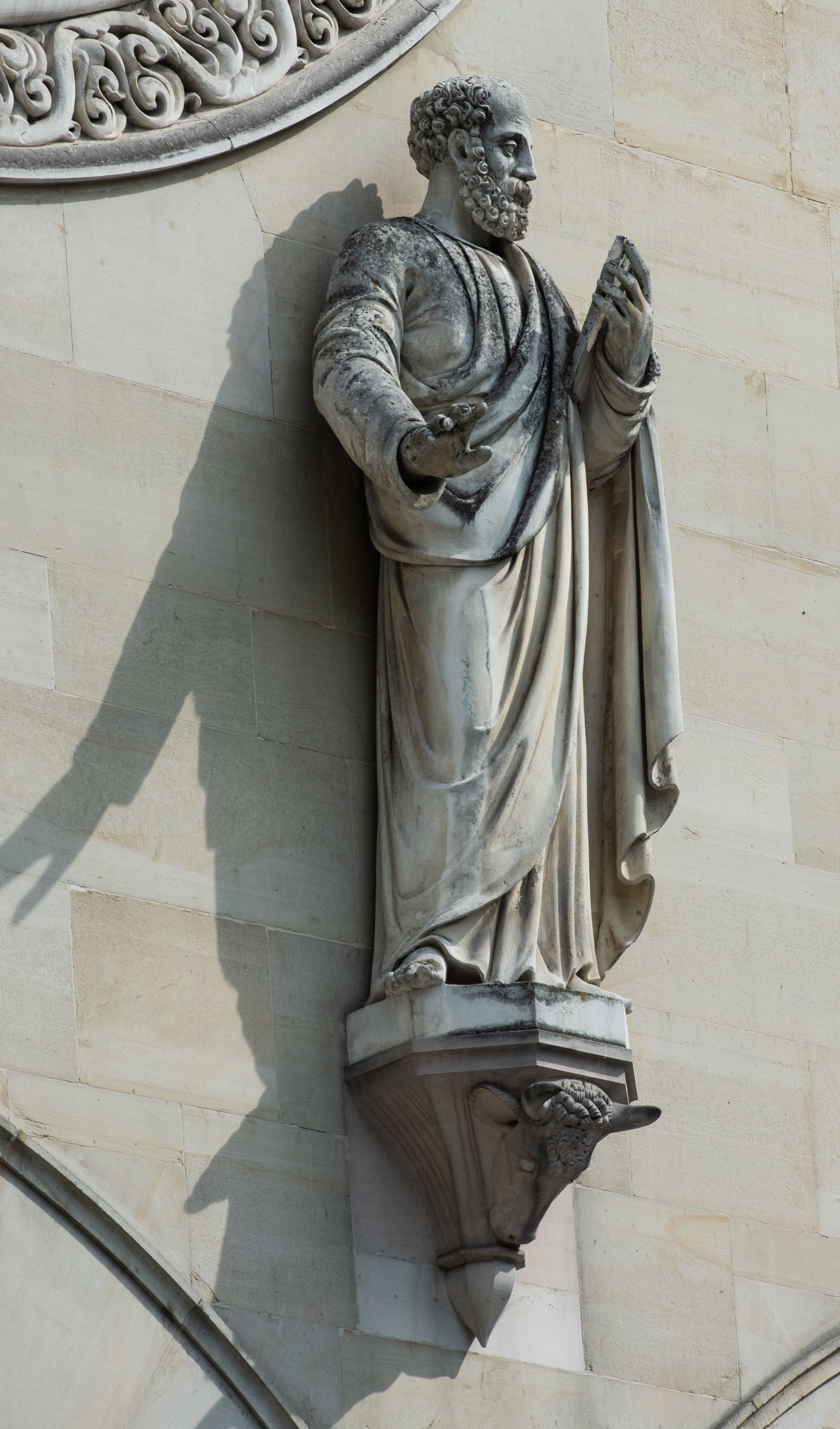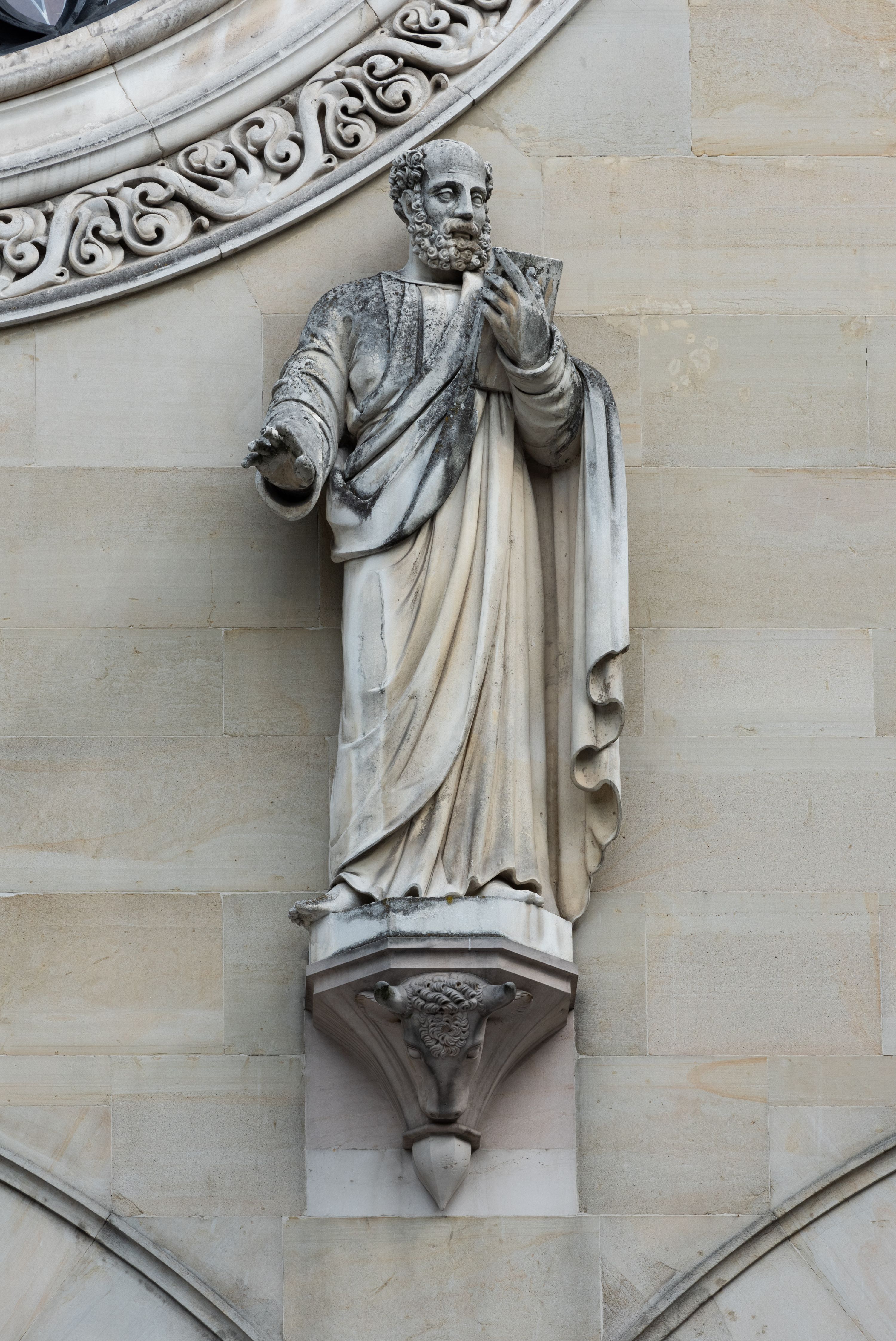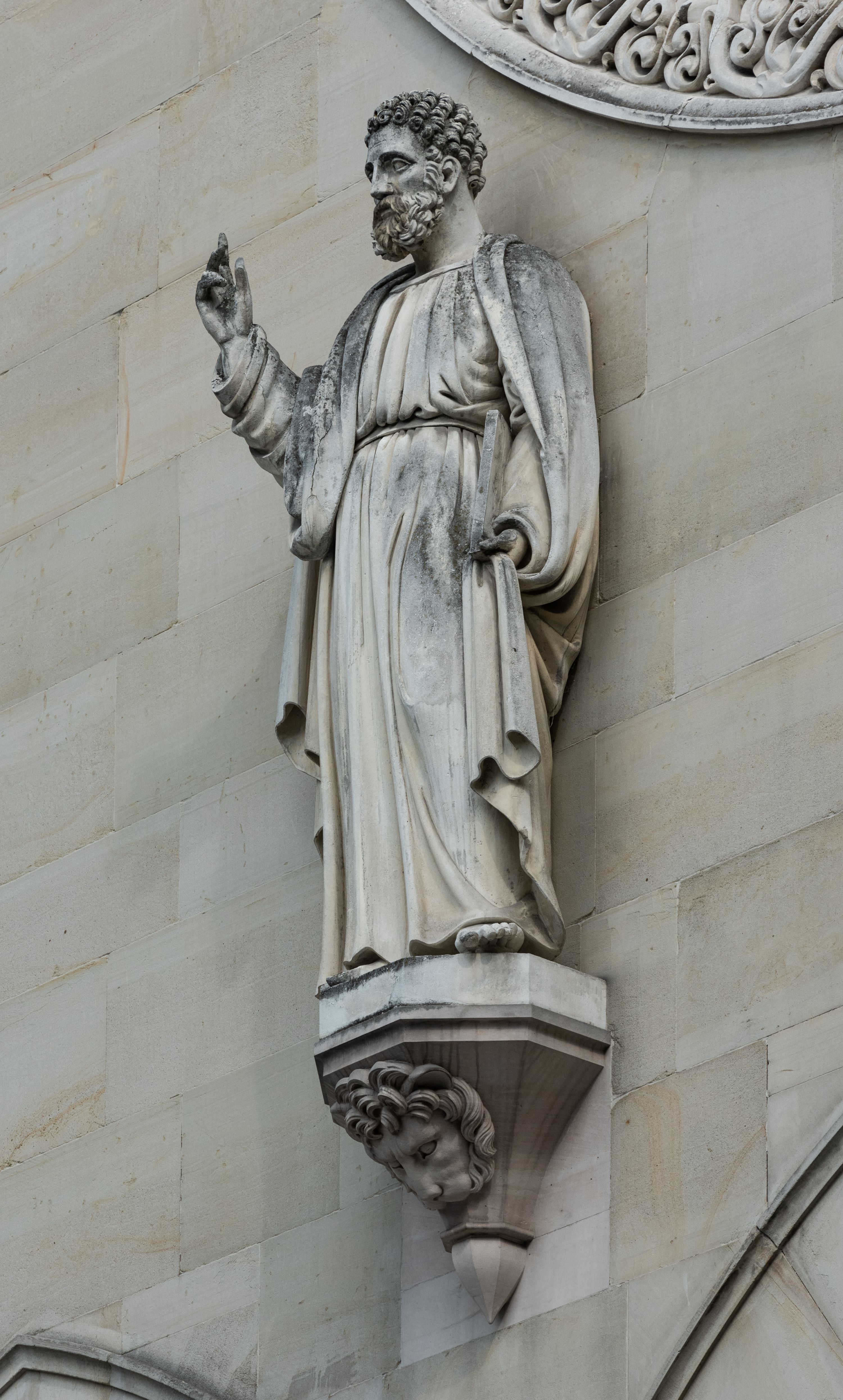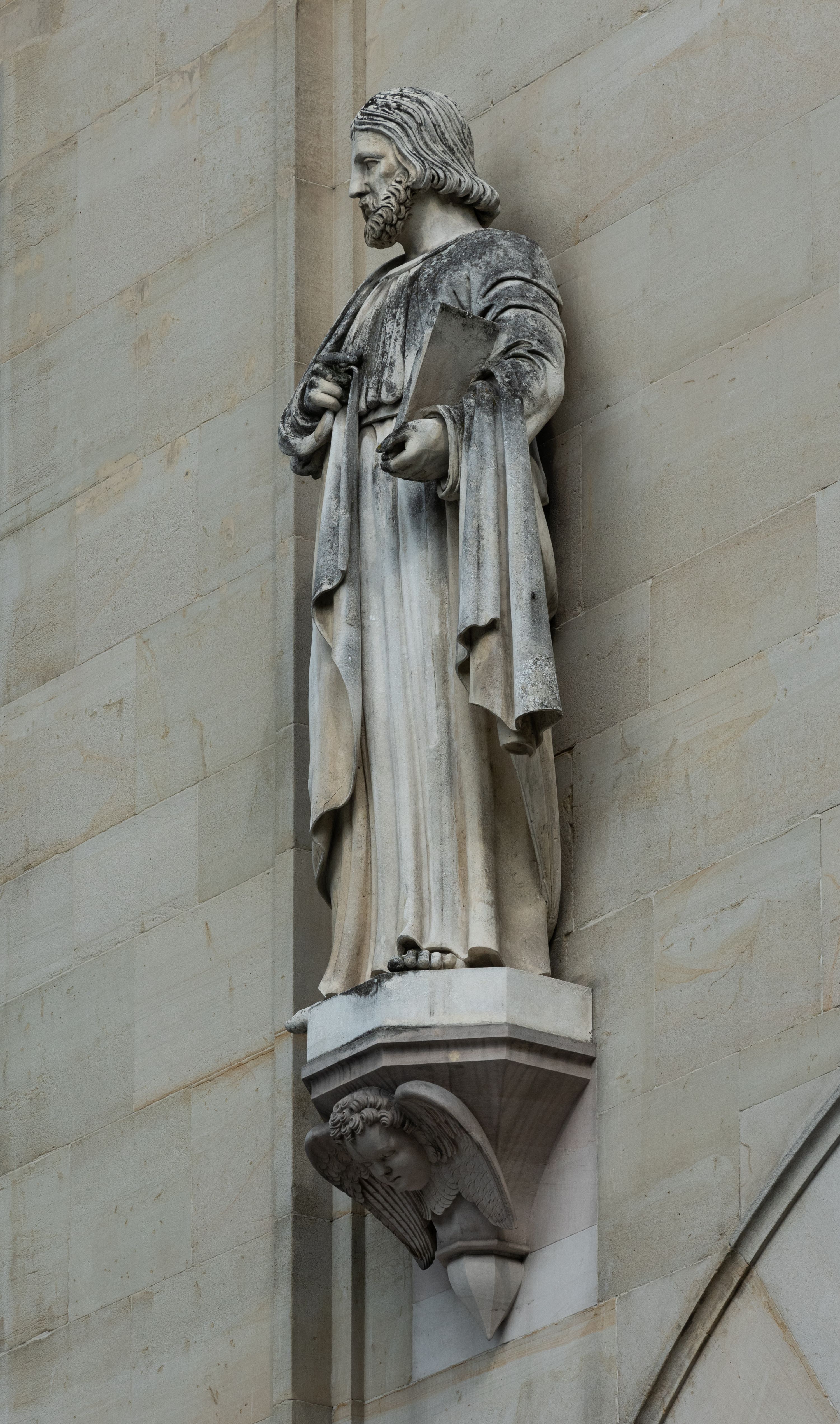 Kościół z cegły i kamienia. Na rzucie krzyża łacińskiego, jednonawowy z wciągniętymi do wnętrza przyporami. Prezbiterium krótkie, zamknięte pięcioma bokami ośmioboku. Korpus jednonawowy, czteroprzęsłowy, po bokach z płytkimi wnękami-kaplicami pomiędzy przyporami, poprzedzony od zach. przedsionkiem. Do pierwszego przęsła dostawione dwie symetryczne, trójboczne kaplice, nad nimi dwie czworoboczne wieże. Zakrystia przy prezbiterium na osi kościoła. Sklepienia krzyżowo-żebrowe, w kaplicach gwiaździste, w zakrystii kolebkowe zaostrzone i krzyżowe z lunetami. Fasada z kamienną okładziną, trójosiowa, z trzema ostrołukowymi, profilowanymi arkadami u dołu, rzeźbami czterech Ewangelistów powyżej i rozetą na osi; flankowana lizenami zwieńczonymi czworobocznymi latarniami nakrytymi ostrosłupowymi hełmami. Neogotycki, wzniesiony według projektu architekta K.F. Schinkla, w latach 1829-1844 (z przerwą 1832-1840).