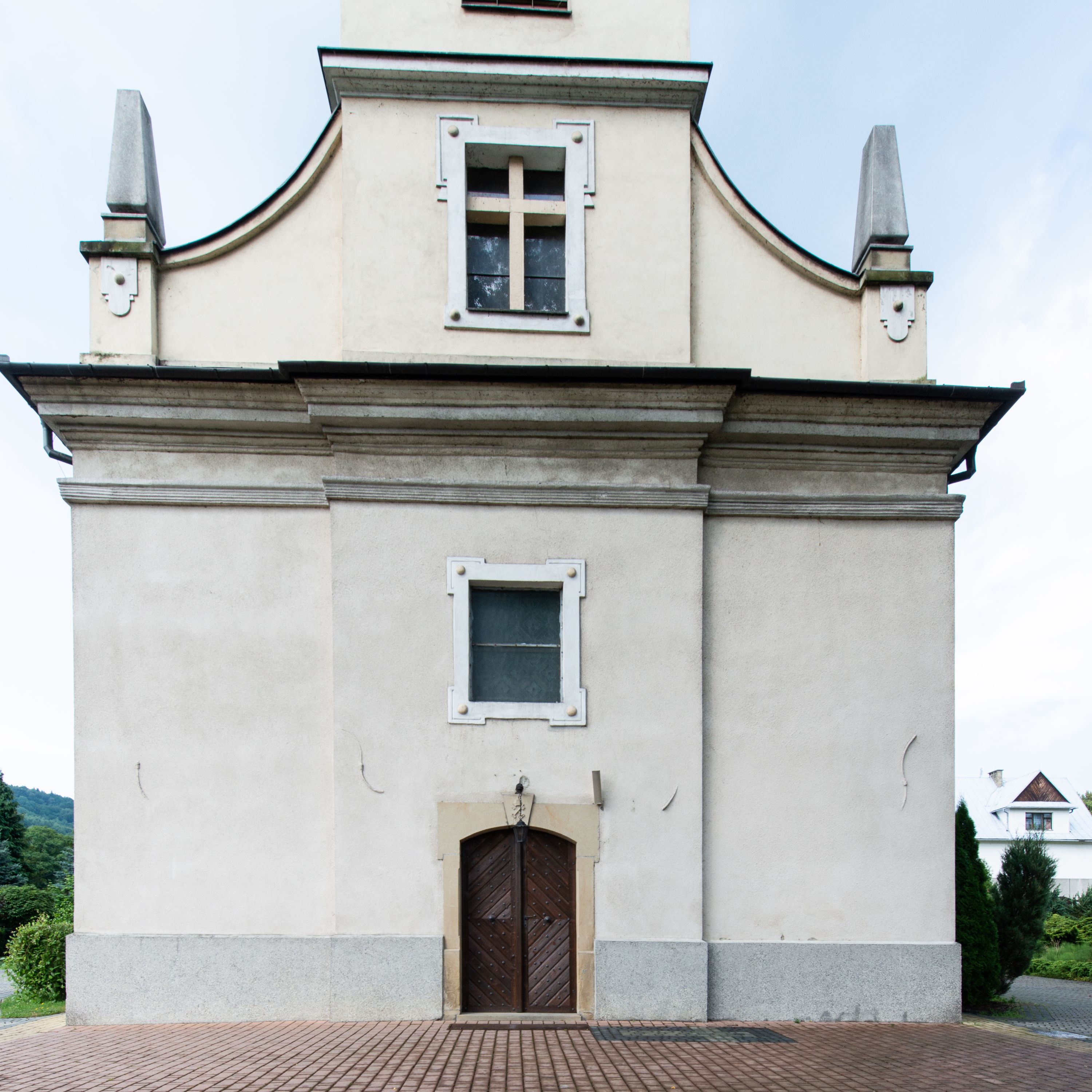 Elewacja kościoła bez podziałów architektonicznych z zaznaczonym jedynie profilowanym gzymsem podokapowym. Fasada wschodnia trójosiowa ze środkowym ryzalitem, wieża włączona w korpus kościoła. W drugiej kondygnacji spływy flankujące wieżę, zakończone masywnymi sterczynami. Wieża nakryta dachem namiotowym z hełmem, na szczycie iglica. Na środku nawy ażurowa wieżyczka na sygnaturkę, nakryta daszkiem namiotowym z hełmem. Dach nad korpusem kościoła i zakrystią jednokalenicowy, dwuspadowy, nad prezbiterium i transeptem trójspadowy, nad kruchtą siodłowy.