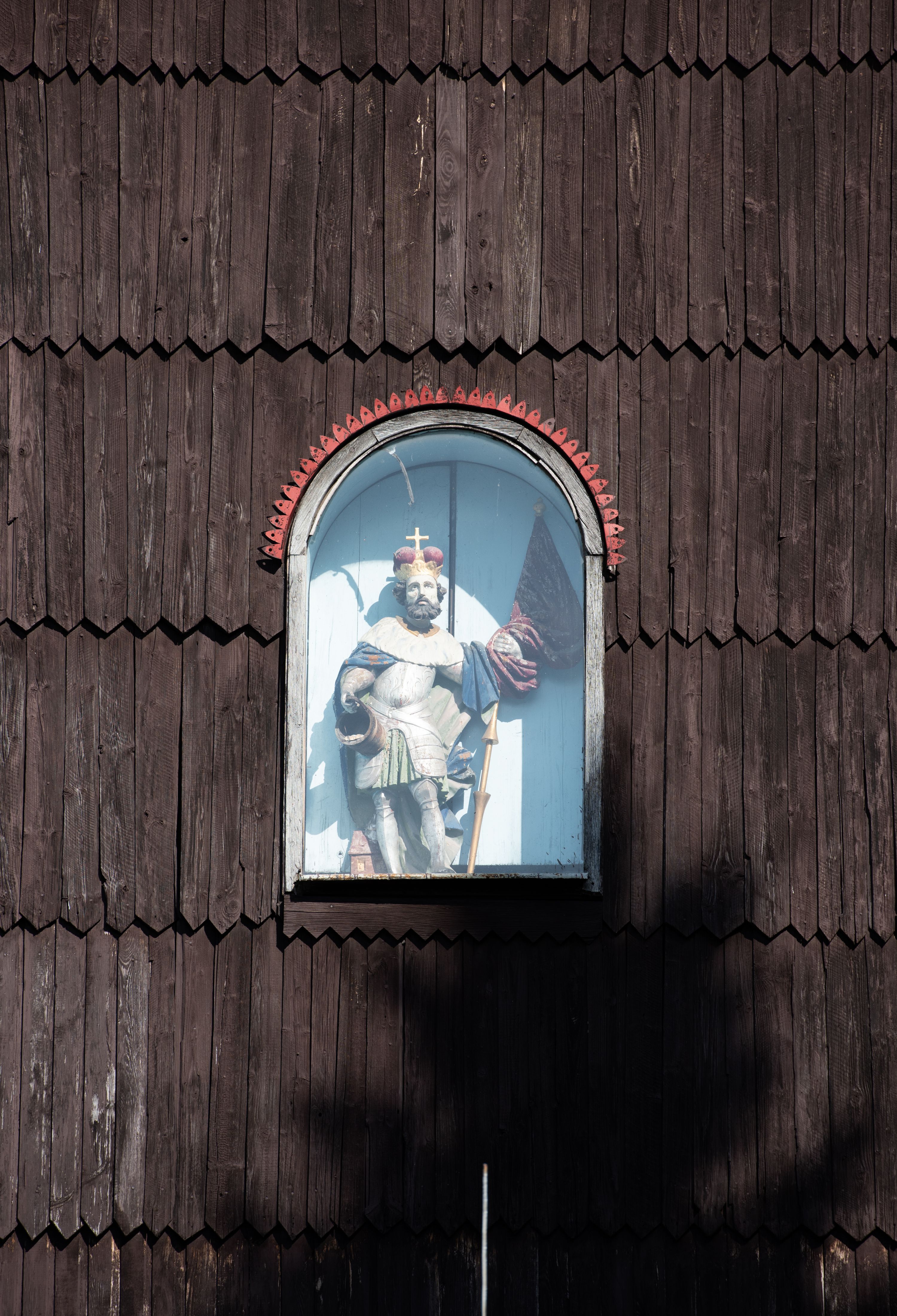 Kościół drewniany o konstrukcji zrębowej, elewacje jednolite, szalowane gontem. Wieża i kruchta zachodnia o konstrukcji słupowo-ramowej, narożne słupy nośne wzmocnione krzyżami św. Andrzeja. Więźba dachowa drewniana, krokwiowa. Budynek na kamiennym podmurowaniu.