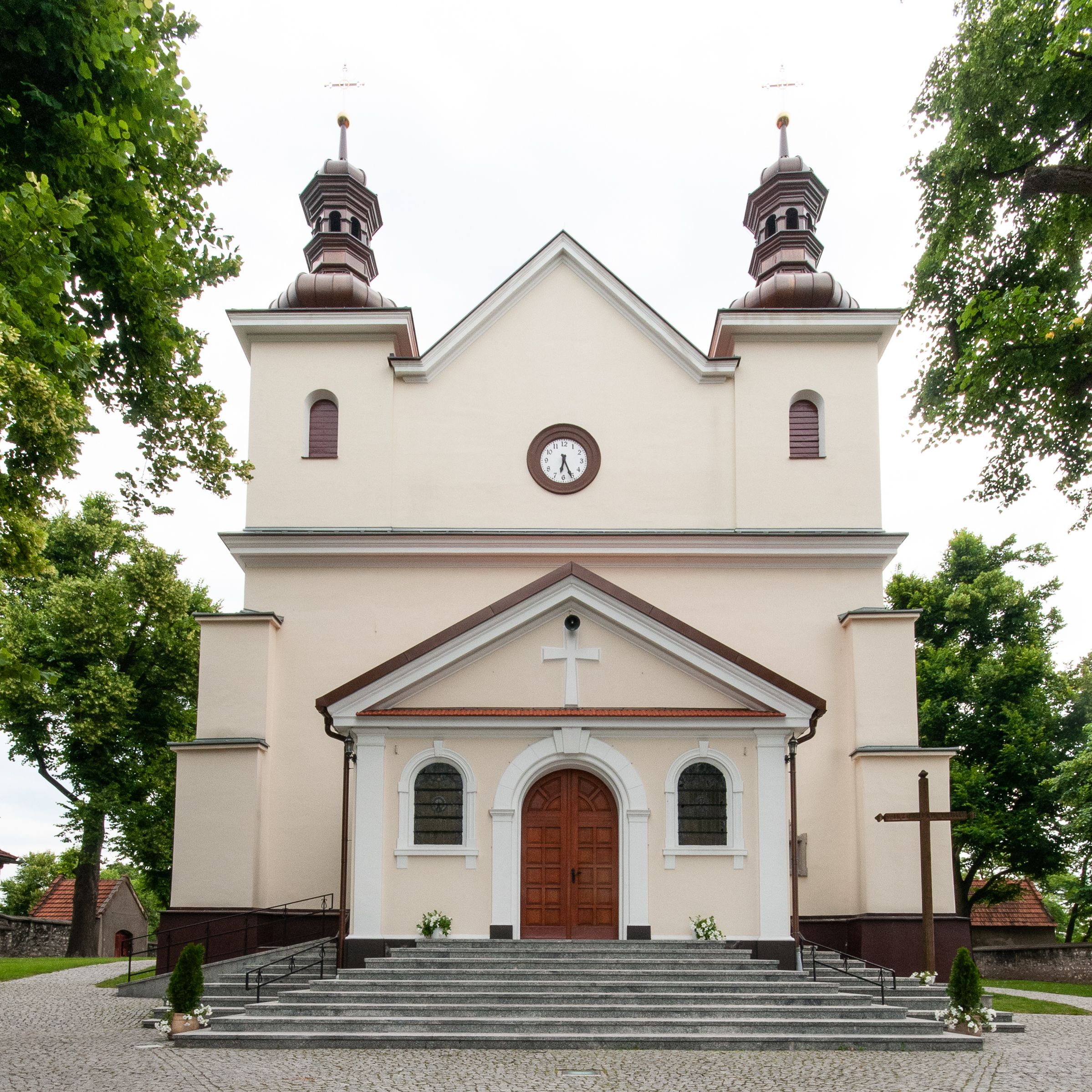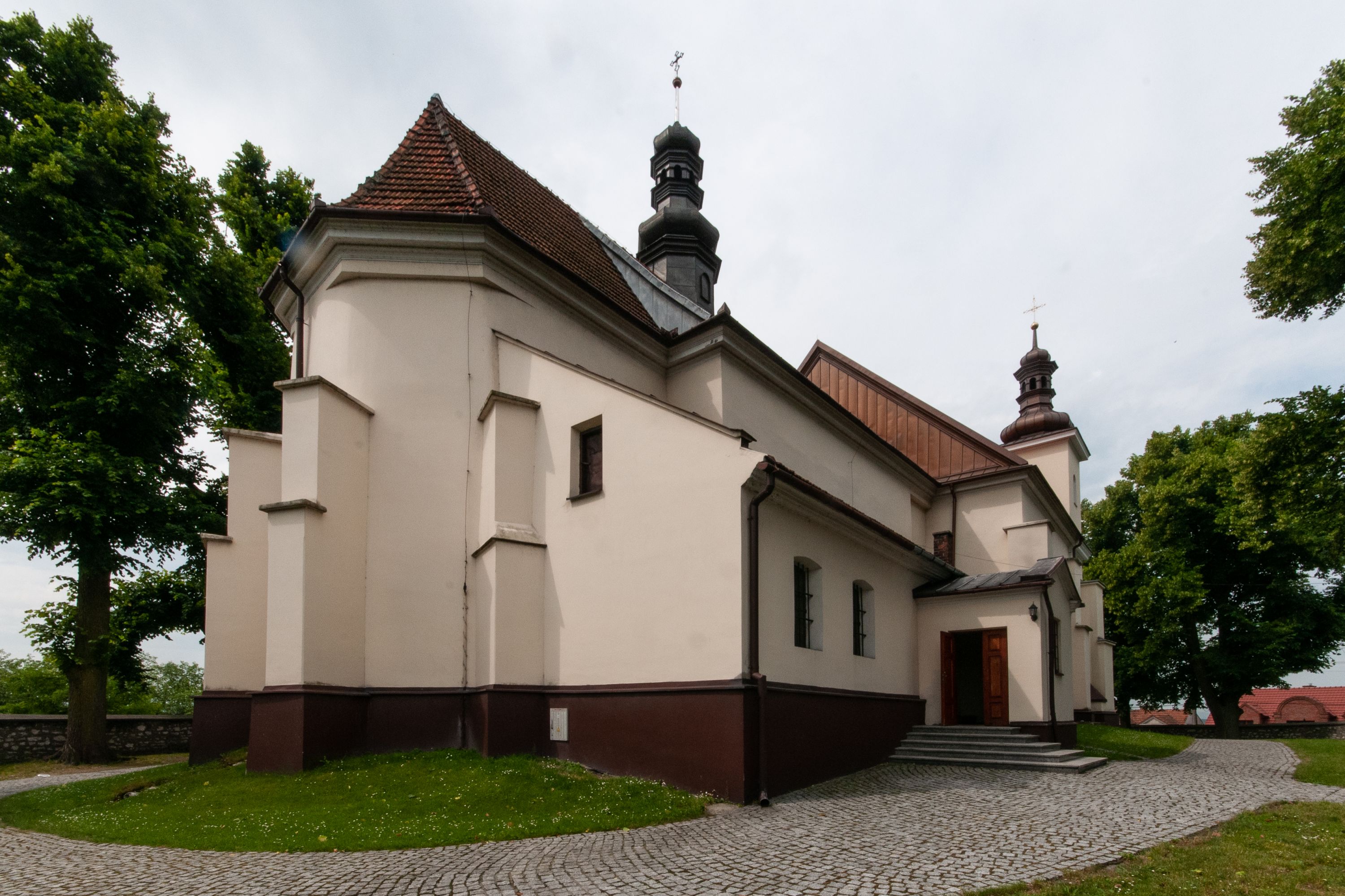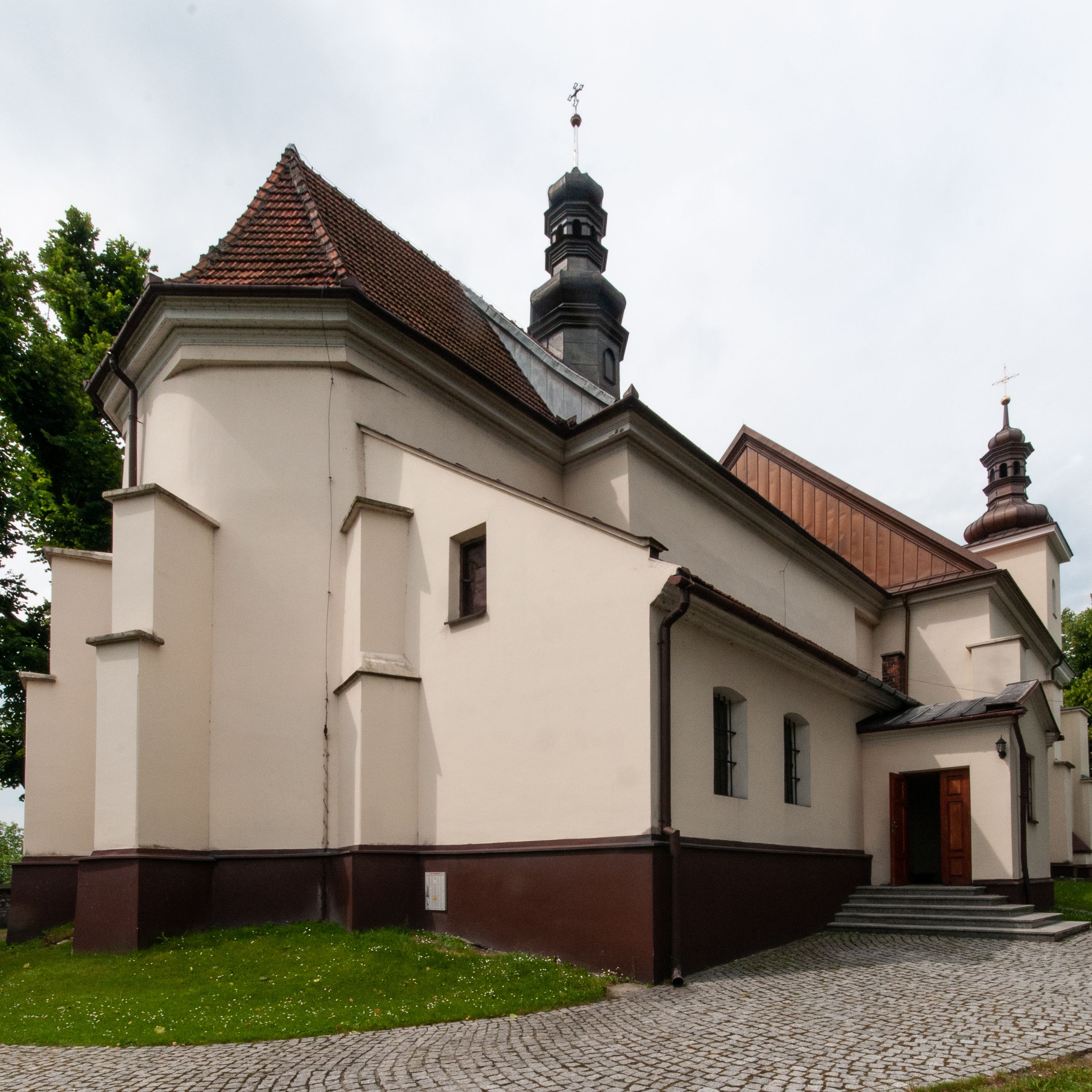 Parafia była wzmiankowana po raz pierwszy w pierwszej połowie XIV wieku, potem w zapiskach Jana Długosza z 1440 roku. Obecne prezbiterium sprzed 1440 roku jest jedyną częścią, która ocalała po pożarze kościoła w czasie potopu szwedzkiego (1655). W 1680 roku świątynia została odbudowana i powiększona, a jej poświęcenia dokonał sufragan krakowski, biskup Mikołaj Oborski. Następna rozbudowa kościoła w kierunku zachodnim nastąpiła w latach 1788-1791. Portal zachodni przesunięto w czasie remontu, tak by nadal mógł być używany jako wejściowy. W 1900 roku położono nową posadzkę, a w 1901 roku dobudowano przedsionek oraz przedłużono zakrystię, by zmieścić tam również skarbiec (obecnie salka i kotłownia). W 1930 roku kościół został odmalowany, oczyszczono ołtarze, obrazy, odnowiono i pomalowano chór, organy, drzwi, ławki, okna oraz stacje drogi krzyżowej, a także wymieniono schody na chór. W 1933 roku dobudowano wieże i odnowiono fasadę, poszerzając schody. Pod koniec 1953 roku wybudowano i poświęcono nowe organy. W 1962 roku zmieniono polichromię kościoła, a w 1966 zamontowano piec do ogrzewania. W 1983 roku nastąpił remont kościoła, w latach 2002-2003 pomalowano fasadę i elewacje, zamontowano oświetlenie zewnętrzne, zaś w latach 2010-2011 wyremontowano dachy i odnowiono witraże, dwa lata później odremontowano mury, umocniono schody, wykonano kotłownię, wymieniono boczne drzwi. W 2016 roku odnowiono posadzkę, rok później wstawiono nowe organy i ołtarz soborowy oraz ambonę.