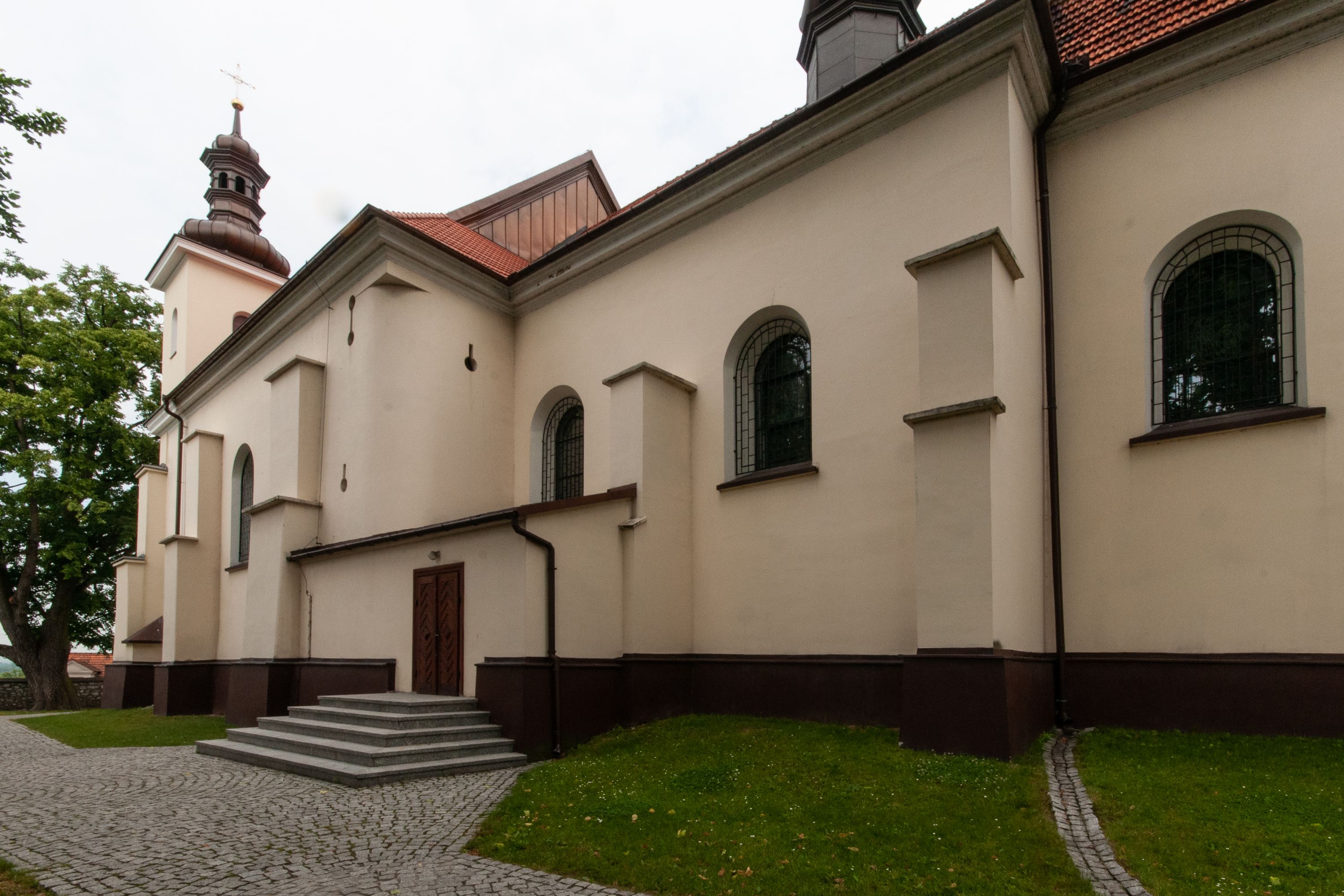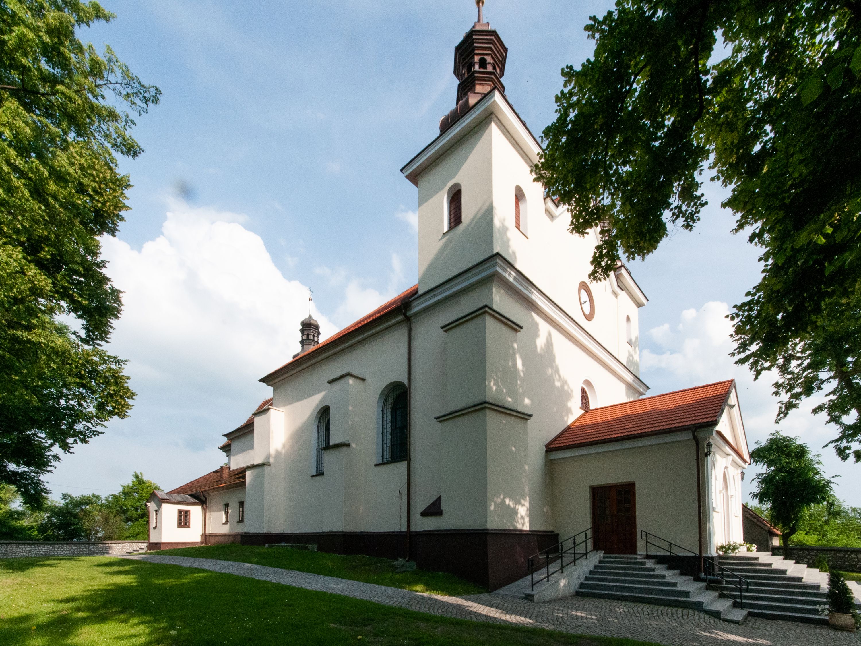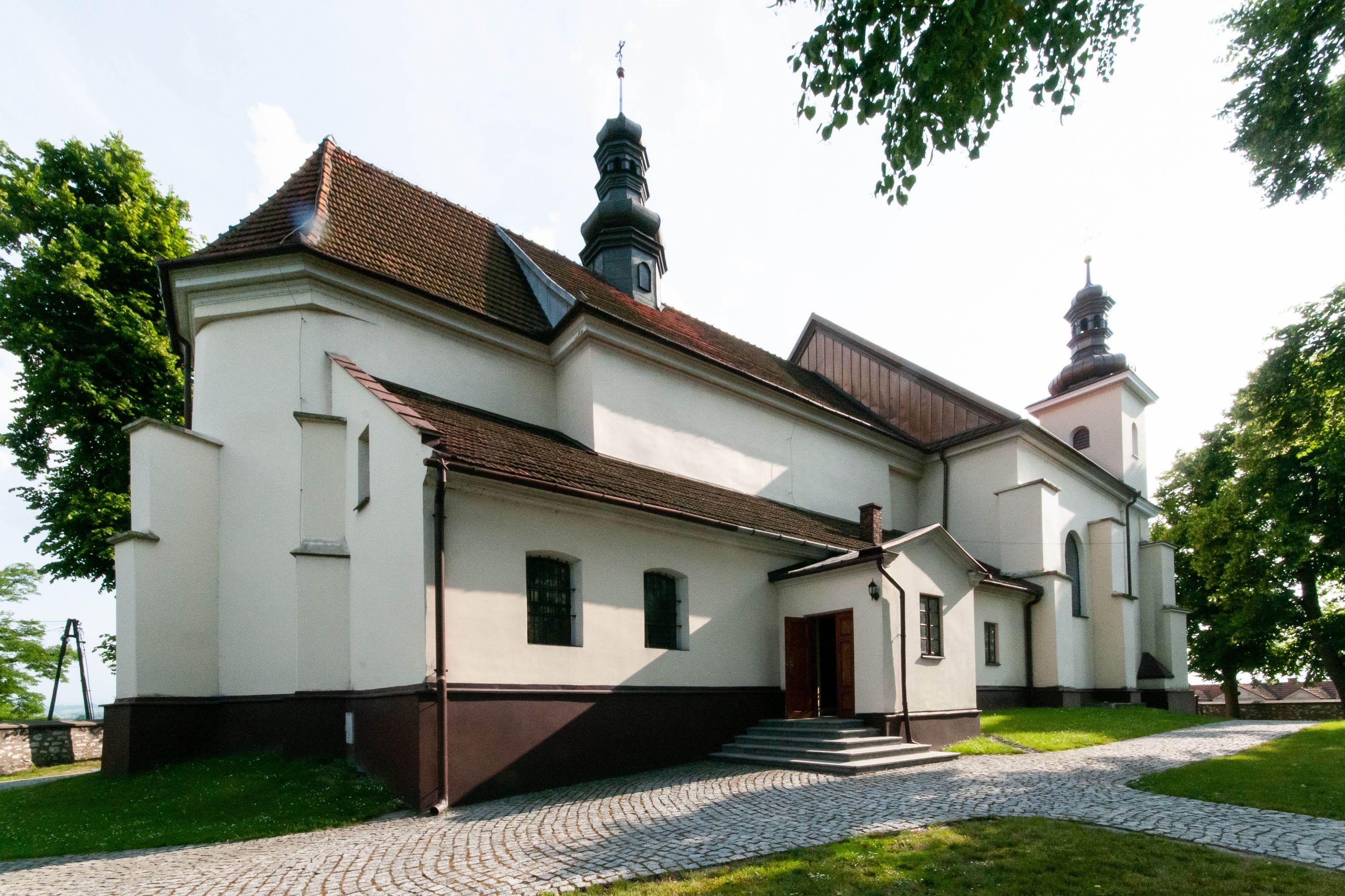 Parafia była wzmiankowana po raz pierwszy w pierwszej połowie XIV wieku, potem w zapiskach Jana Długosza z 1440 roku. Obecne prezbiterium sprzed 1440 roku jest jedyną częścią, która ocalała po pożarze kościoła w czasie potopu szwedzkiego (1655). W 1680 roku świątynia została odbudowana i powiększona, a jej poświęcenia dokonał sufragan krakowski, biskup Mikołaj Oborski. Następna rozbudowa kościoła w kierunku zachodnim nastąpiła w latach 1788-1791. Portal zachodni przesunięto w czasie remontu, tak by nadal mógł być używany jako wejściowy. W 1900 roku położono nową posadzkę, a w 1901 roku dobudowano przedsionek oraz przedłużono zakrystię, by zmieścić tam również skarbiec (obecnie salka i kotłownia). W 1930 roku kościół został odmalowany, oczyszczono ołtarze, obrazy, odnowiono i pomalowano chór, organy, drzwi, ławki, okna oraz stacje drogi krzyżowej, a także wymieniono schody na chór. W 1933 roku dobudowano wieże i odnowiono fasadę, poszerzając schody. Pod koniec 1953 roku wybudowano i poświęcono nowe organy. W 1962 roku zmieniono polichromię kościoła, a w 1966 zamontowano piec do ogrzewania. W 1983 roku nastąpił remont kościoła, w latach 2002-2003 pomalowano fasadę i elewacje, zamontowano oświetlenie zewnętrzne, zaś w latach 2010-2011 wyremontowano dachy i odnowiono witraże, dwa lata później odremontowano mury, umocniono schody, wykonano kotłownię, wymieniono boczne drzwi. W 2016 roku odnowiono posadzkę, rok później wstawiono nowe organy i ołtarz soborowy oraz ambonę.