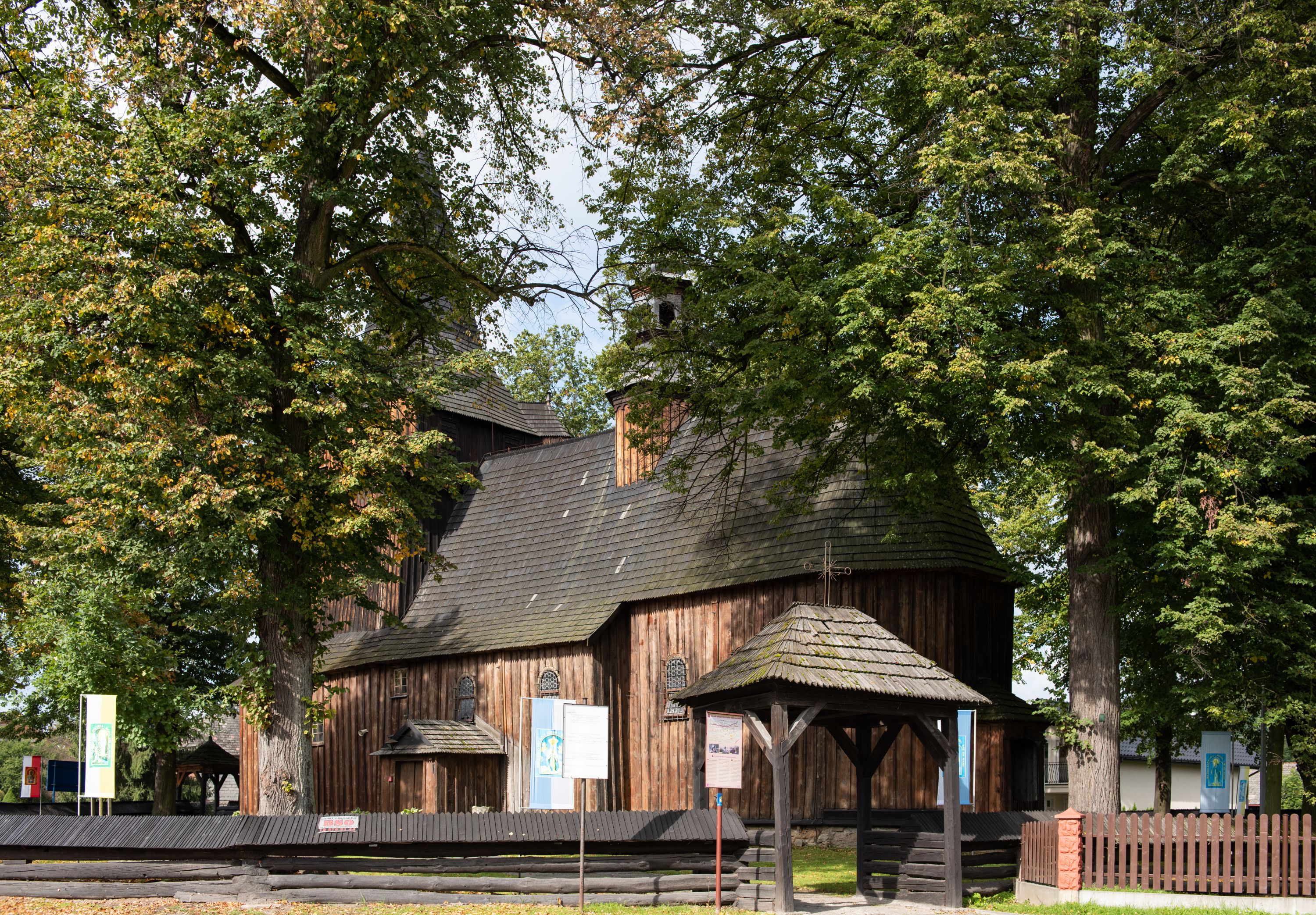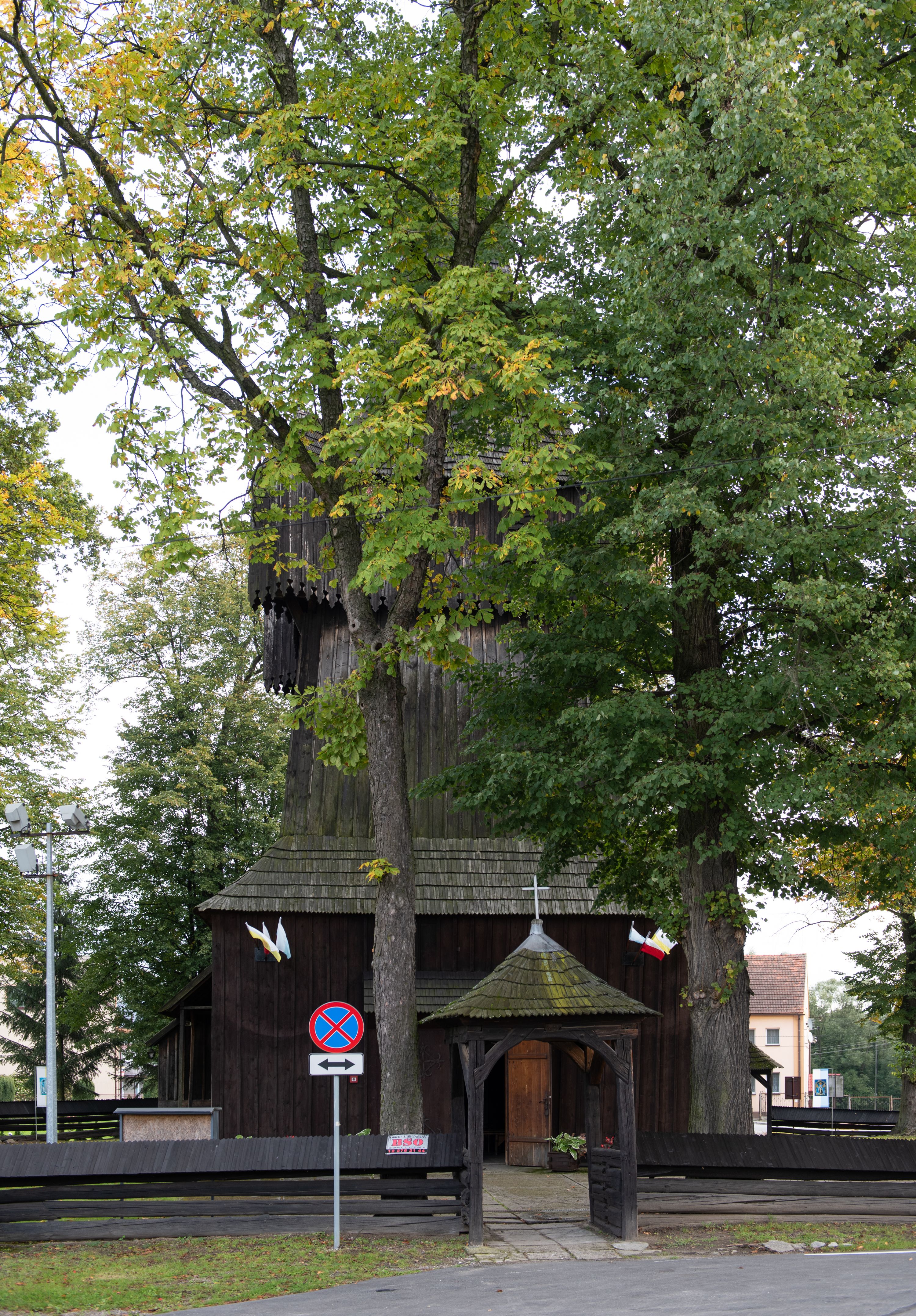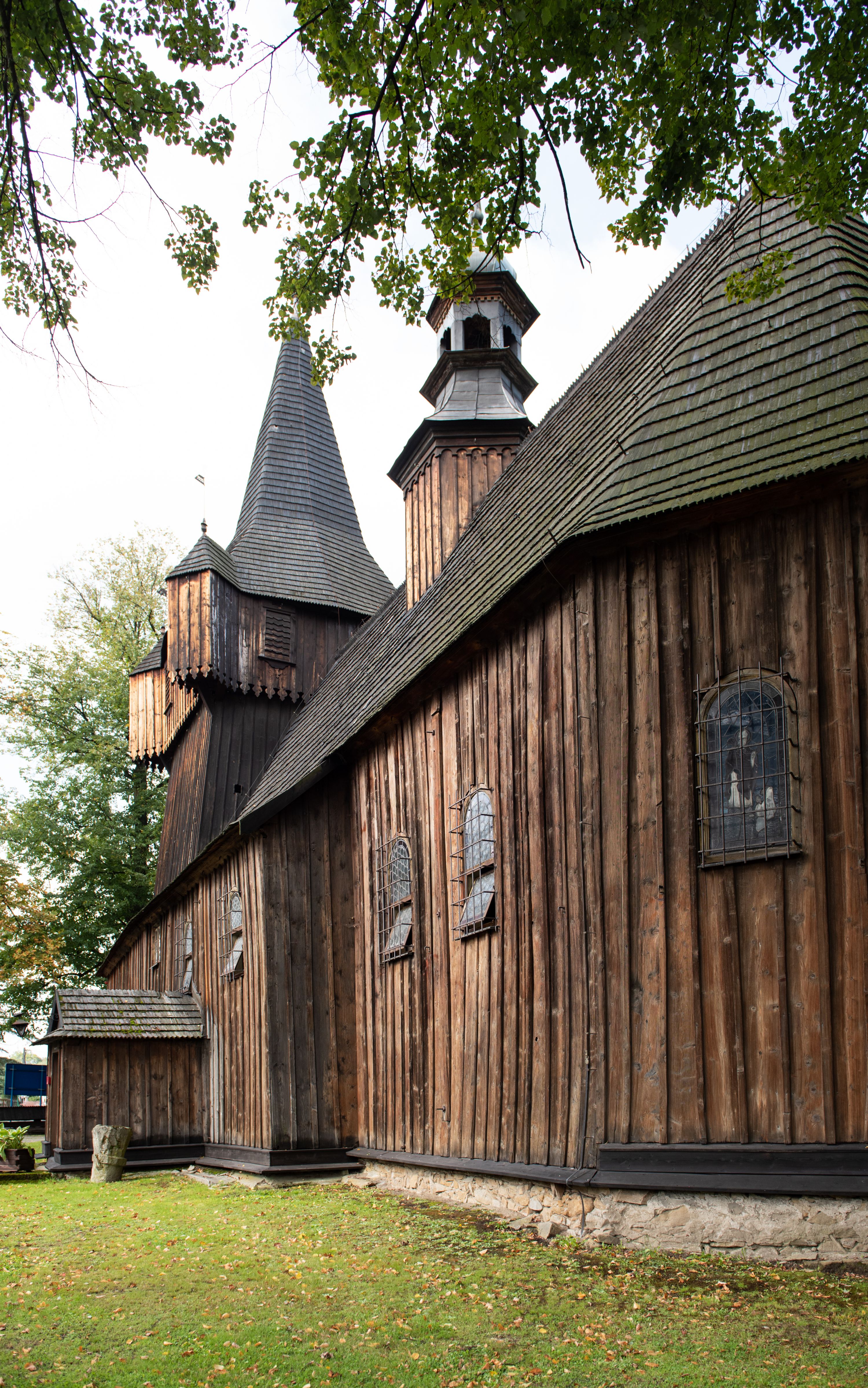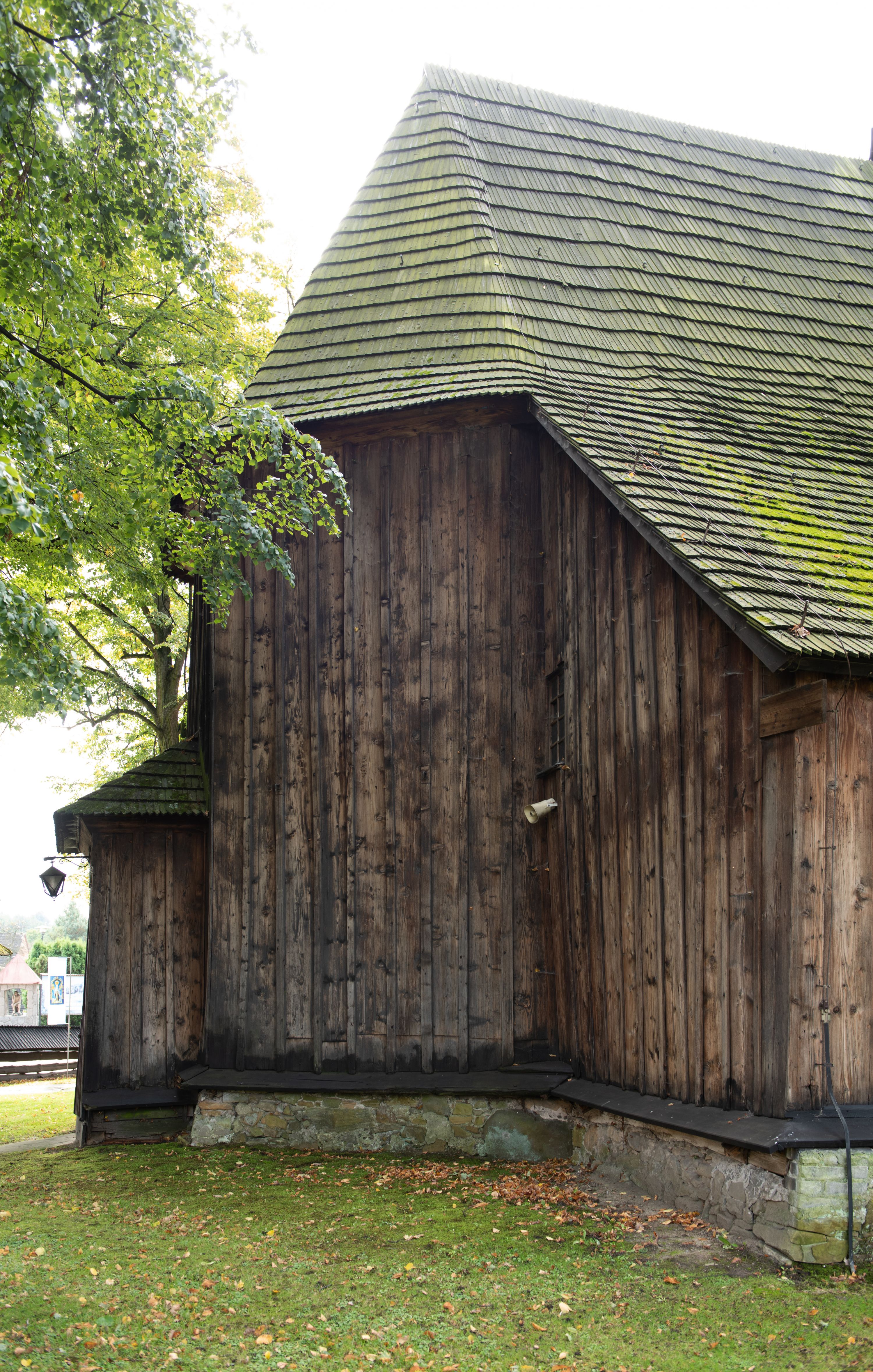 Kościół w Woli Radziszowskiej powstał najprawdopodobniej w 1440 roku. Wieżę dobudowano prawdopodobnie na przełomie XVI i XVII stulecia. W późniejszym okresie architektura świątyni nie uległa znaczącym zmianom. Budowla stanowi przykład niewielkich rozmiarów, jednonawowej i jednowieżowej, późnogotyckiej świątyni drewnianej o konstrukcji zrębowej typowej dla terenu południowej Małopolski. Na uwagę zasługuje wyposażenie świątyni, reprezentujące różne epoki i style. Do jego najstarszych elementów należy umieszczony w barokowym ołtarzu głównym gotycki obraz przedstawiający Matkę Boską z Dzieciątkiem w typie Hodegetrii datowany na około 1460 rok oraz utrzymany w tradycji późnogotyckiej krucyfiks umieszczony na belce tęczowej. Manierystyczne ołtarze boczne noszące wezwania św. Anny i Ukrzyżowania zostały wykonane najprawdopodobniej w 1636 roku. Na ścianach i stropach świątyni widnieje polichromia o motywach figuralnych wykonana w 1893 roku w miejsce starszej dekoracji malarskiej o tych samych tematach.