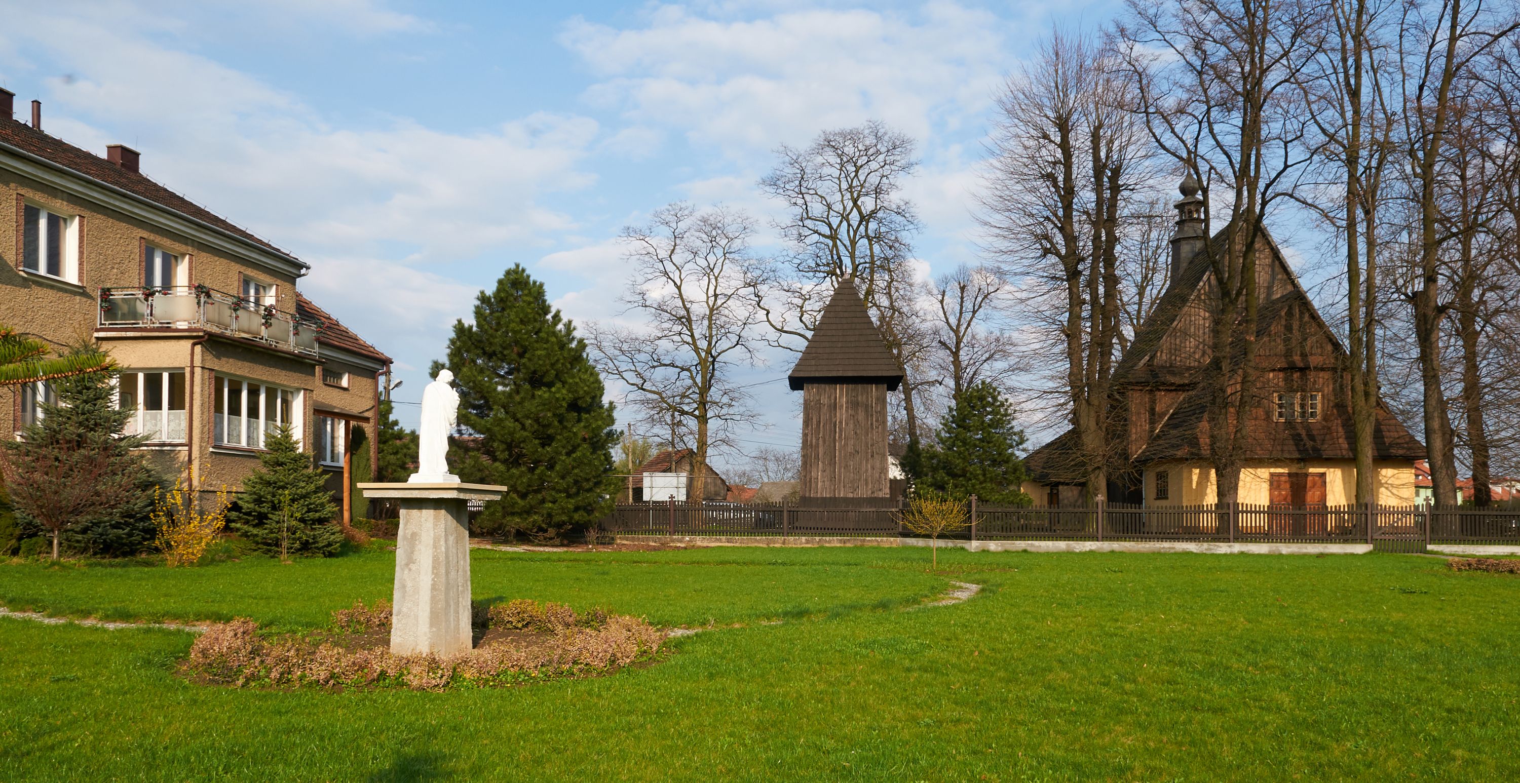 Do budowy omawianego kościoła w 1742 roku wykorzystano budulec z dawnego kościoła z Grabia z XV wieku, dlatego w jego strukturze zachowały się elementy gotyckie, jak portal wejściowy do zakrystii z prezbiterium o pierwotnym widocznym w zarysie ostrołukowym wykroju i o wtórnie nadanym kształcie prostokąta.