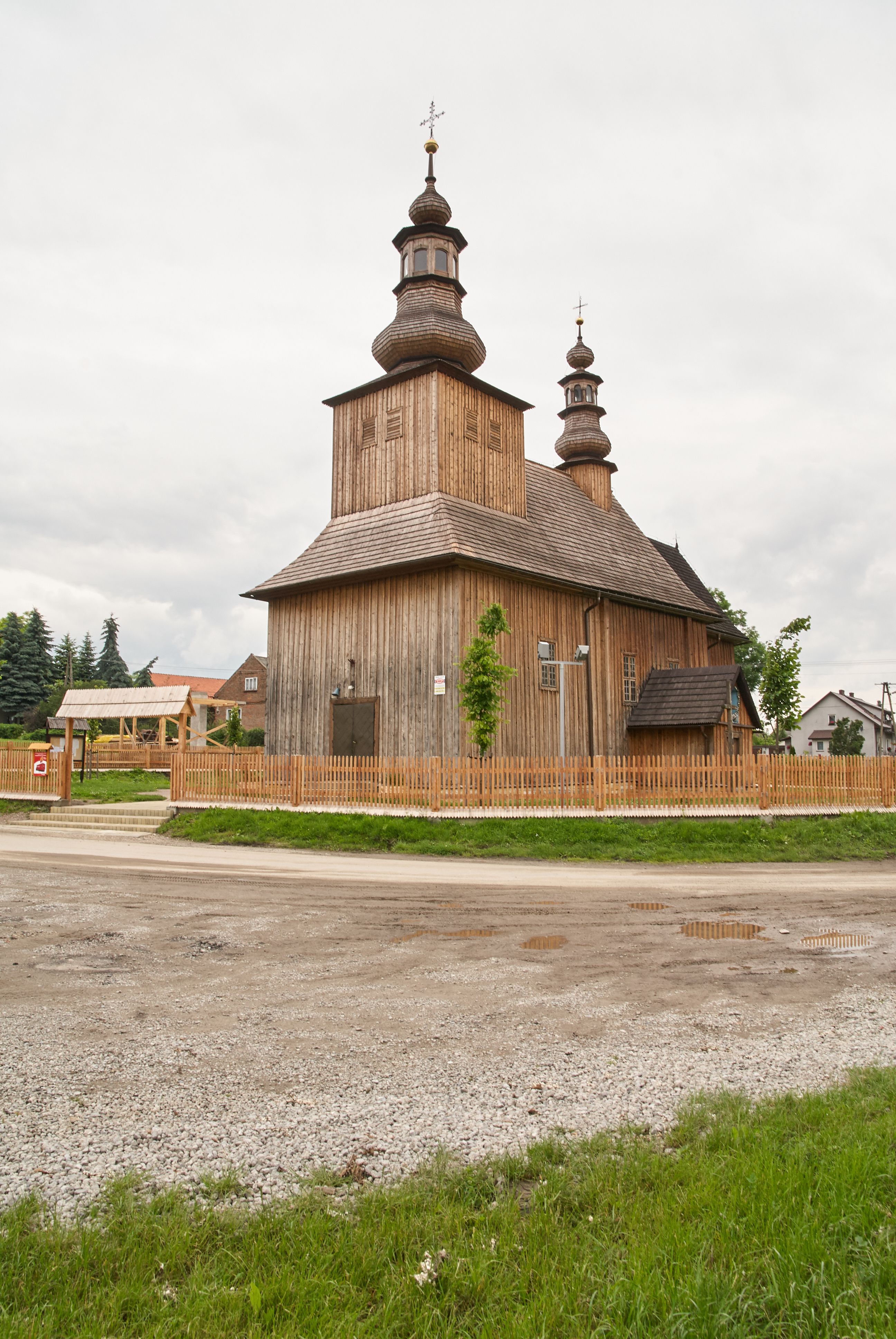 Kościół zlokalizowany na zachodnim krańcu wsi. Plac kościelny otoczony drewnianym płotem. W północno-wschodnim narożu drewniana dzwonnica.