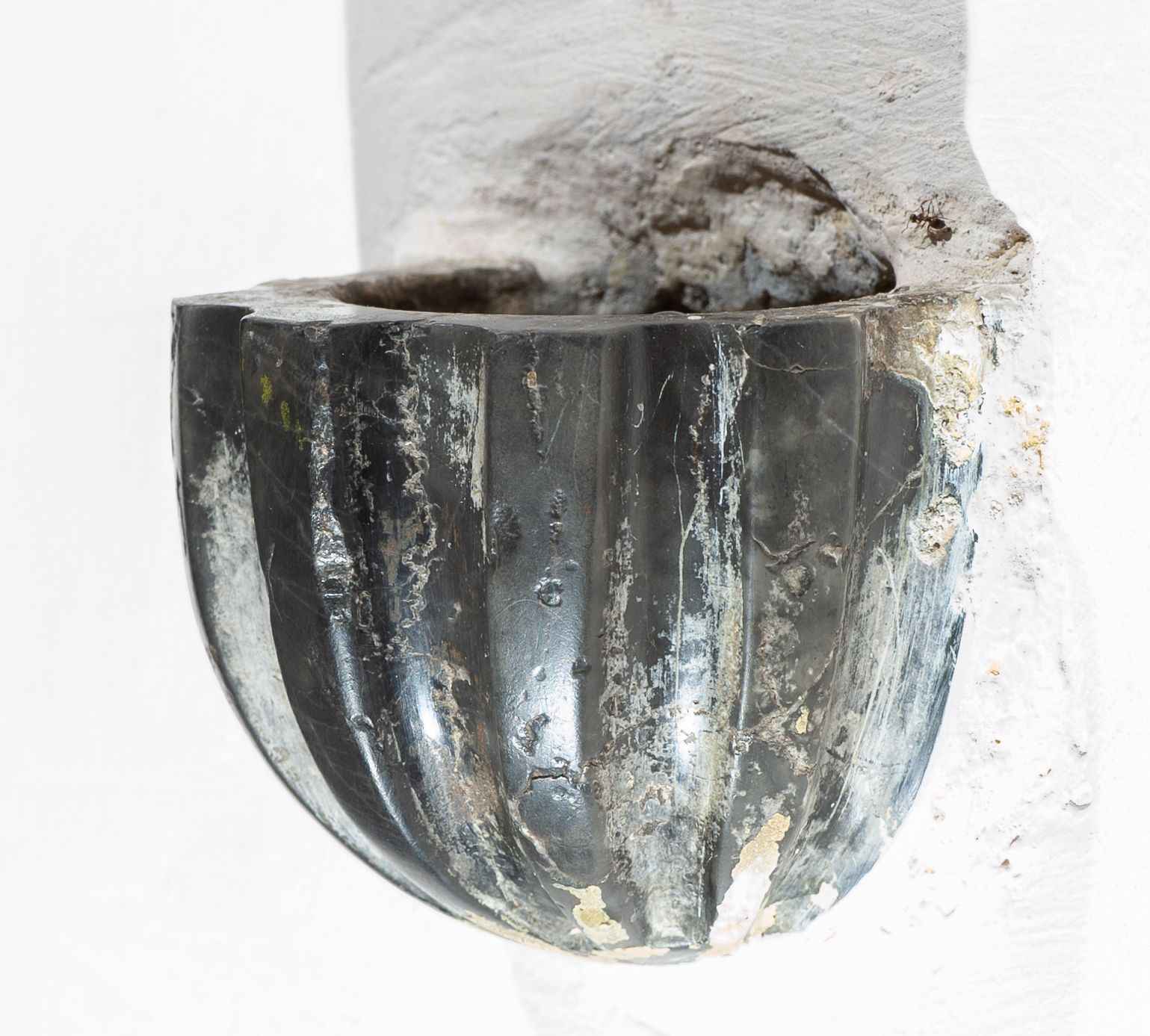 Kropielnica z czarnego marmuru dębnickiego, na rzucie owalu, w kształcie głębokiej misy o puklowanych ściankach. Wykonana została w Dębniku koło Krzeszowic, zapewne w XIX wieku.