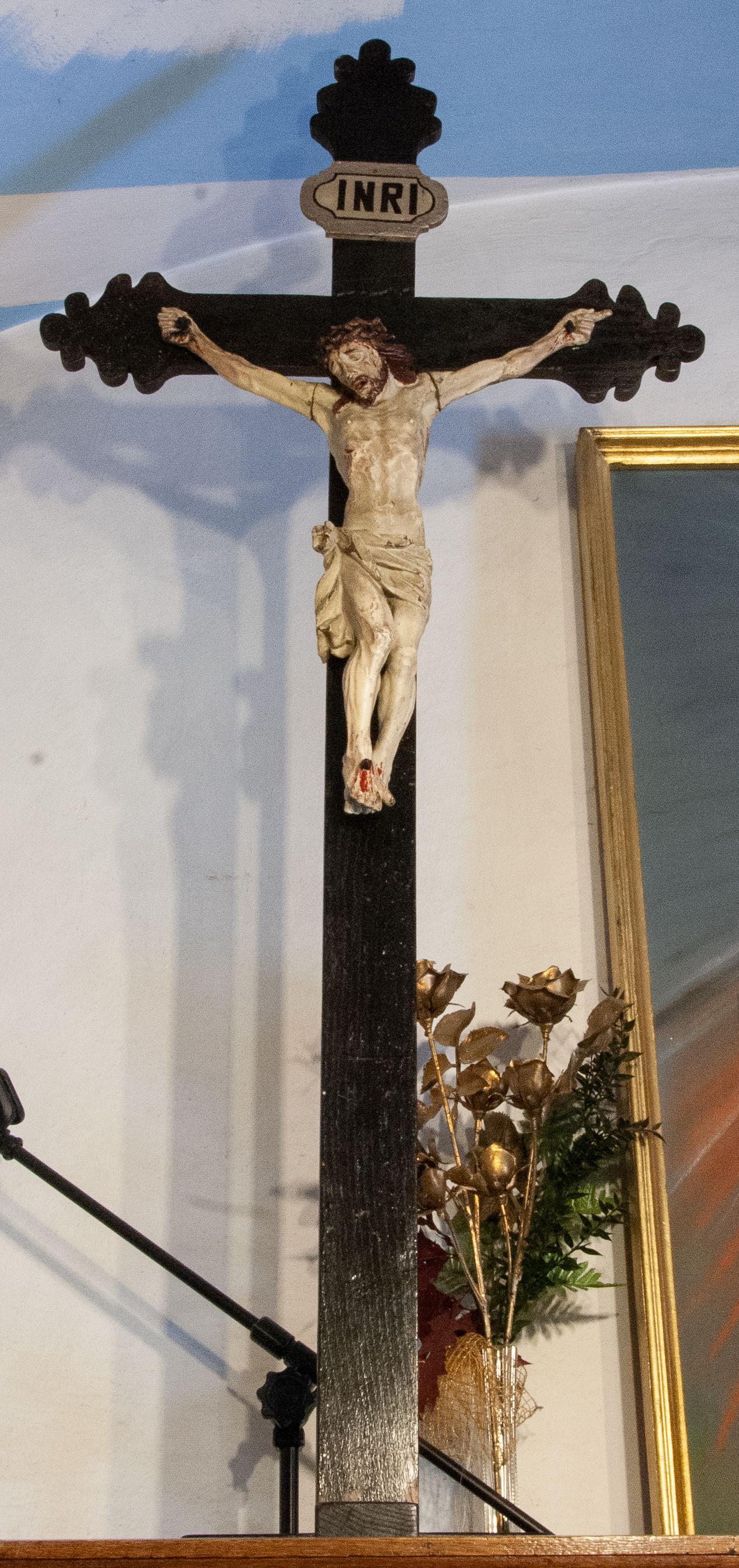 Zgodnie z zasadami liturgiki celebrans wychodzący z zakrystii do ołtarza musi oddać pokłon krzyżowi lub wizerunkowi Ukrzyżowanego. Krucyfiks może być, jak w tym przypadku, ustawiony na meblu lub może wisieć na ścianie.