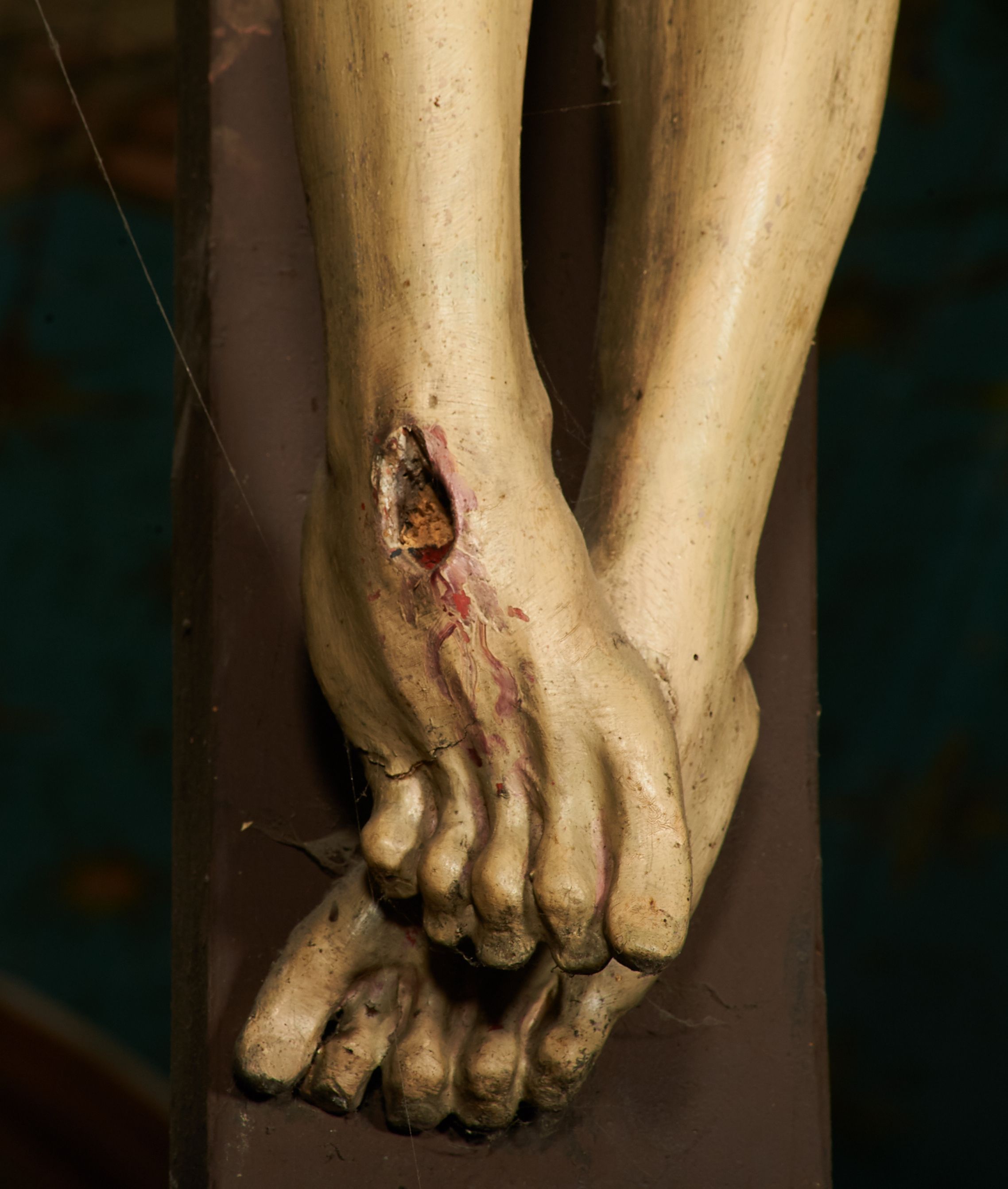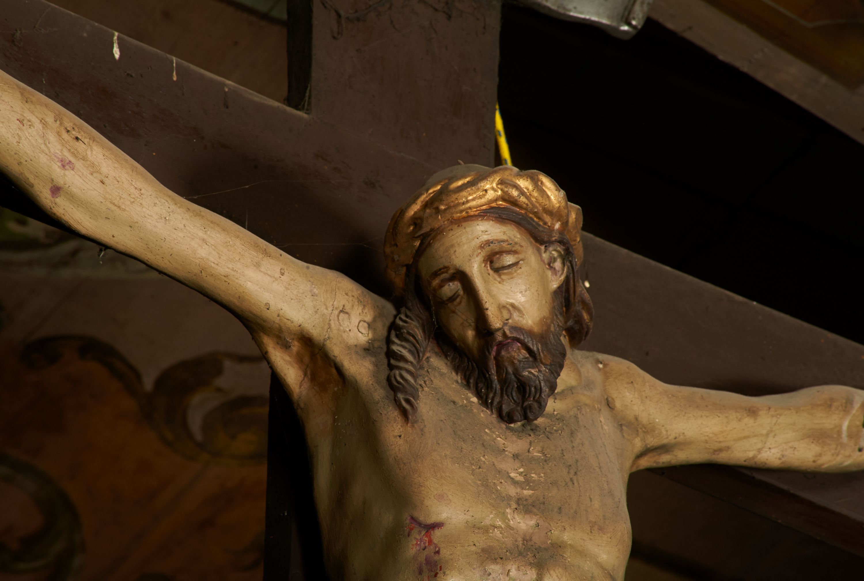 Krucyfiks przedstawia Zbawiciela po tym, jak skonał na krzyżu.