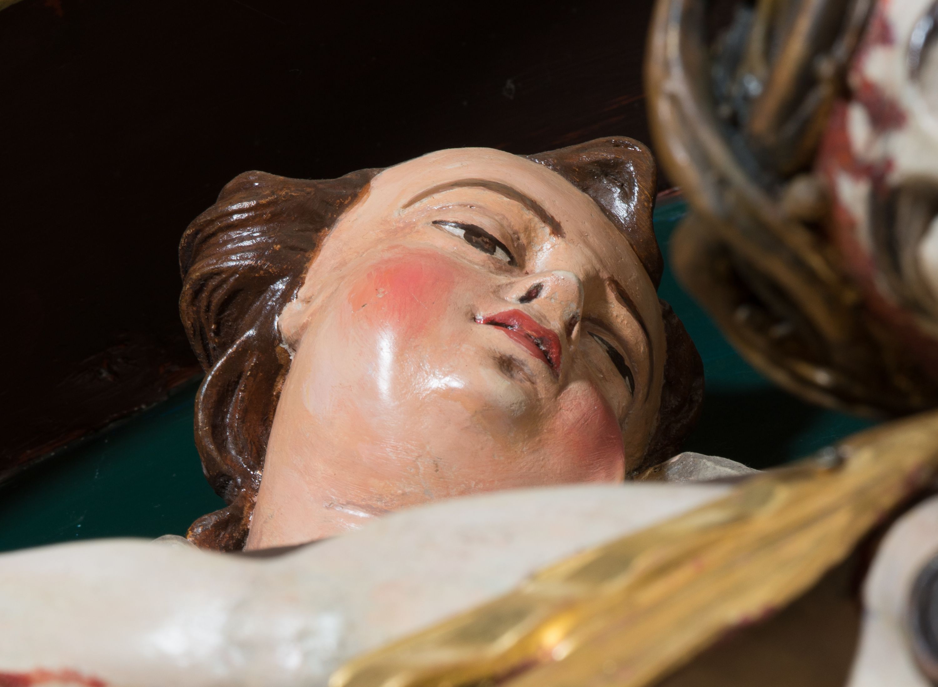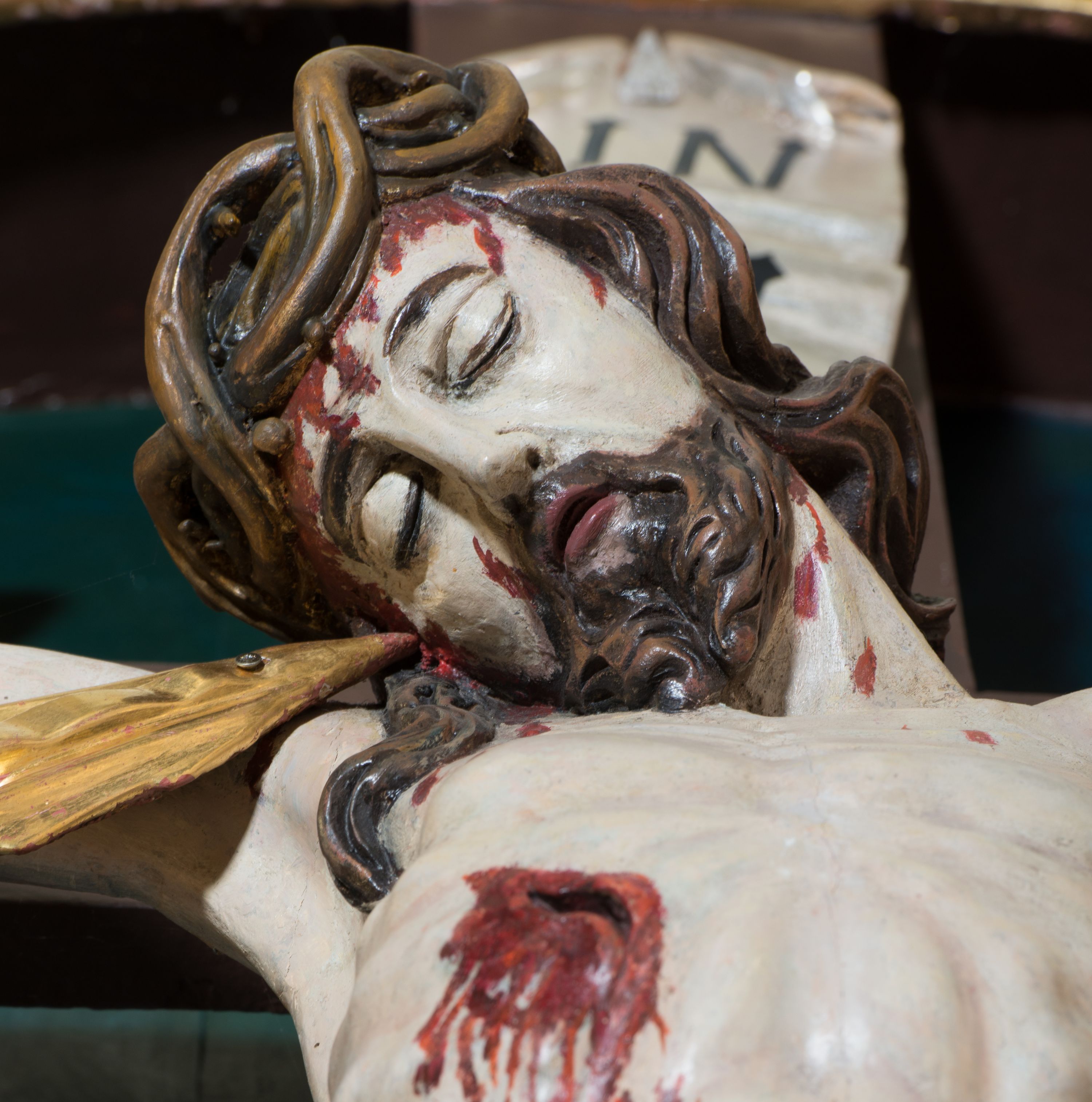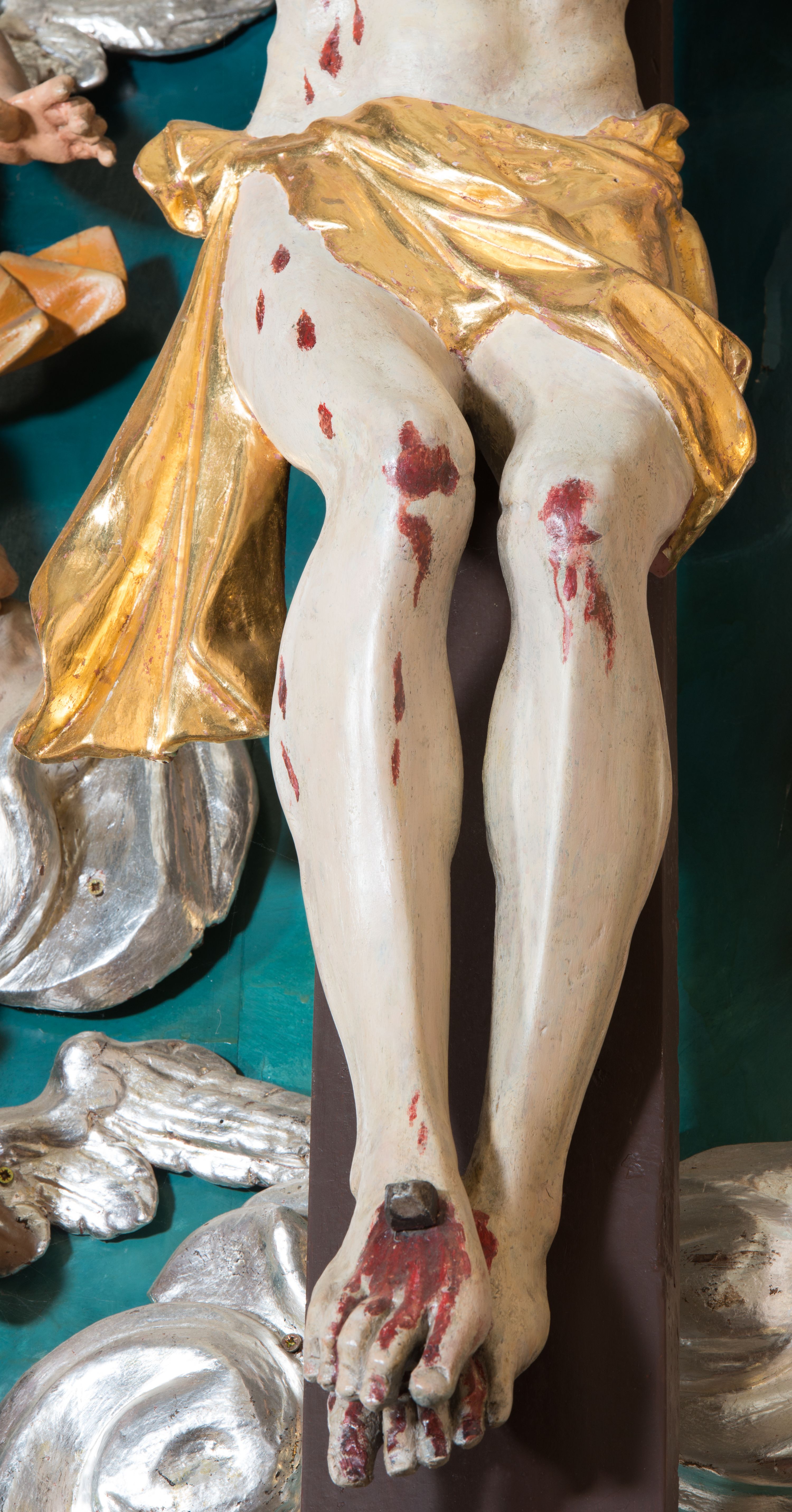 Brak dwóch elementów promienistego krzyżowego nimbu wokół głowy Chrystusa.