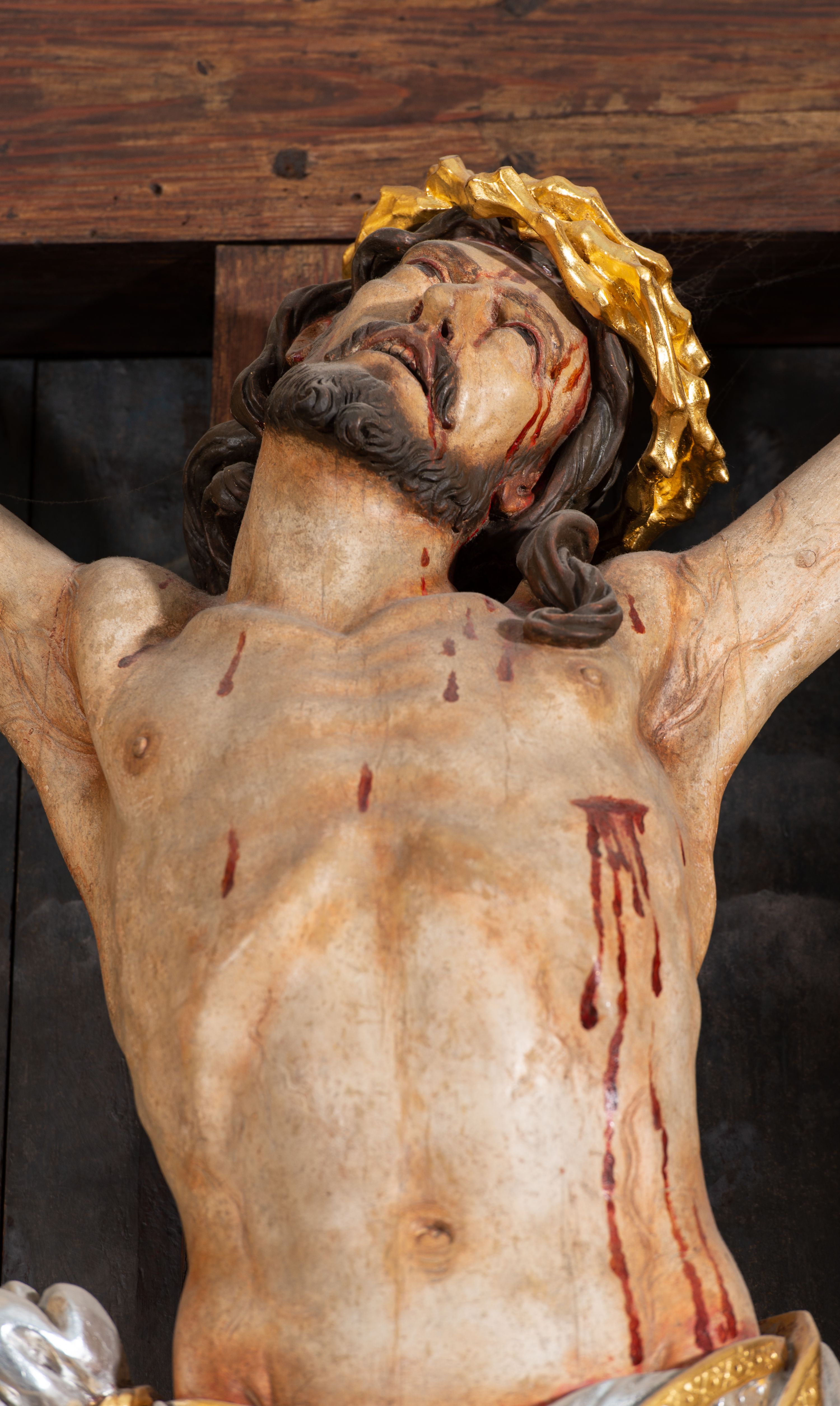 W 1987 roku wykonano konserwację rzeźby i być może obrazu w tle, a w 2004 roku została wykonana pełna konserwacja ołtarza. Między 1971 a 2018 rokiem wymieniono titulus na górnym ramieniu krzyża. Pierwotnie miał formę rozwiniętego arkusza w kształcie leżącego prostokąta, na którym wszystkie litery umieszczono w jednej linii. W tym czasie również mocniej podkreślono rany. Po 2008 roku dzieło przeszło kolejną renowację.