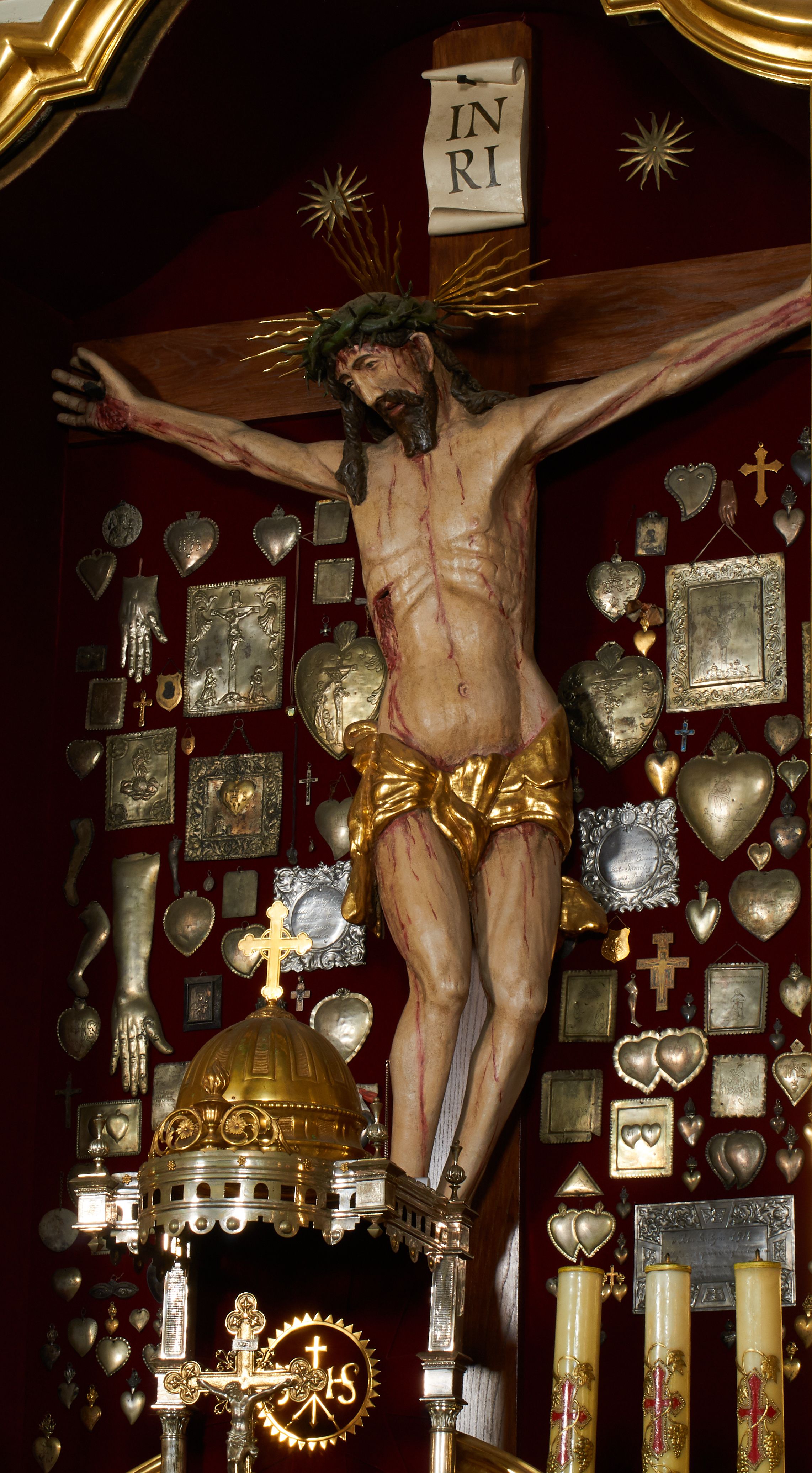 W XVIII wieku niezwykle częstą praktyką, zwłaszcza w czasie modernizacji świątyń, było przenoszenie dawnych krucyfiksów z łuków tęczowych kościoła w inne miejsce. Figury, które słynęły łaskami umieszczano w ołtarzach, aby otrzymały godną oprawę, jak również dla wzmożenia ich kultu. Dzięki przenosinom i nowemu miejscu ekspozycji figura zyskiwała zupełnie nowe znaczenie i funkcję, z dawnej symbolicznej, jaką pełniła na łuku tęczowym, na kultową, jako cudowny wizerunek w ołtarzu.