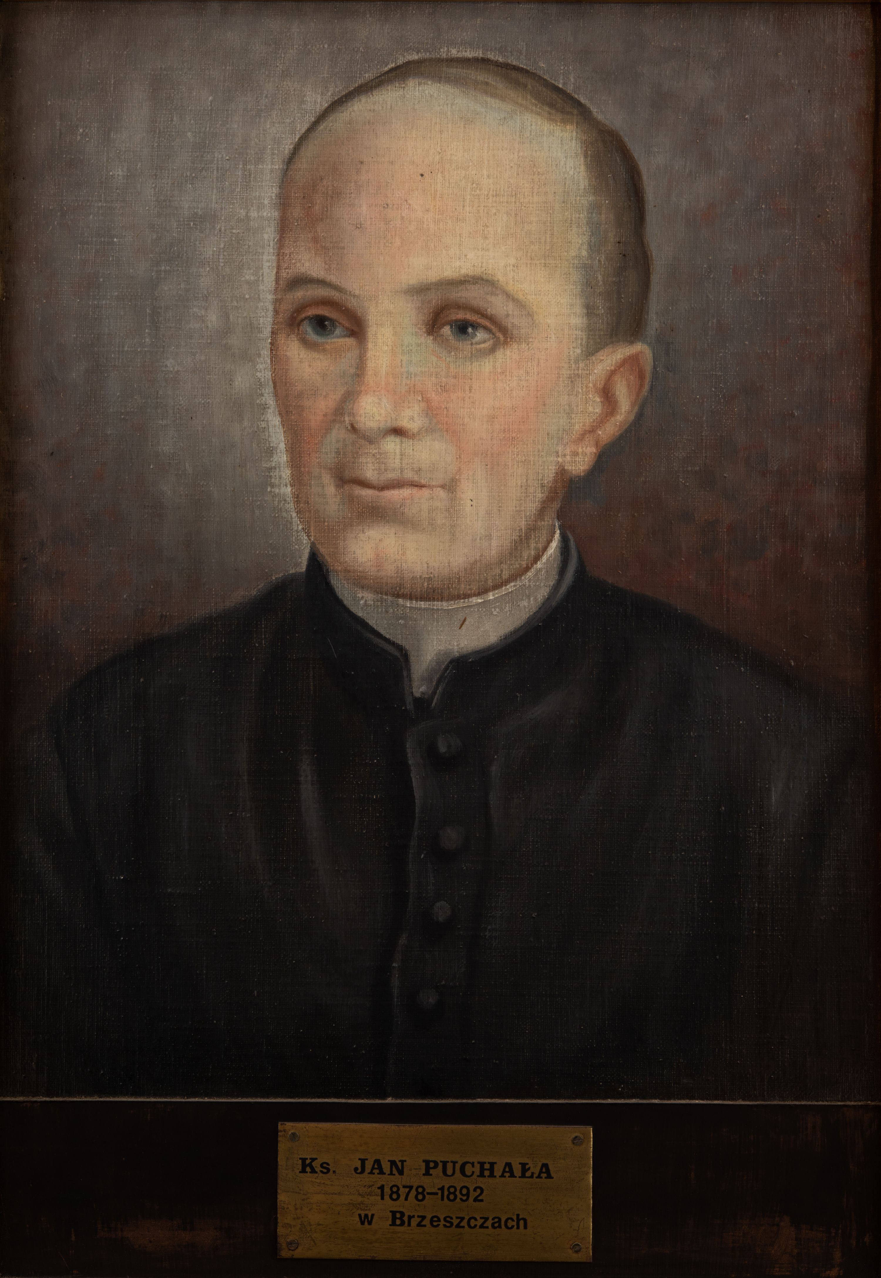 Portret ks. Jana Puchały, proboszcza w Brzeszczach w latach 1878-1892 wykonano najprawdopodobniej wraz z częścią portretów zawieszonymi w zakrystii w latach sześćdziesiątych XX wieku.
