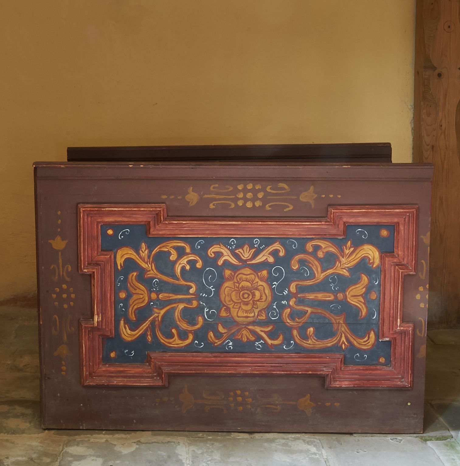 Dobry, przetarcia polichromii, zabrudzenia.