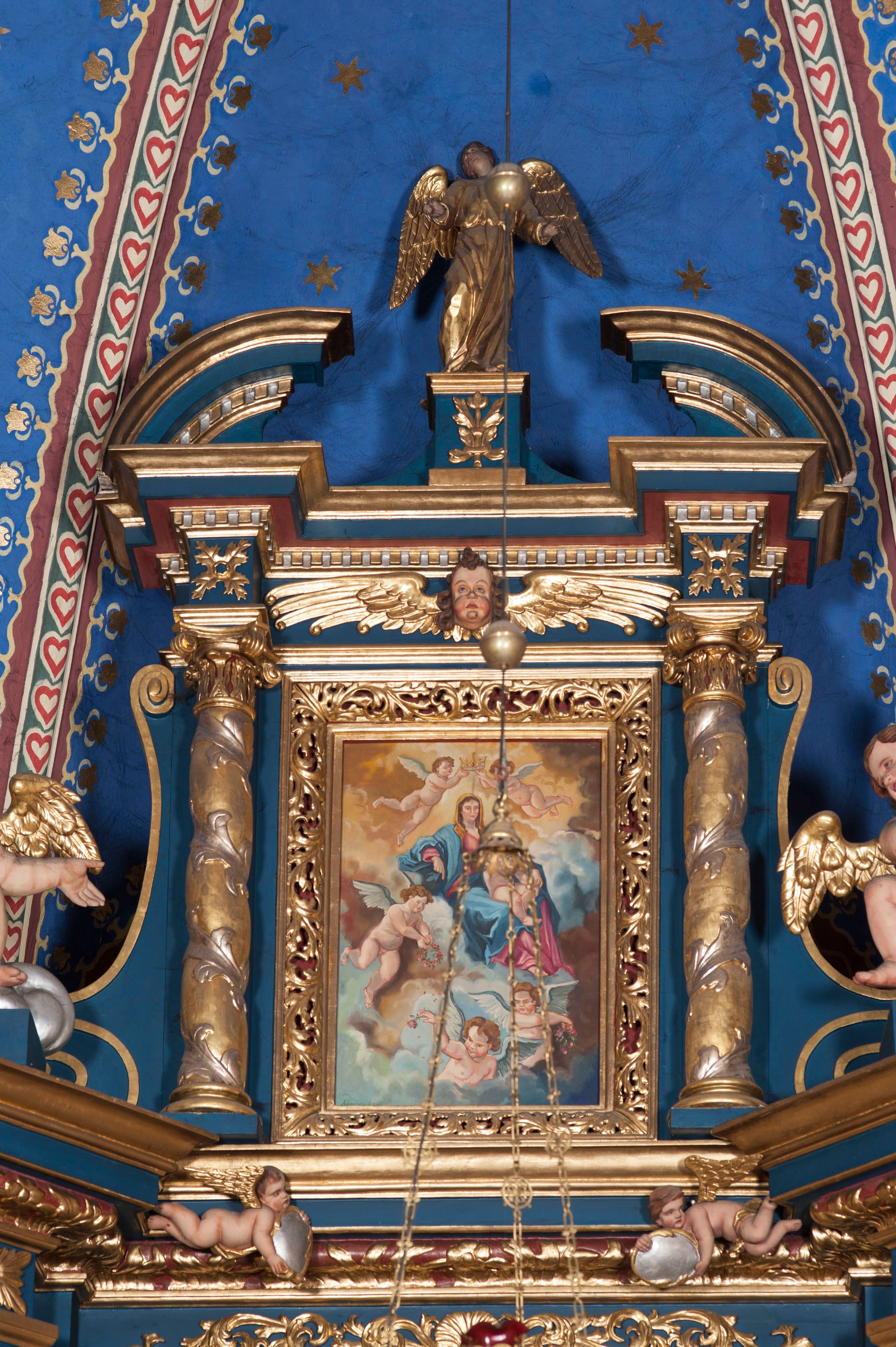 W 1998 roku ołtarz główny był w konserwacji wykonywanej przez państwa Kusiów. Obraz Matki Boskiej Anielskiej namalowała Aleksandra Adamska-Kuś i podarowała go do kościoła. Dnia 24 września tego roku umieszczono go w zwieńczeniu ołtarza głównego.