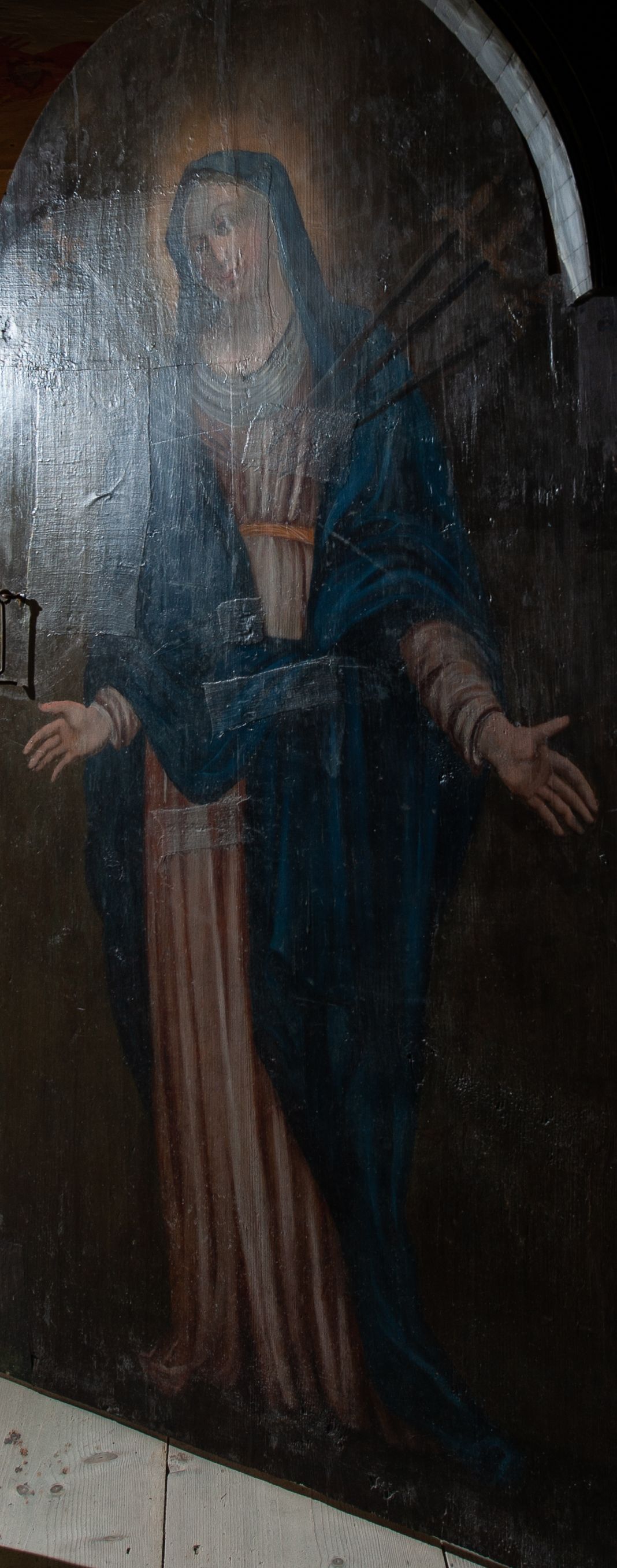 Nie jest znany autor dzieła ani dokładny czas jego powstania. Obraz mógł zostać wykonany w podobnym czasie co nastawa główna w kościele w Harklowej czyli w XVIII wieku. Dzieło przedstawia Matkę Boską Bolesną i jest ilustracją fragmentu Ewangelii św. Łukasza opisującego proroctwo Symeona dotyczące cierpień, jakie spotkają Marię. Siedem mieczy symbolizuje siedem boleści Matki Boskiej: Proroctwo Symeona, Ucieczkę do Egiptu, Zgubienie Jezusa, Spotkanie na drodze krzyżowej, Ukrzyżowanie i śmierć Jezusa, Zdjęcie z krzyża i Złożenie do grobu.