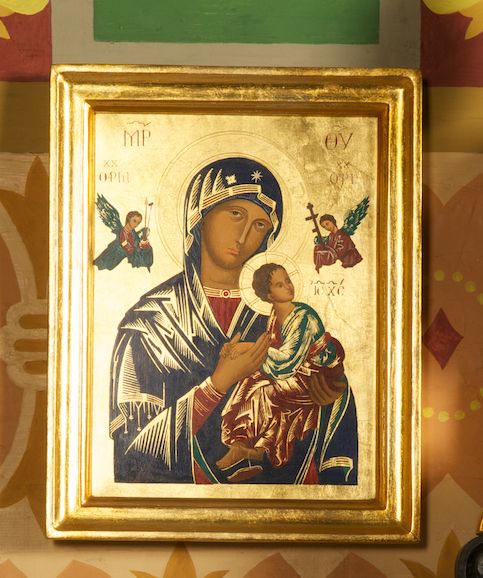 Obraz przedstawia Matkę Boską Nieustającej Pomocy, patronkę smutnych i potrzebujących. Jest kopią wizerunku, który według legendy namalował prawosławny malarz z okresu wczesnego średniowiecza – S. Lazzaro w XI lub XII wieku. Oryginał przedstawienia znajduje się w kościele redemptorystów pw. św. Alfonsa w Rzymie (nieopodal bazyliki Santa Maria Maggiore). Pierwsze kopie wizerunku powstawały w pracowni szwajcarskiego artysty Jakoba Wügera (1829-1892), późniejsze sporządzano na deskach lub drukowano. W Archiwum Generalnym redemptorystów zachował się dokument mówiący o „pierwszych czterystu wiernych kopiach ikony w jej oryginalnych rozmiarach, przeznaczonych do kultu publicznego”, opatrzonych „certyfikatem” wiarygodności, z dokładną datacją, numerem seryjnym oraz podpisem i pieczęcią generała redemptorystów. Z rejestru kopii wynika, że apogeum ich tworzenia przypadło na pierwsze dwie dekady XX wieku.