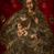 Tronująca Madonna z Dzieciątkiem leżącym na jej kolanach to obecny w sztuce od średniowiecza schemat zwany „Mariae in throno”. Ów typ ikonograficzny staje się wyrazem królewskiej godności Marii oraz zobrazowaniem poglądów teologicznych, mówiących że „w wyniku wcielenia stała się ona Tronem Boga”. Przedstawienia Madonny z Dzieciątkiem często łączą w sobie kontekst macierzyństwa, jaki w pierwszej kolejności nasuwa się w odbiorze tego typu dzieł, z wątkiem pasyjnym, odnoszącym się do męki i śmierci Jezusa. Leżące na kolanach Marii Dzieciątko budzi bowiem pewne skojarzenia ze schematem przedstawień Piety, natomiast trzymana przezeń maleńka, różana gałązka z czerwonymi kwiatkami to oczywisty symbol cierpienia i przelanej krwi.