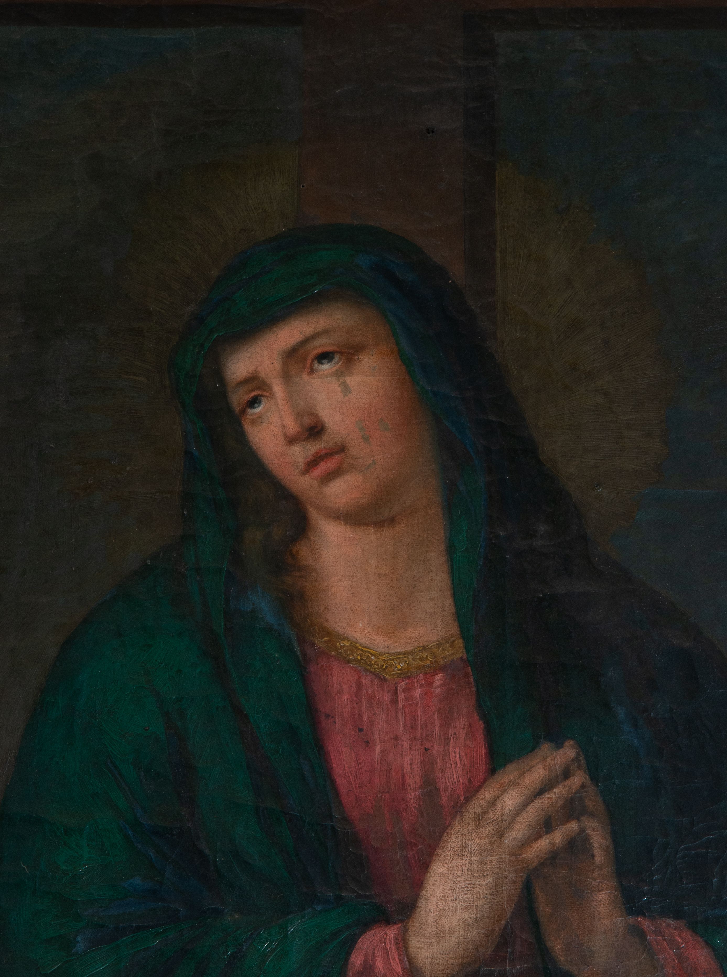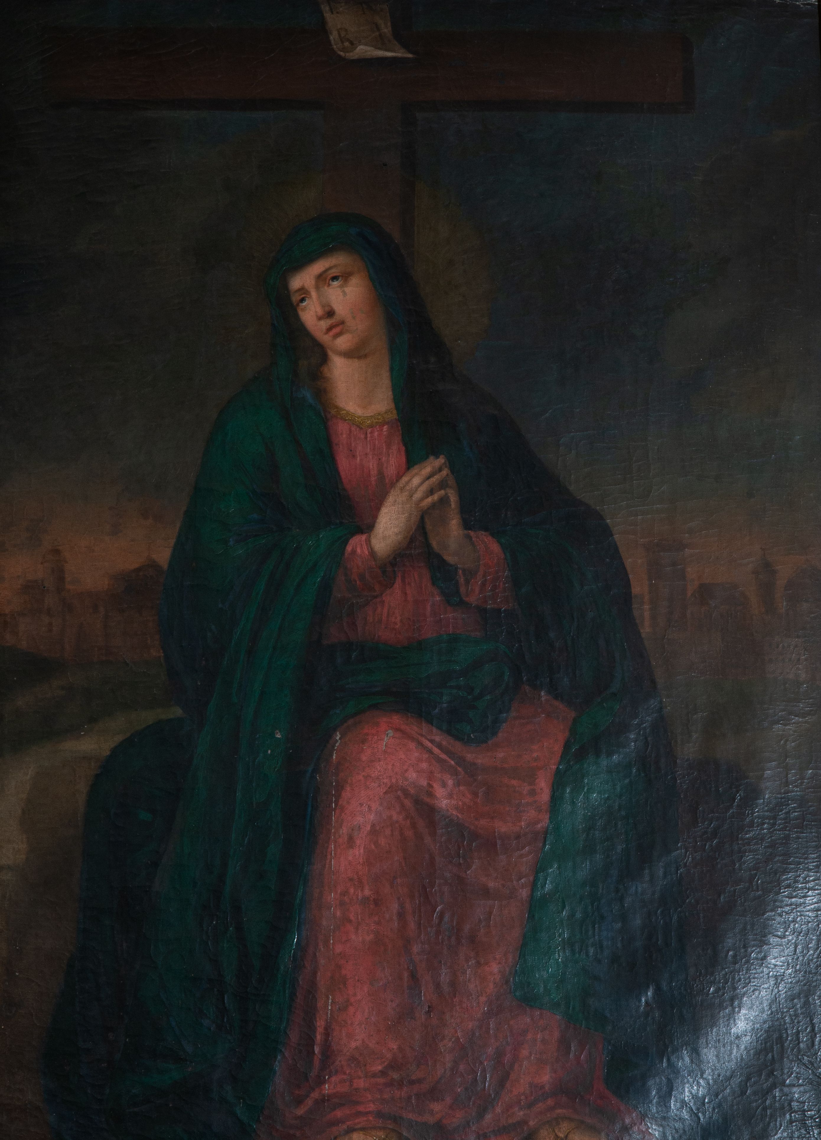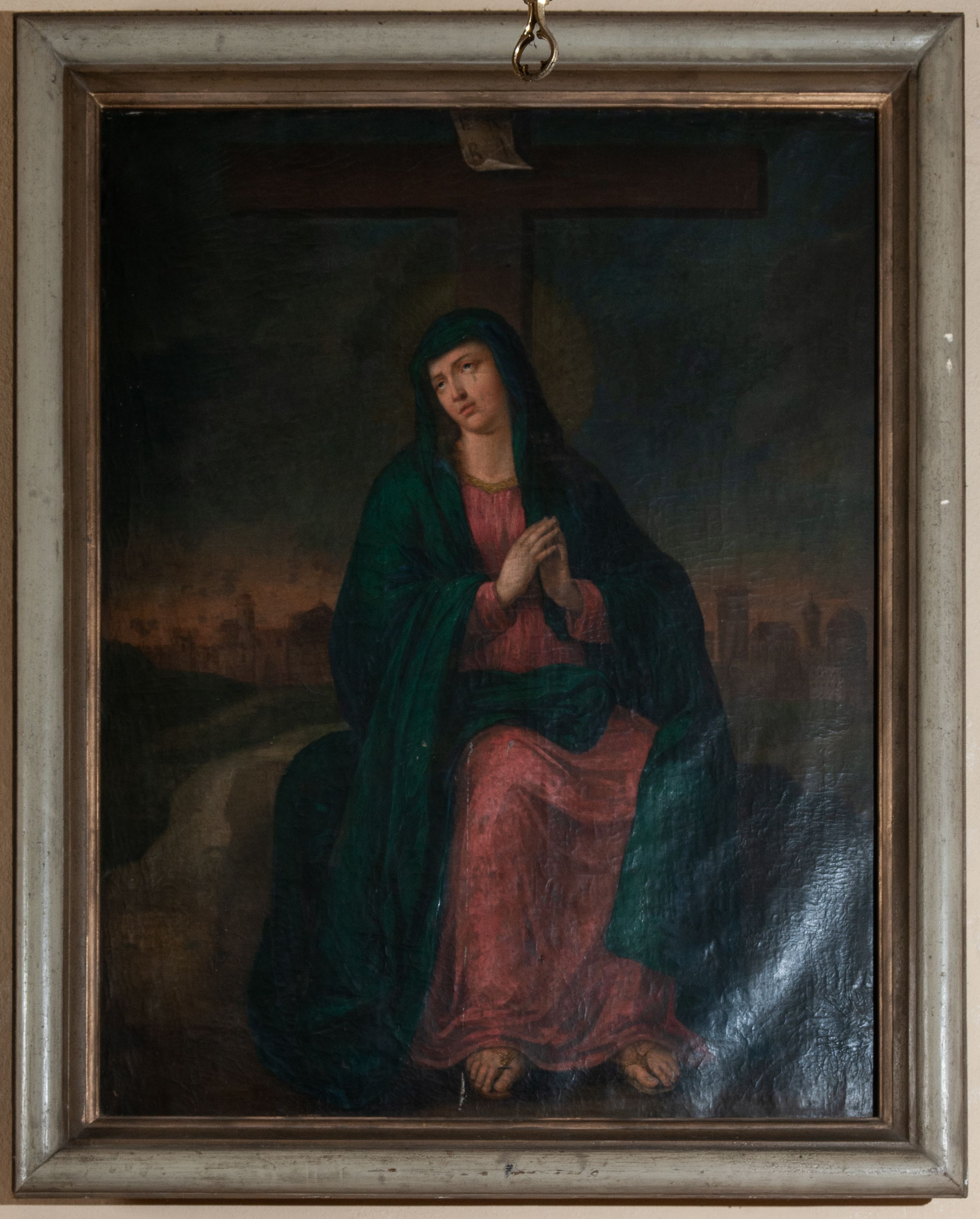 Obraz z przedstawieniem Matki Boskiej płaczącej pod pustym już krzyżem został namalowany w XIX wieku.