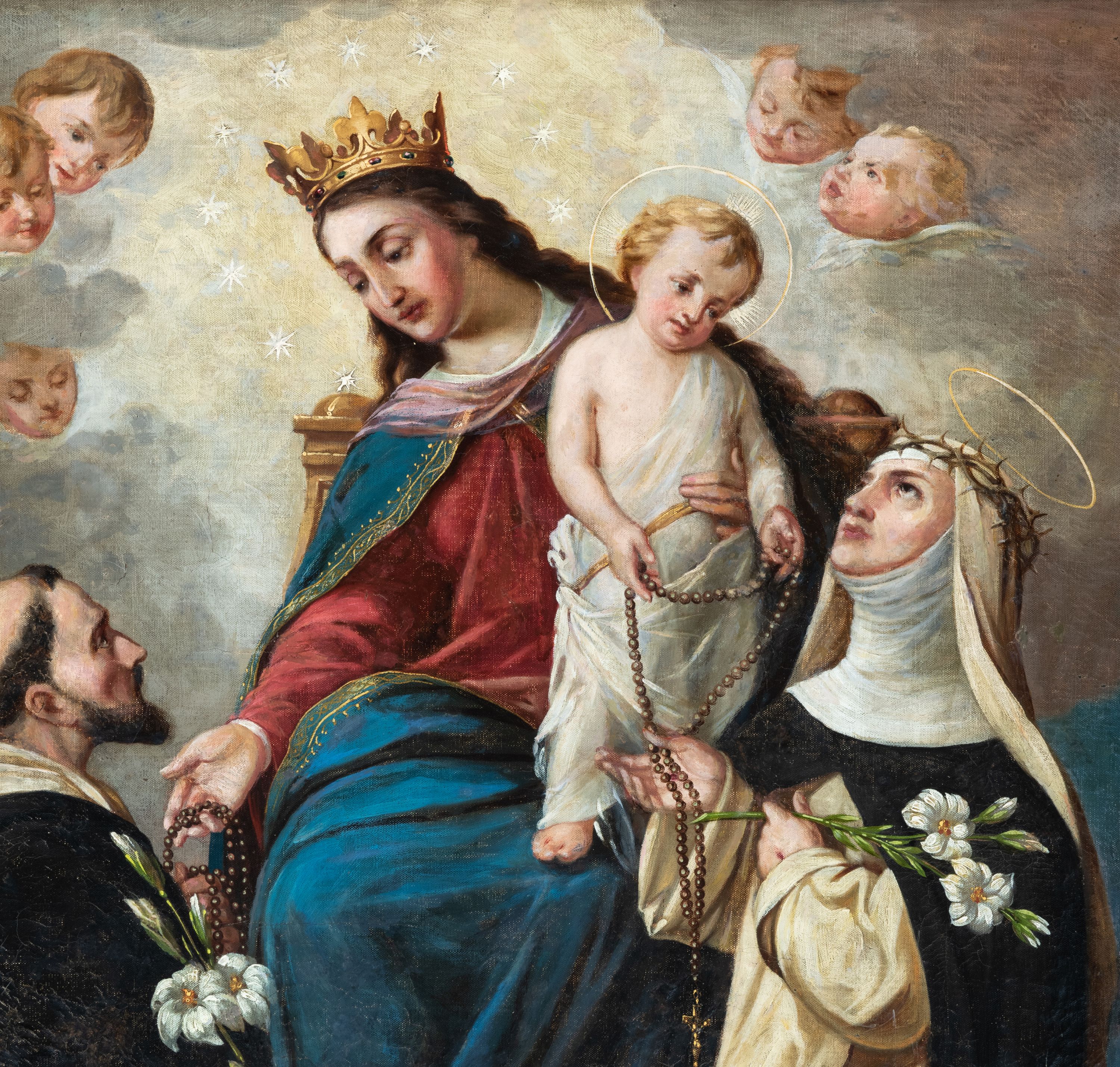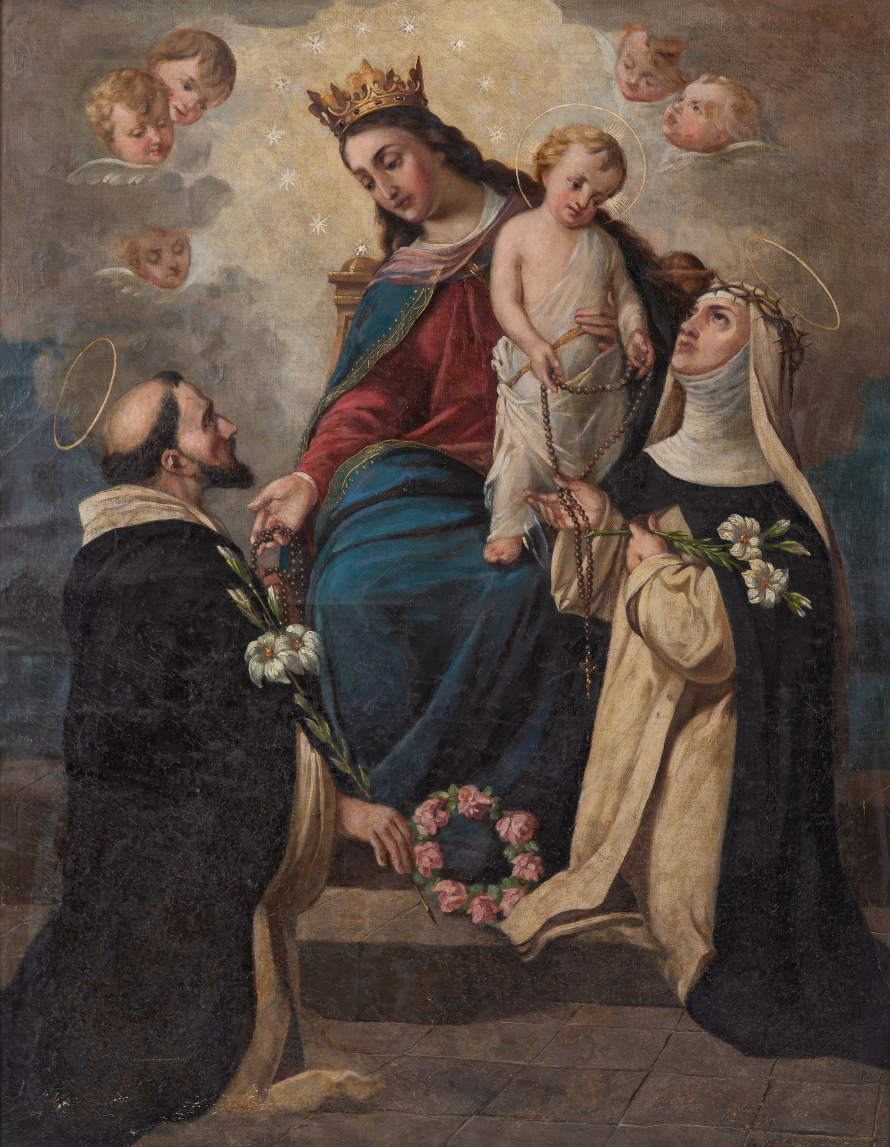 Maria Działo, "Matka Boska Różańcowa ze św. Dominikiem i św. Katarzyną Sieneńską", [w:] "Sakralne Dziedzictwo Małopolski", 2026, źródło: https://sdm.upjp2.edu.pl/dziela/matka-boska-rozancowa-ze-sw-dominikiem-i-sw-katarzyna-sienenska-3