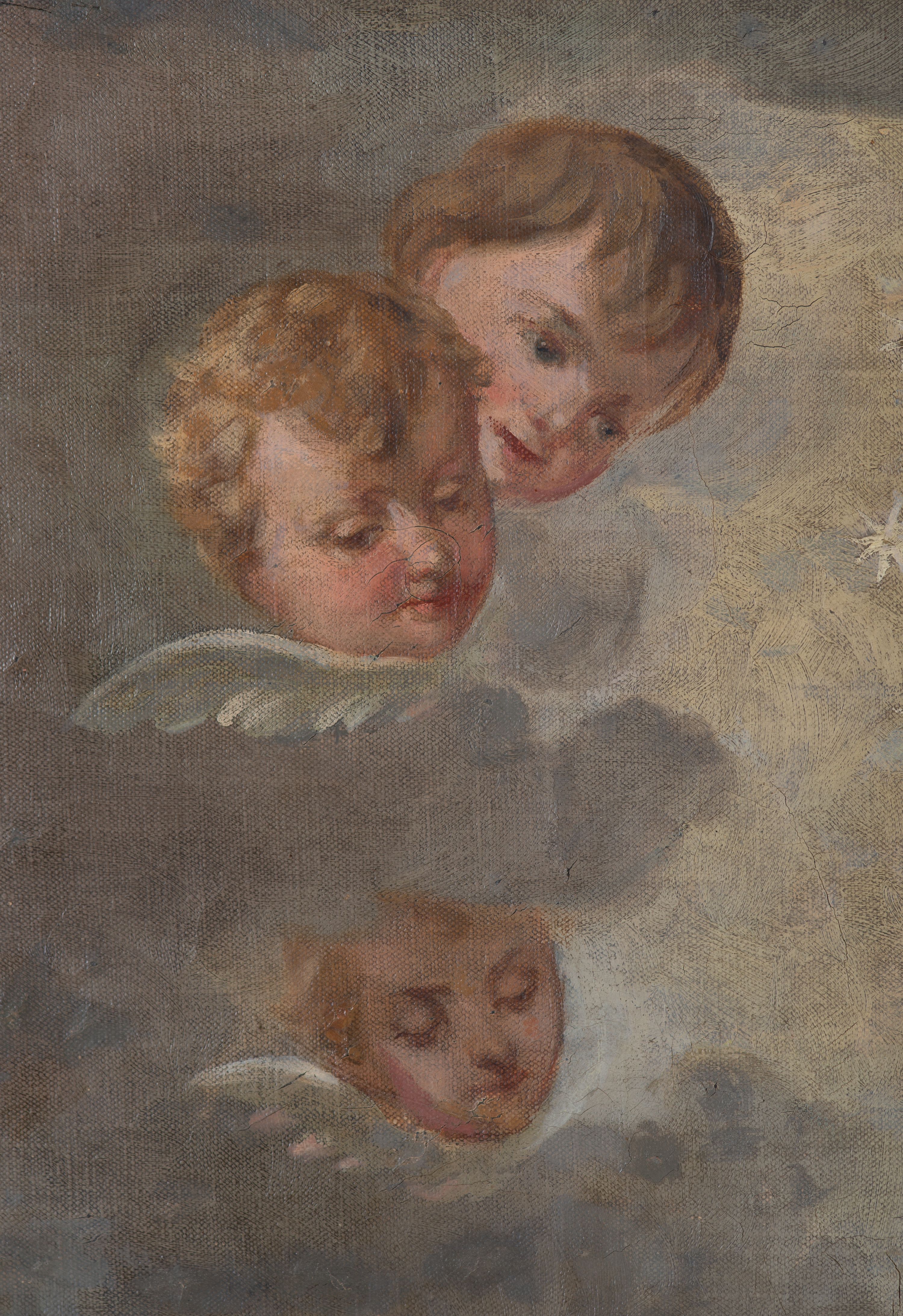 Karnacje wtórnie przemalowane, krakelury, płótno słabo naciągnięte, złuszczenia warstwy malarskiej.