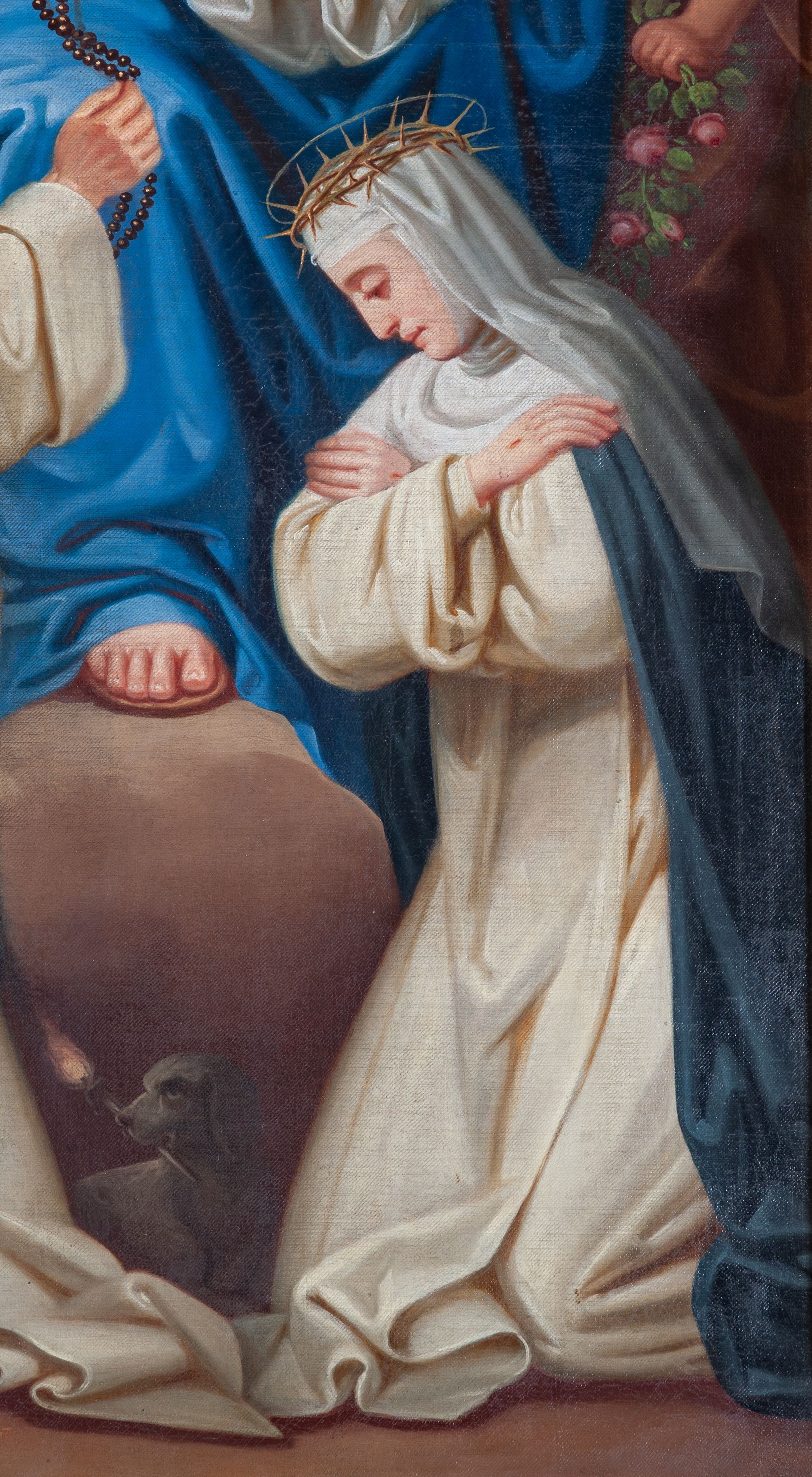 Paulina Kluz , "Matka Boska Różańcowa ze św. Dominikiem i św. Katarzyną Sieneńską", [w:] "Sakralne Dziedzictwo Małopolski", 2026, źródło: https://sdm.upjp2.edu.pl/dziela/matka-boska-rozancowa-ze-sw-dominikiem-i-sw-katarzyna-sienenska-4
