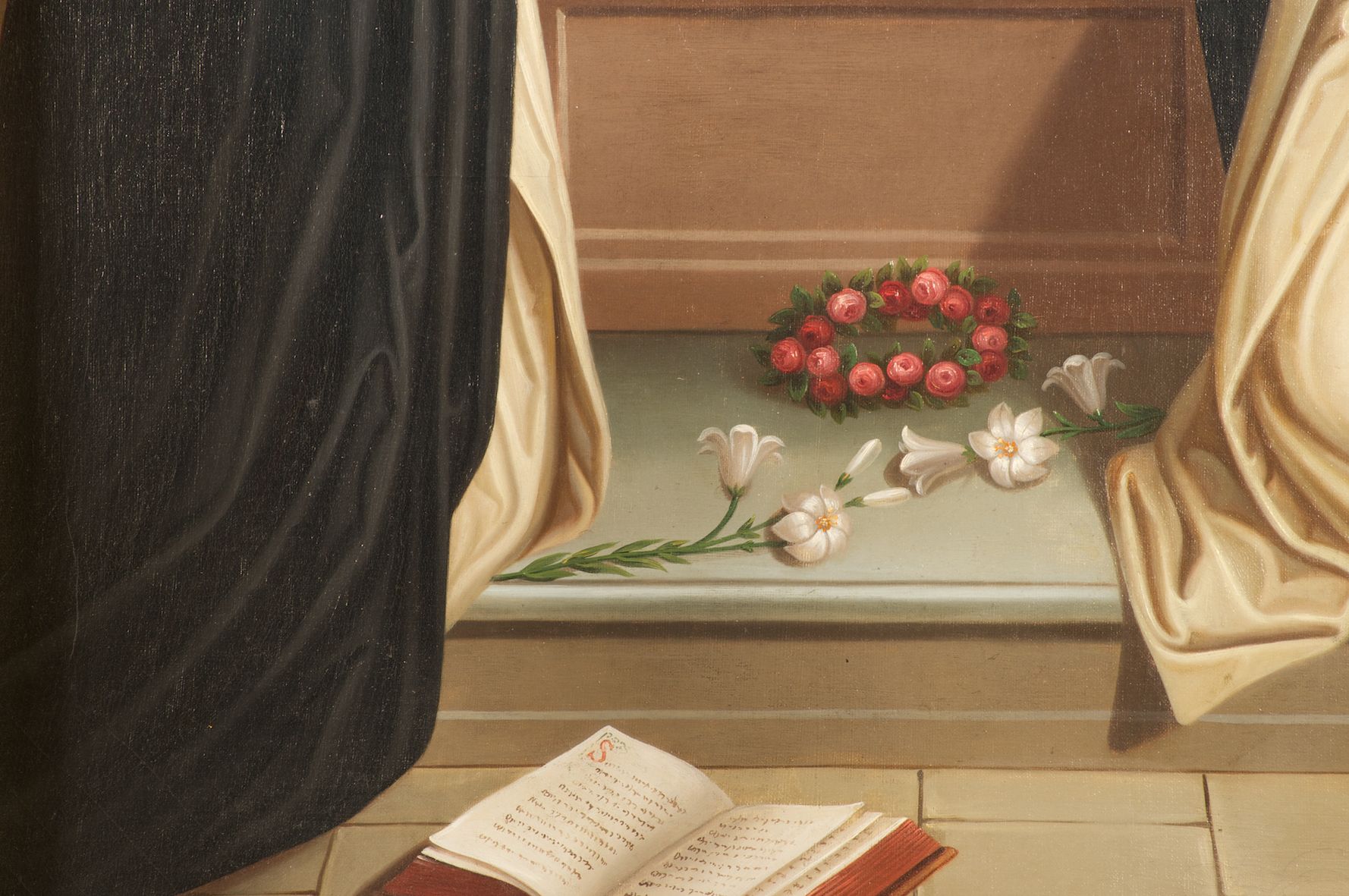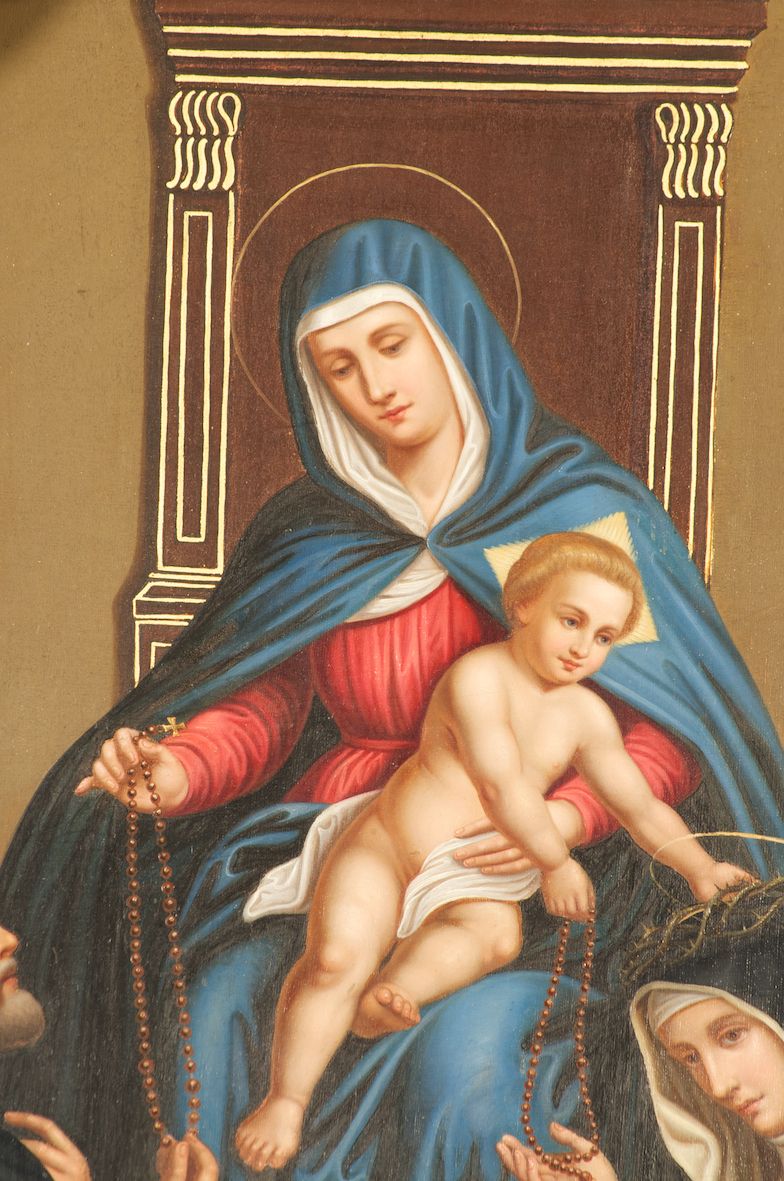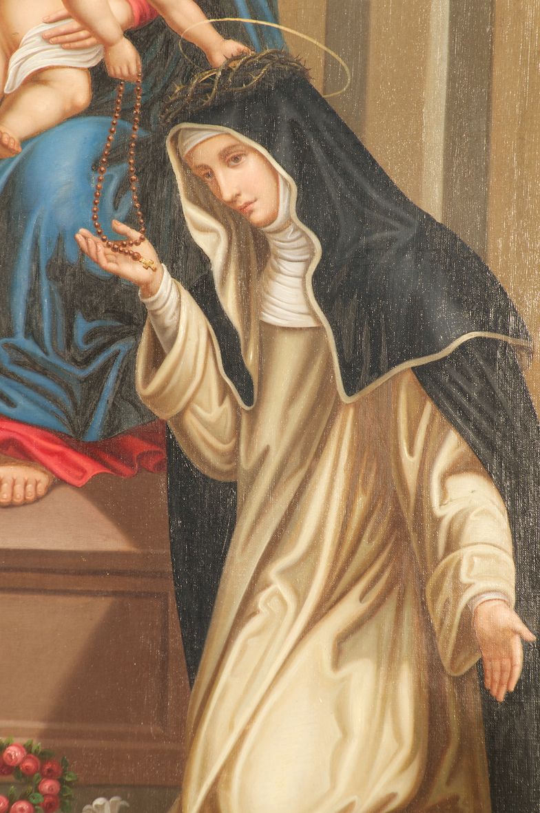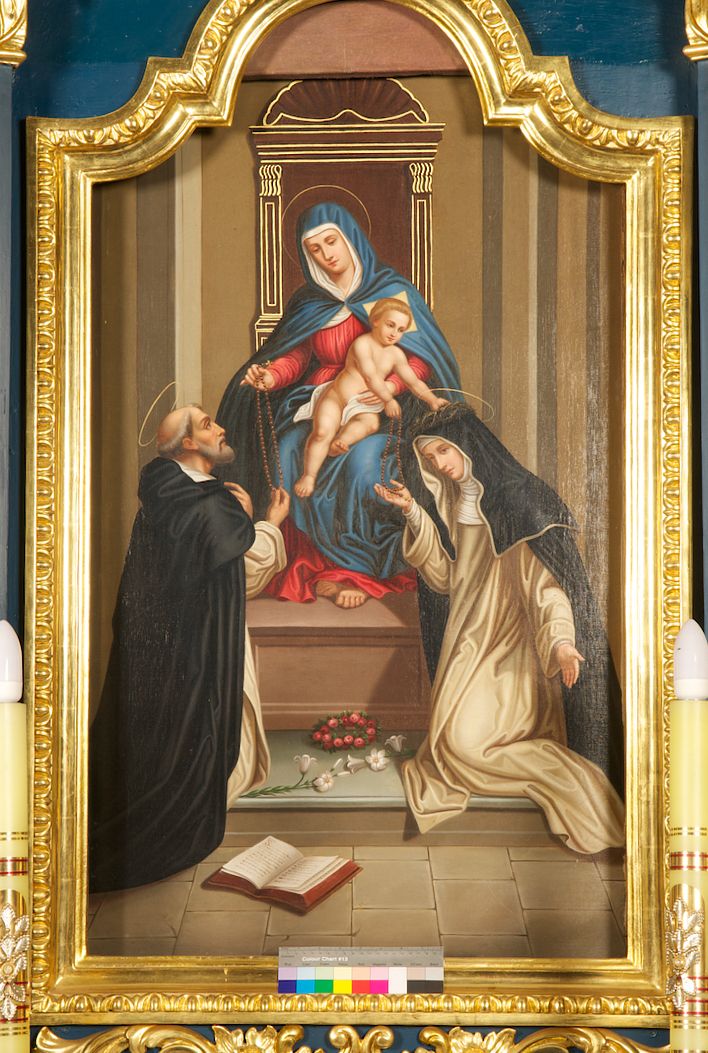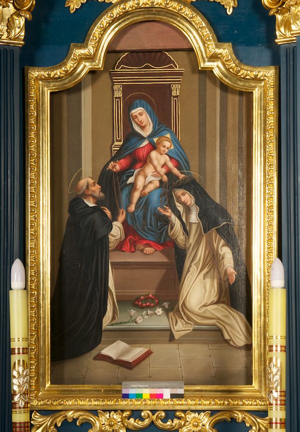 Agata Felczyńska, "Matka Boska Różańcowa ze św. Katarzyną Sieneńską i św. Dominikiem", [w:] "Sakralne Dziedzictwo Małopolski", 2026, źródło: https://sdm.upjp2.edu.pl/dziela/matka-boska-rozancowa-ze-sw-katarzyna-sienenska-i-sw-dominikiem