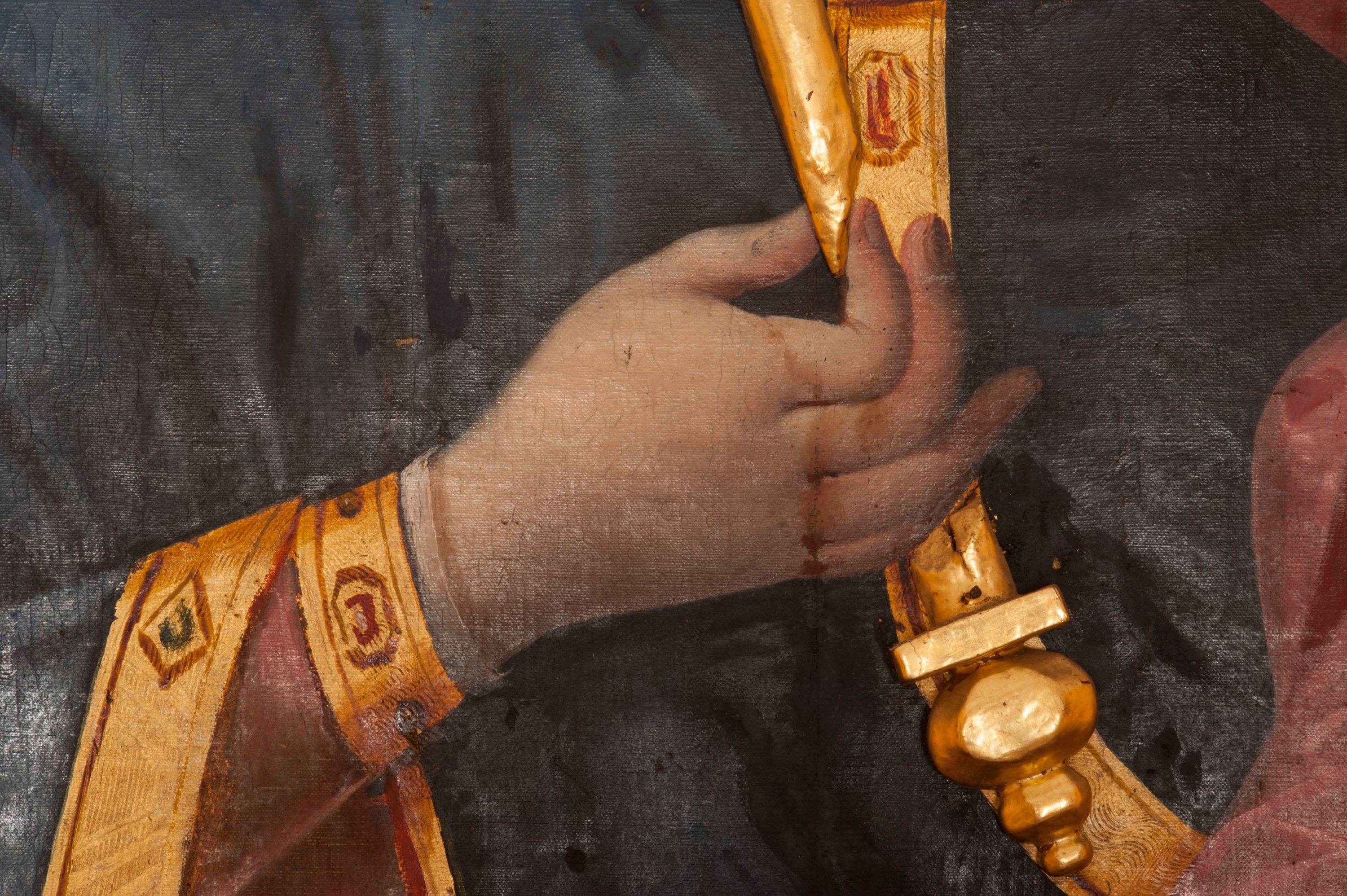 Liczne przetarcia i drobne ubytki warstwy malarskiej, krakelury.