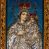 Obraz w kształcie stojącego prostokąta, ujęty rzeźbioną ramą z motywem wici akantowej, przedstawia Madonnę z Dzieciątkiem. Ukazana w półpostaci Maria zwrócona jest na wprost. W trzech czwartych skierowaną w lewo głowę charakteryzuje owalna twarz o wyrazistych rysach z ciemnymi łukami brwi, dużymi, migdałowatymi oczami o wyraźnych, dolnych powiekach, długim, prostym nosie, kształtnymi ustami w subtelnym uśmiechu i wyraźną linią podbródka. Partie szat pokryte są metalowymi osłonami. Maria ma na sobie srebrną, przewiązaną w pasie suknię zdobioną motywem tulipanów, pod szyją krótkie korale. Głowę, ramiona i ręce osłania srebrny, spięty pod szyją owalną broszą płaszcz obszyty złoconymi galonami, zdobiony motywem ukwieconej wici roślinnej. Matka Boska prawą, uniesioną na wysokości piersi ręką o wyprostowanej dłoni i złączonych trzech palcach wskazuje na trzymane na lewej ręce Dzieciątko. Zwrócony w trzech czwartych w prawo Jezus ukazany jest w pozycji siedzącej. Zaokrągloną twarz charakteryzują pełne, wyraziste rysy o dużych oczach z wydanie podkreślonymi liniami powiek, długim nosie, kształtnych ustach w delikatnym uśmiechu, zaróżowionych policzkach oraz wyraźniej linii podbródka. Jezus ma na sobie długą, srebrną, przewiązaną w pasie, zdobioną ukwieconą wicią roślinną suknię o złoconym obszyciu dekoltu i dekoracyjnych galonach przy mankietach dolnej krawędzi. Lewą ręką podtrzymuje małą, zamkniętą, złoconą księgę, prawą unosi w geście błogosławieństwa. Zwieńczone zamkniętymi, kameryzowanymi koronami głowy okalają – promienisty nimb Jezusa, wieniec z 12 gwiazd Marii. Tło niebieskie, z drobnym deseniem.