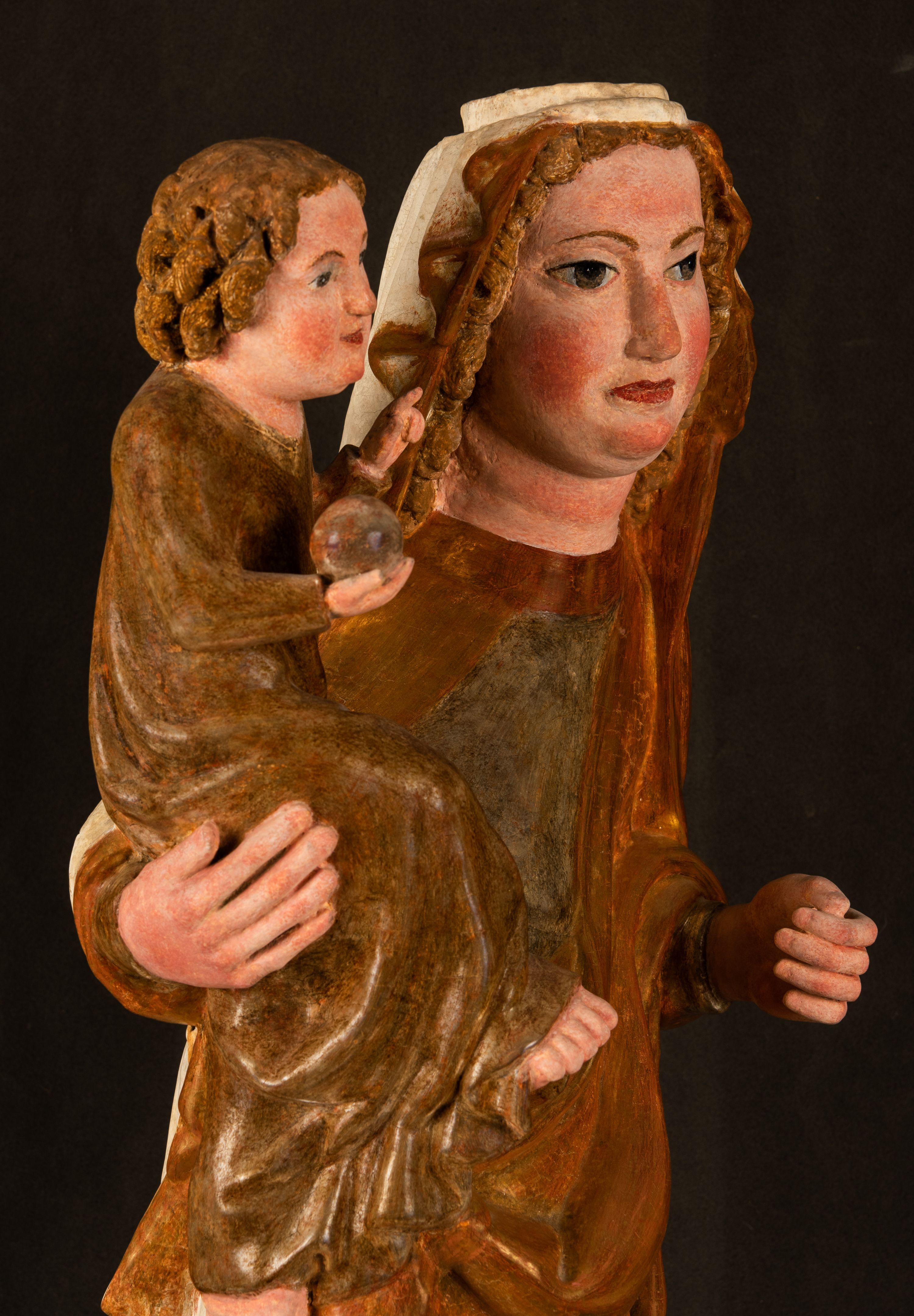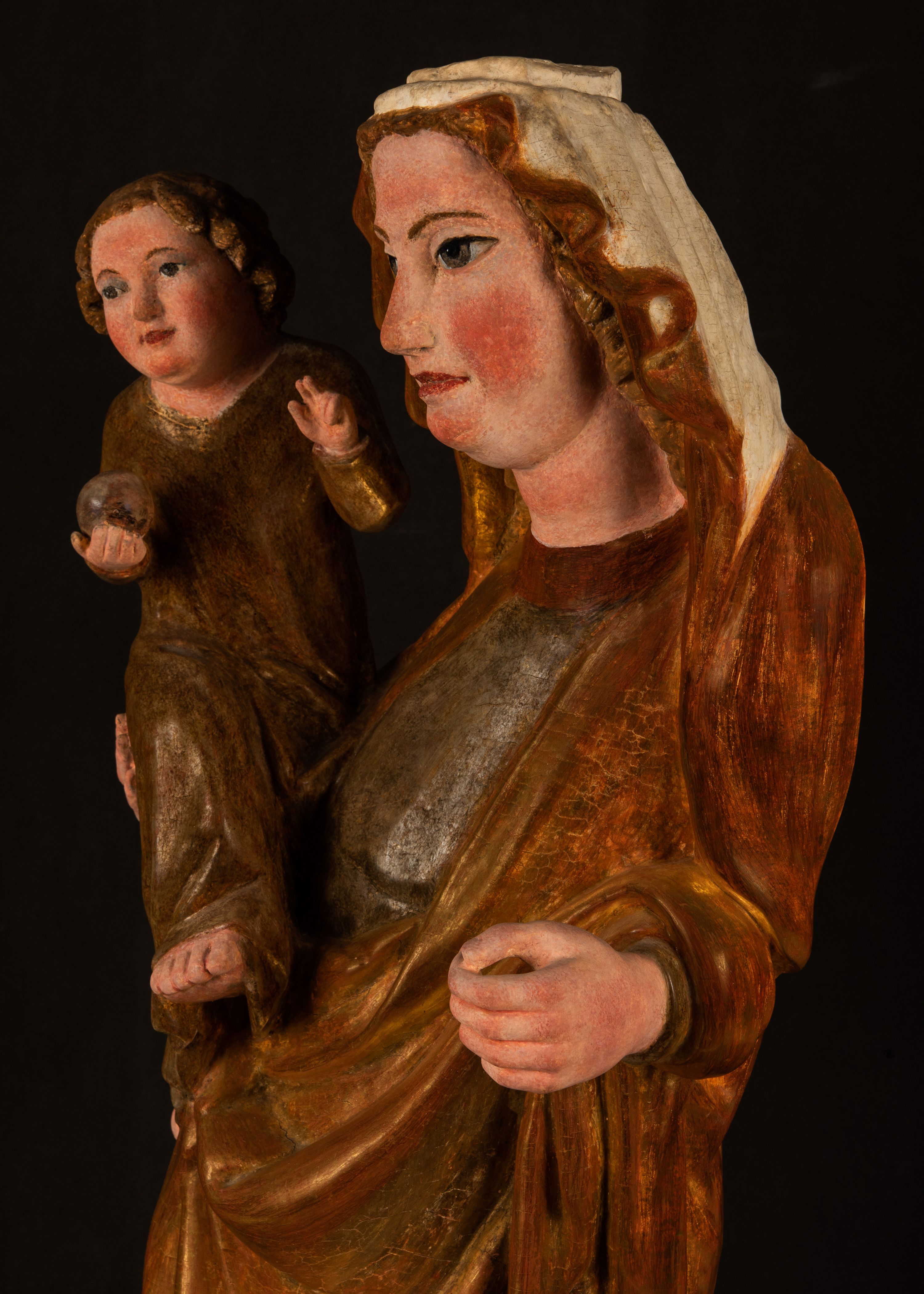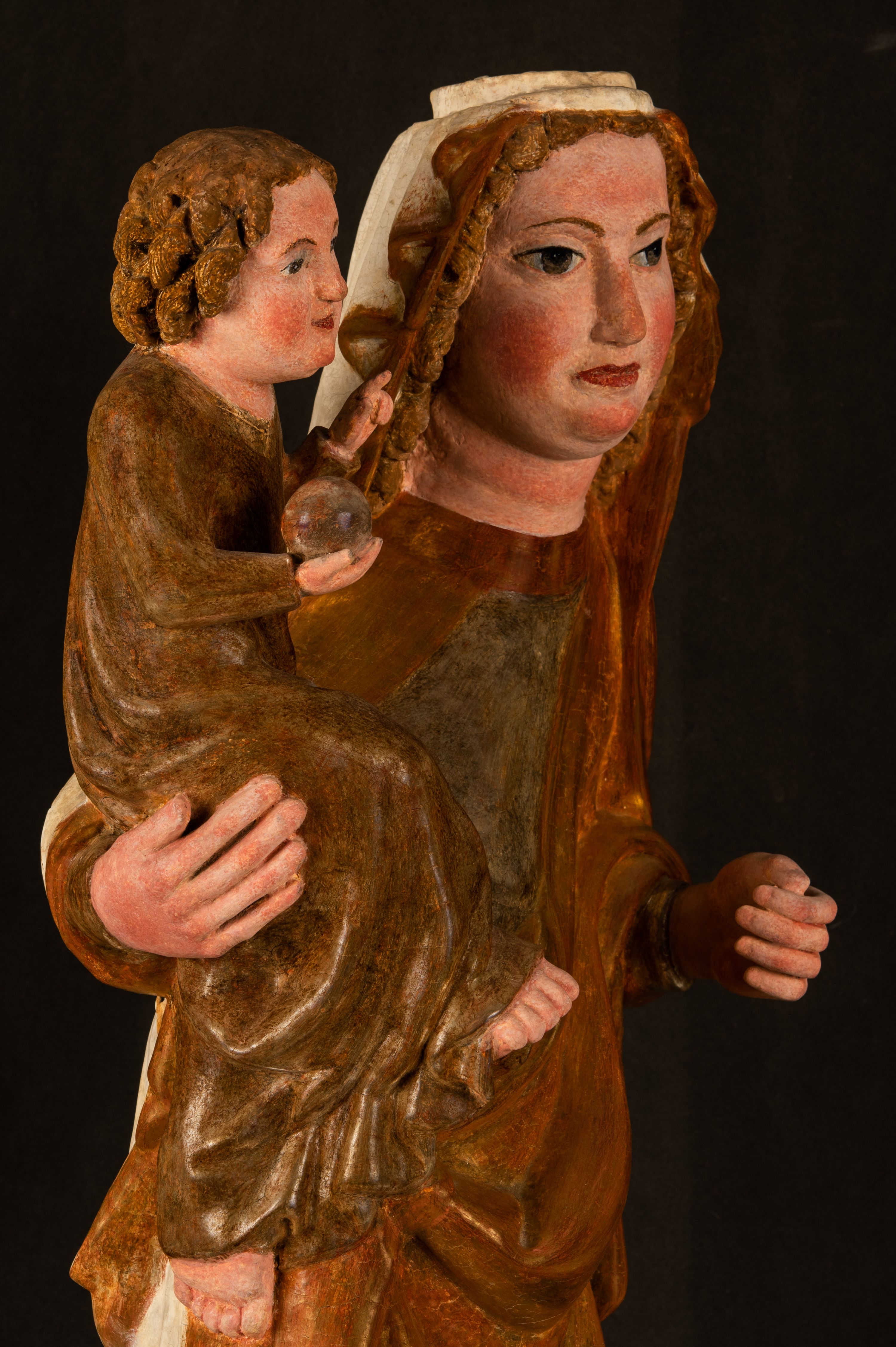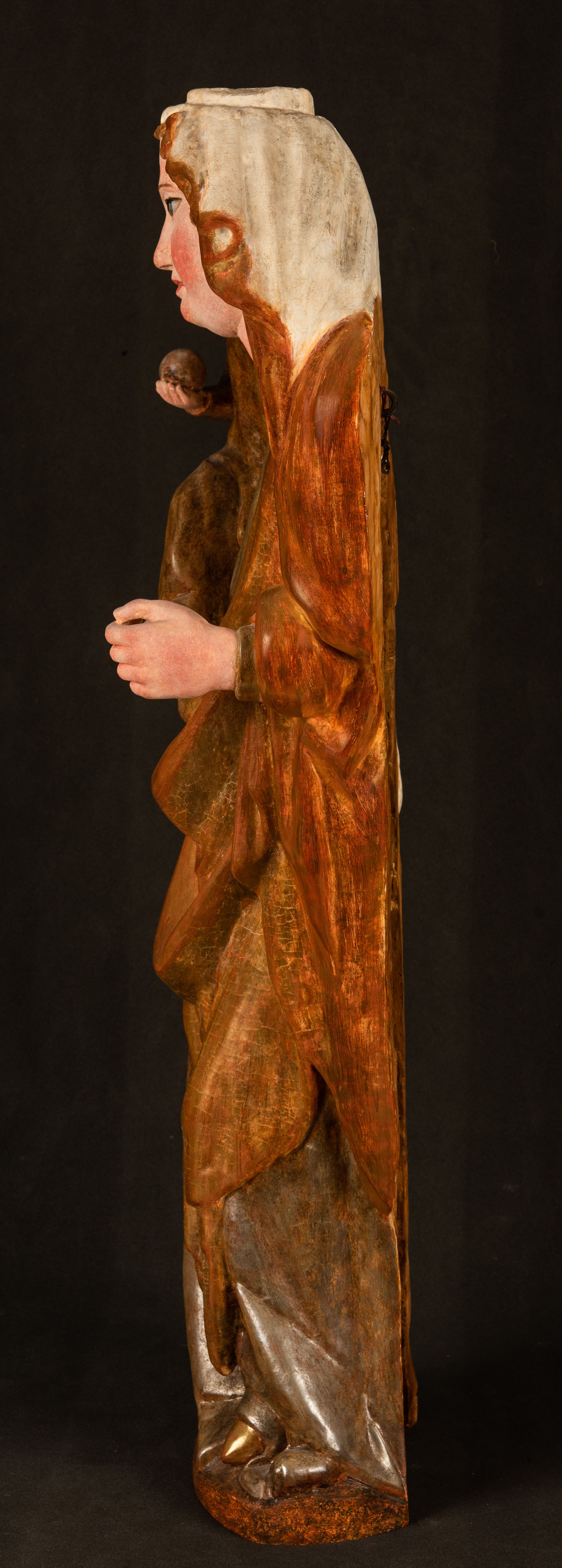 Dobry, po konserwacji (?). Brak berła, które zapewne znajdowało się w prawej dłoni Marii, przetarcia w partiach złocenia i srebrzenia.