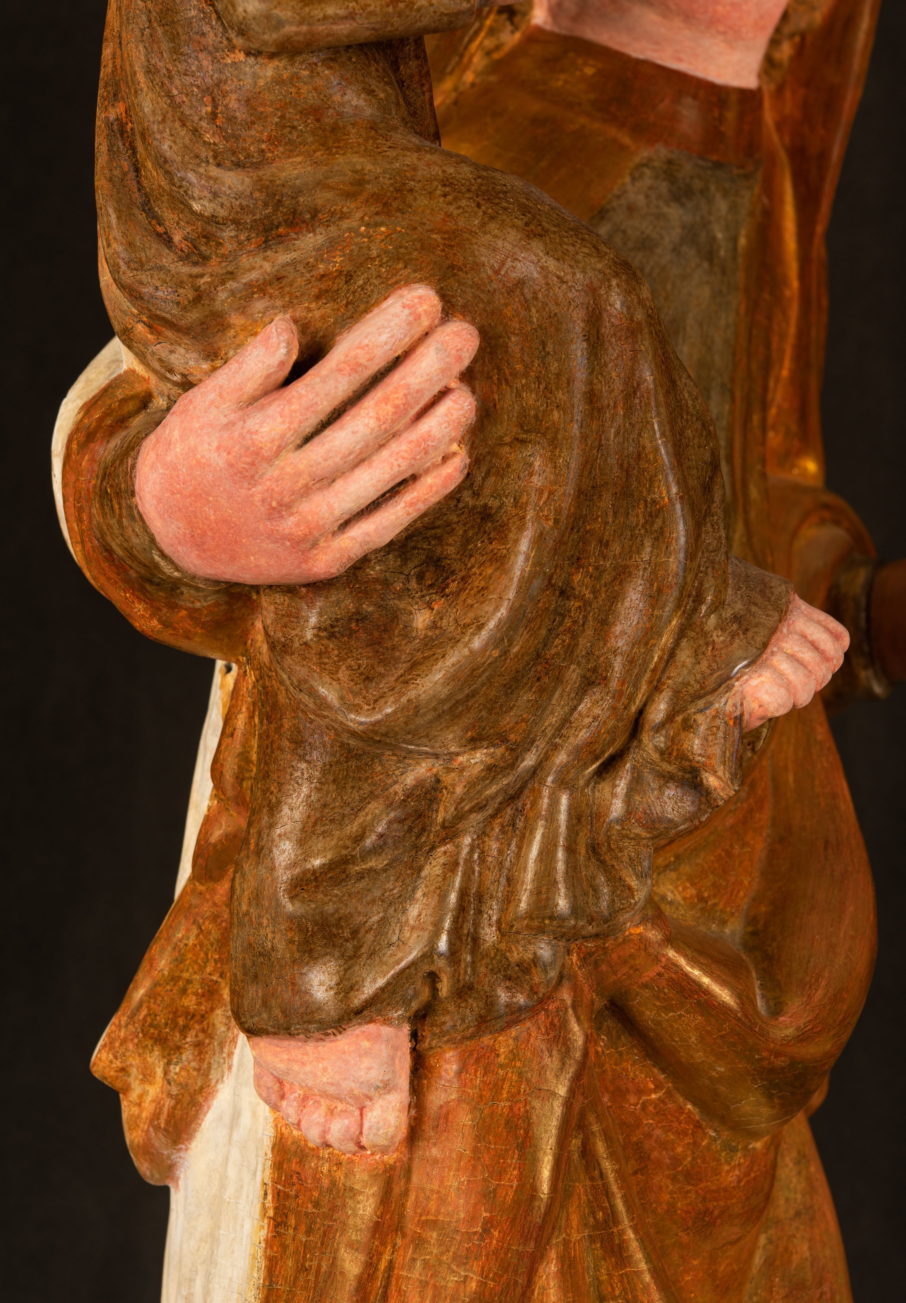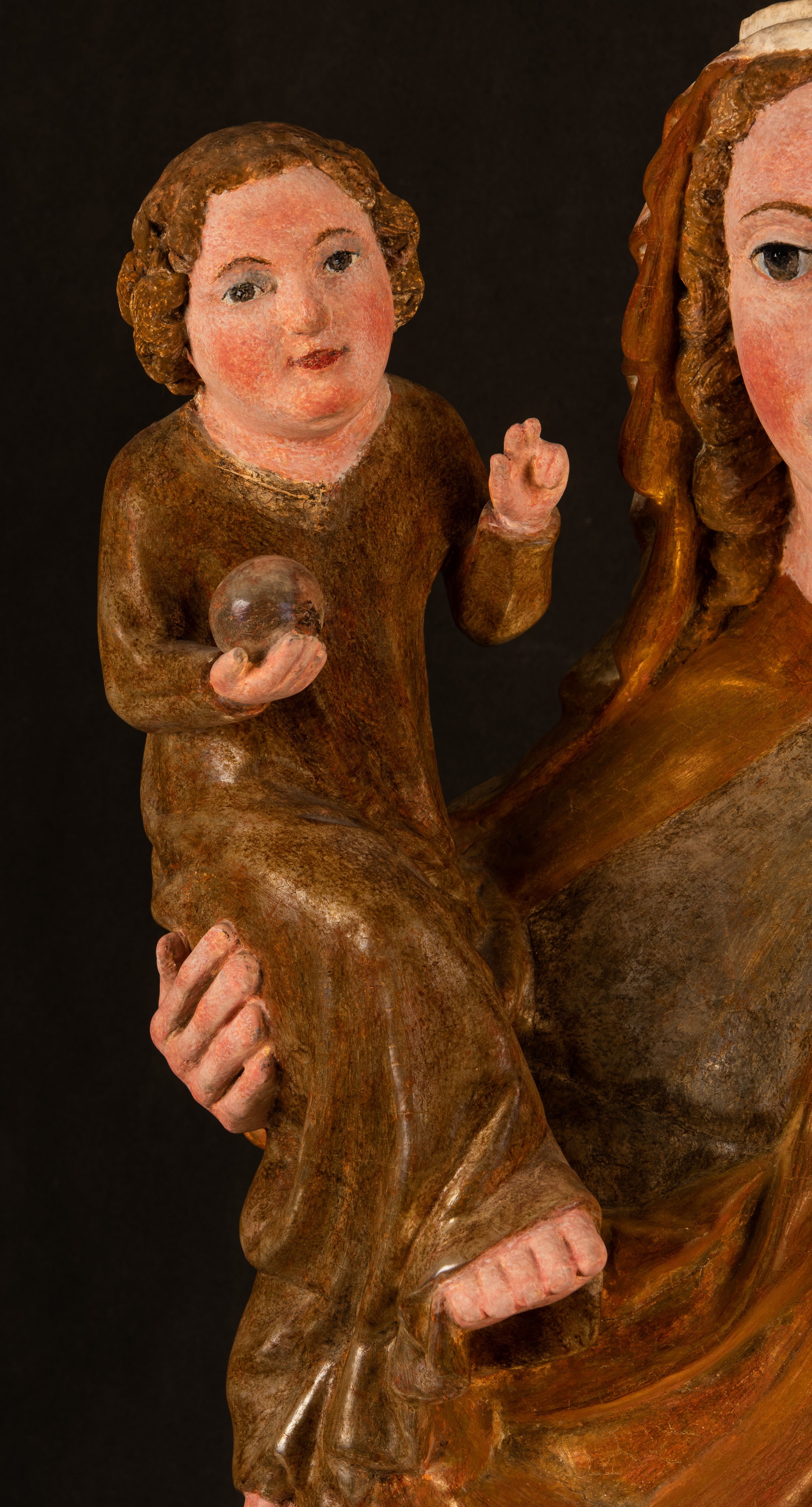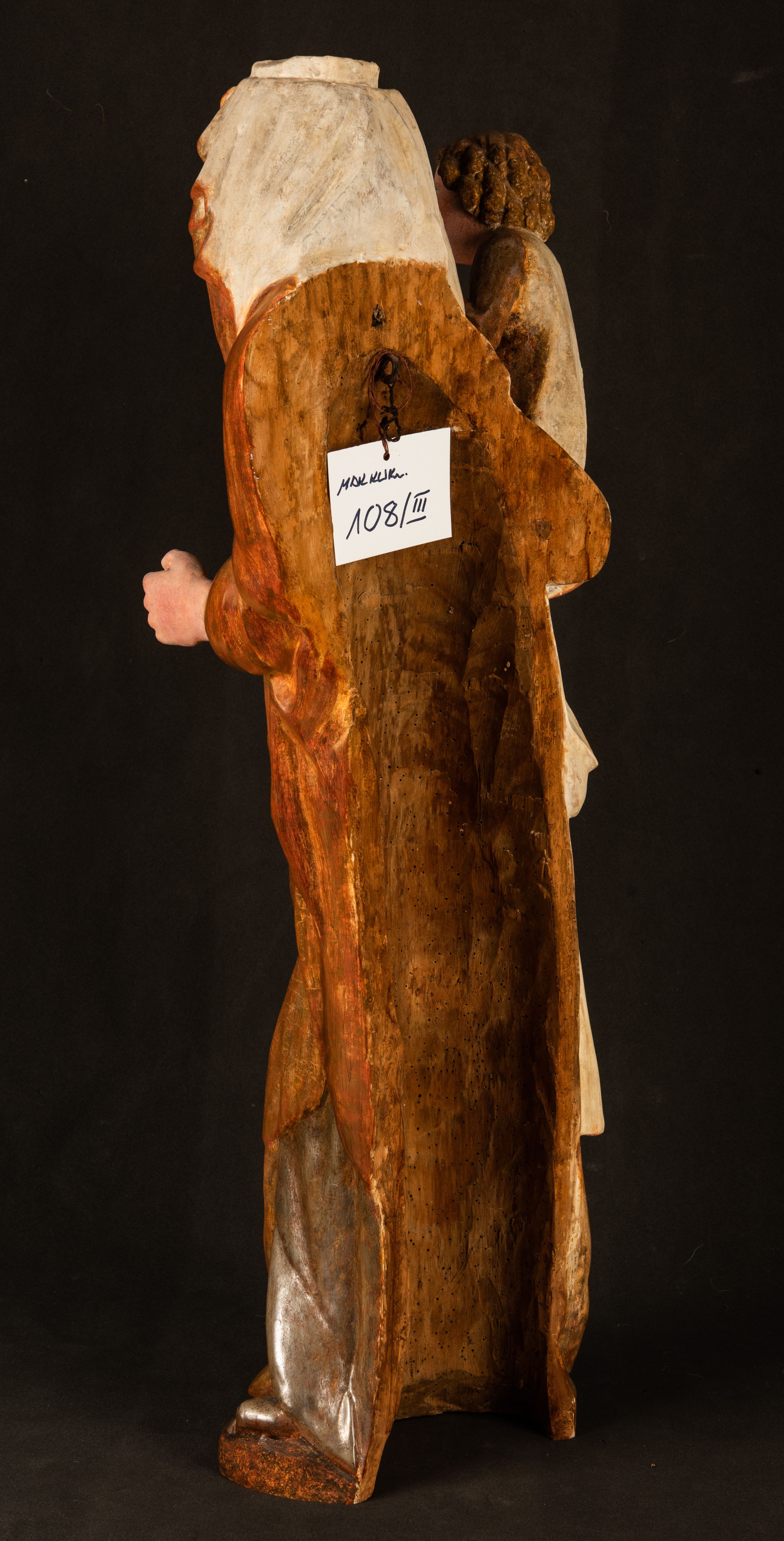 Dobry, po konserwacji (?). Brak berła, które zapewne znajdowało się w prawej dłoni Marii, przetarcia w partiach złocenia i srebrzenia.