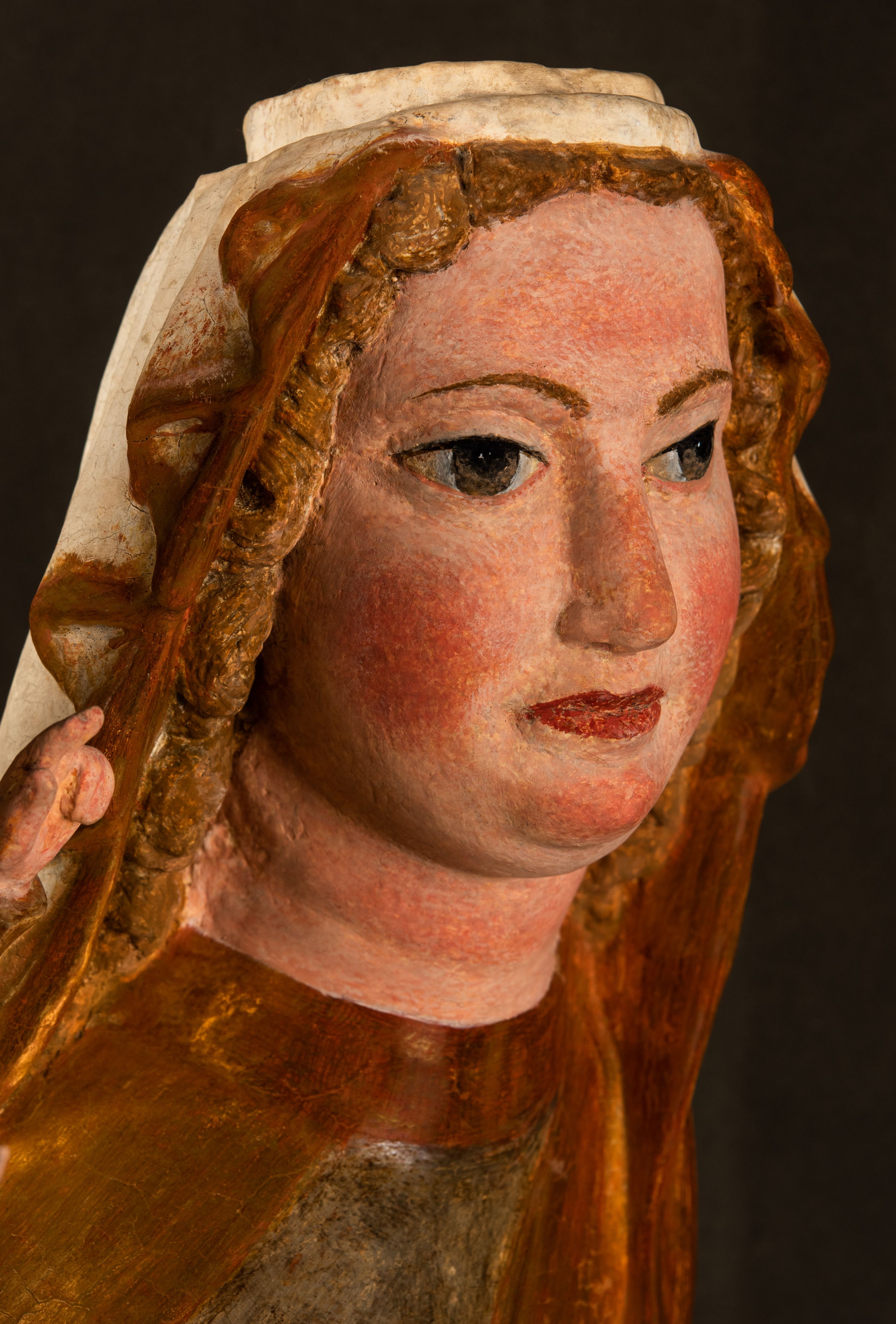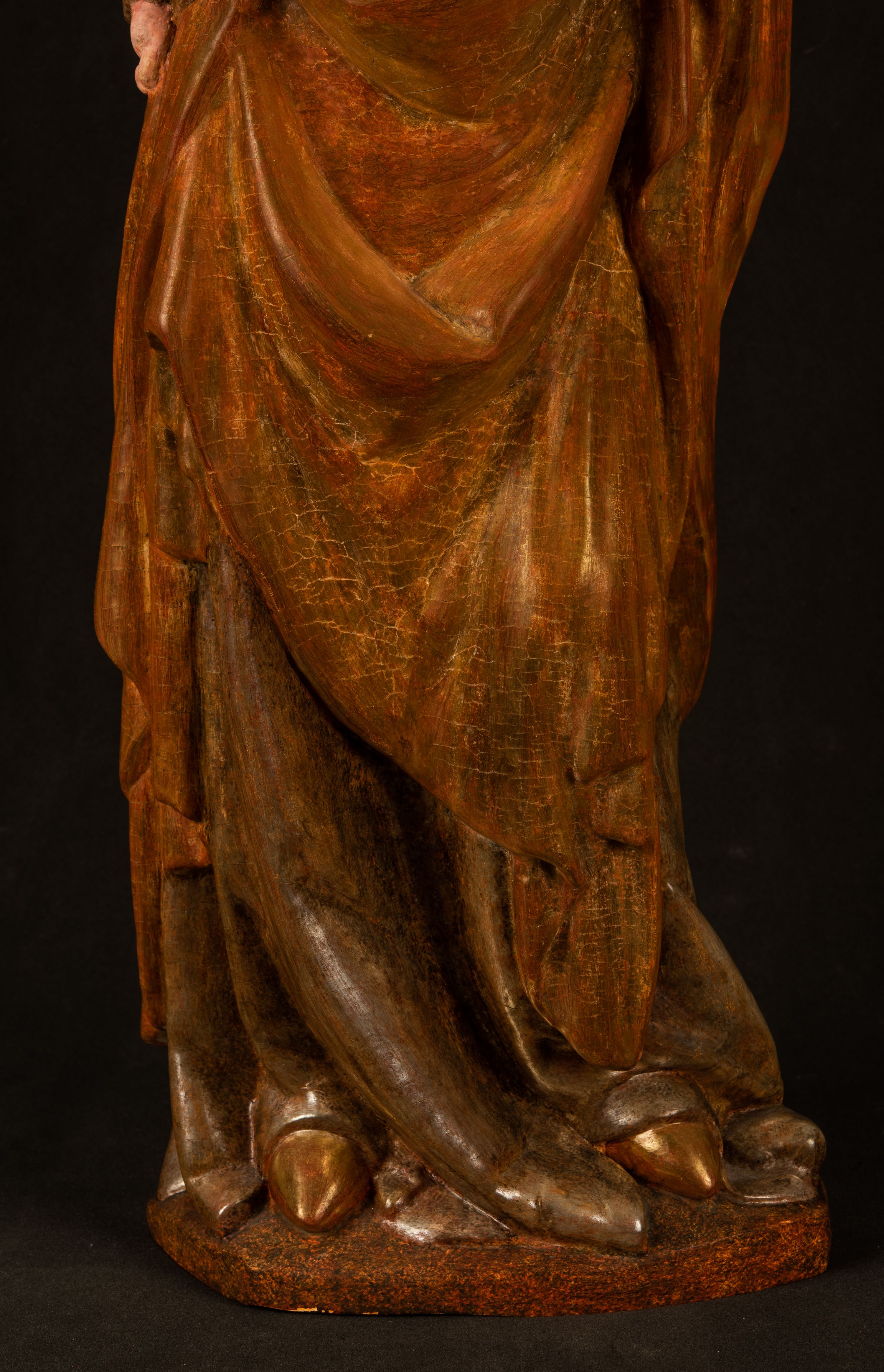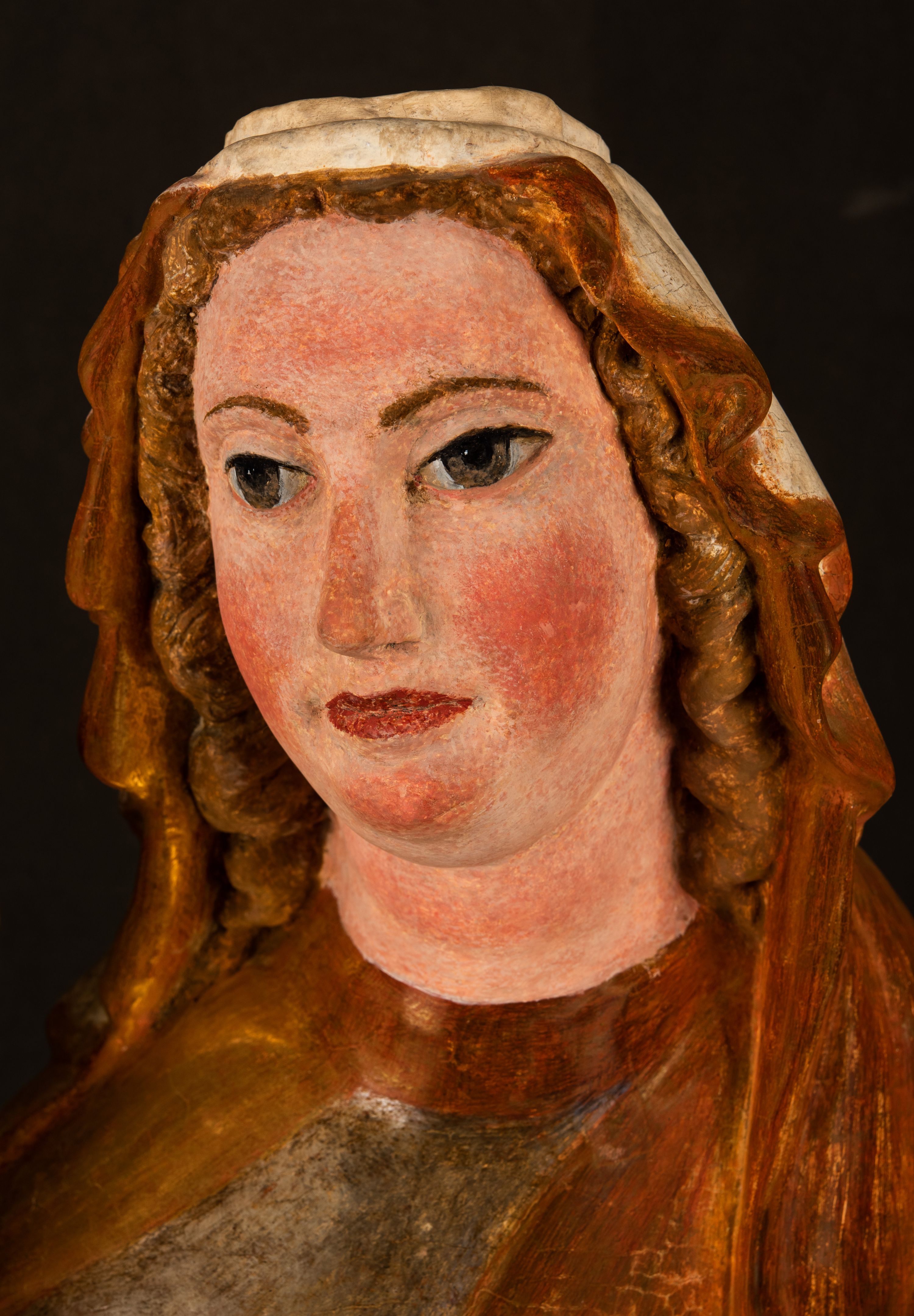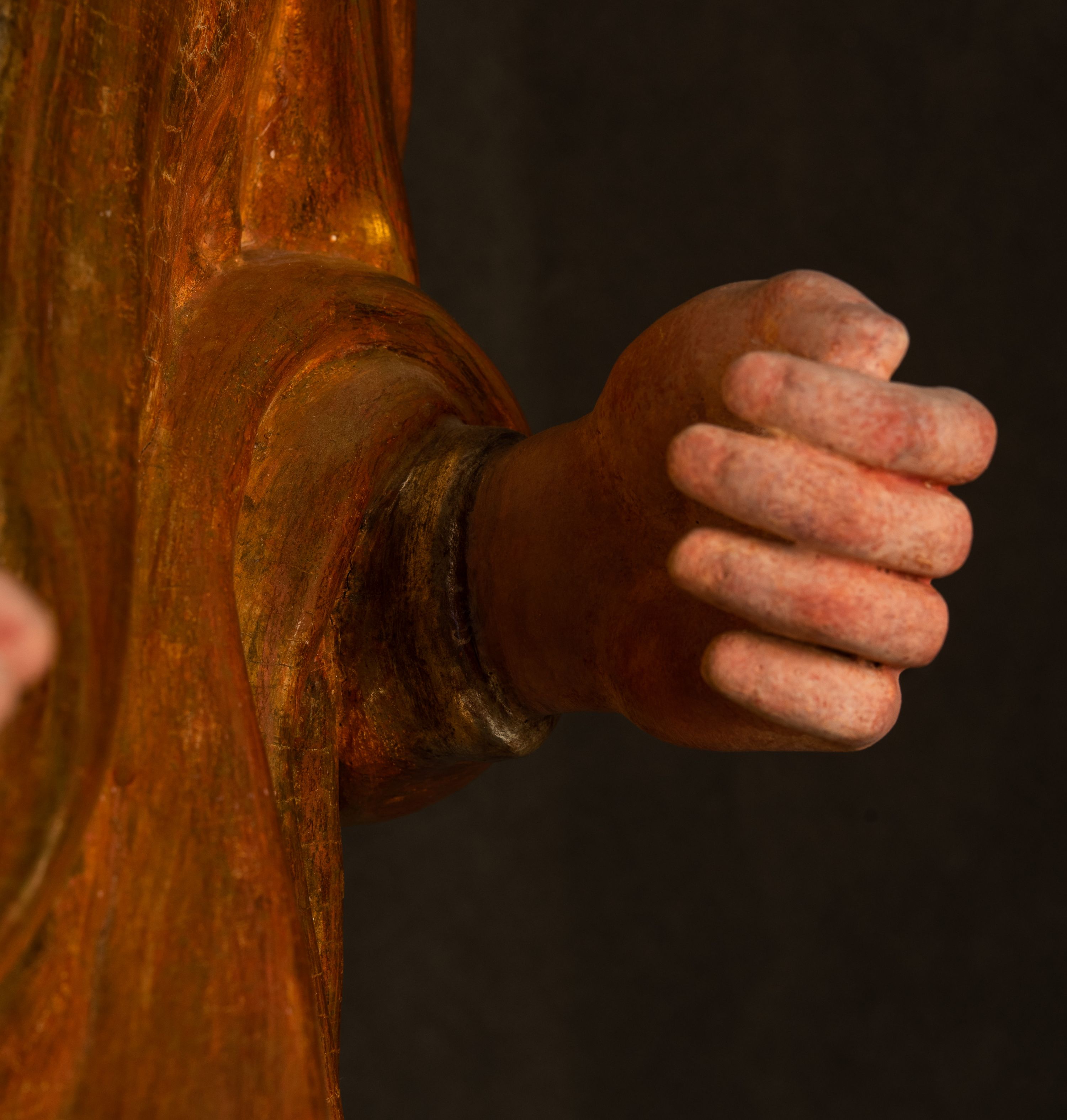 Dobry, po konserwacji (?). Brak berła, które zapewne znajdowało się w prawej dłoni Marii, przetarcia w partiach złocenia i srebrzenia.