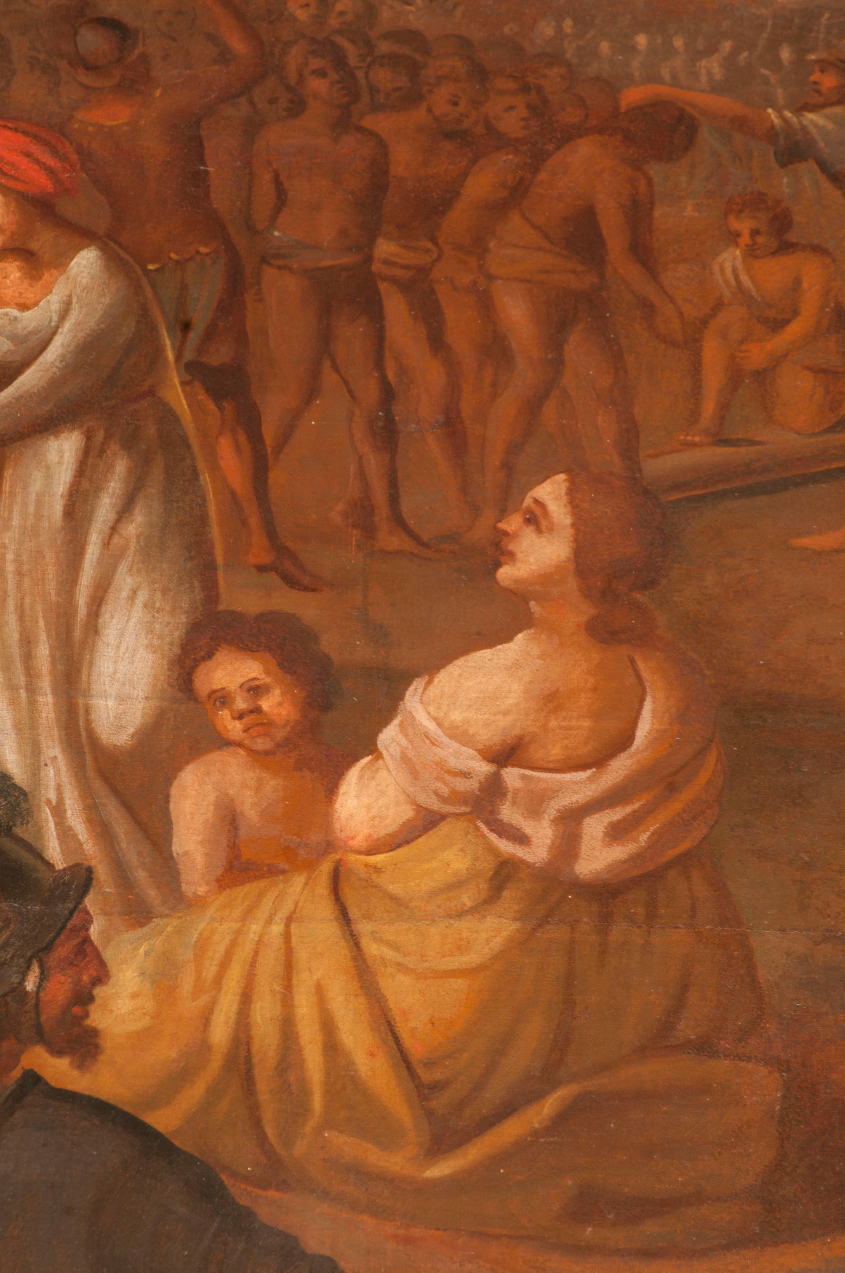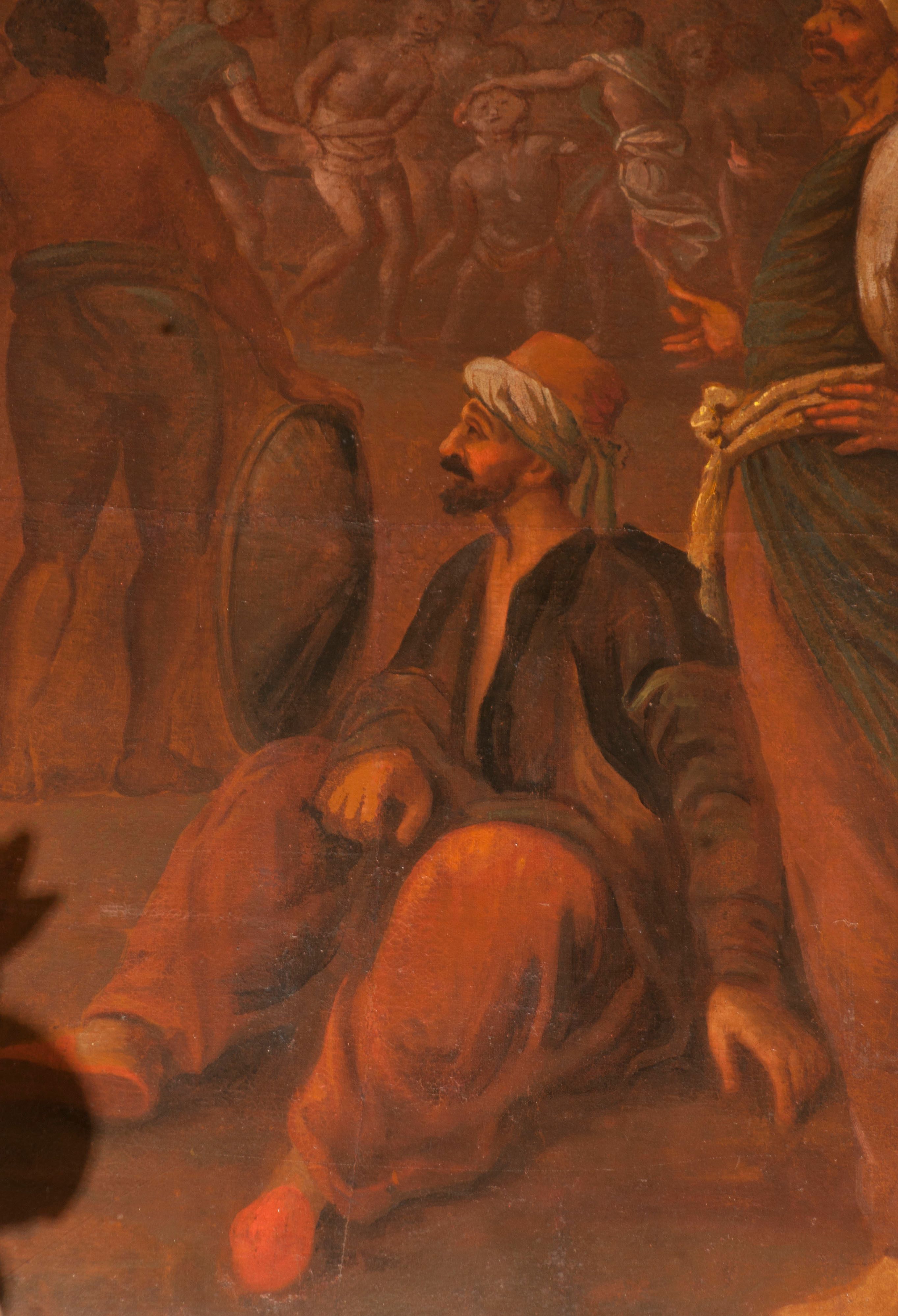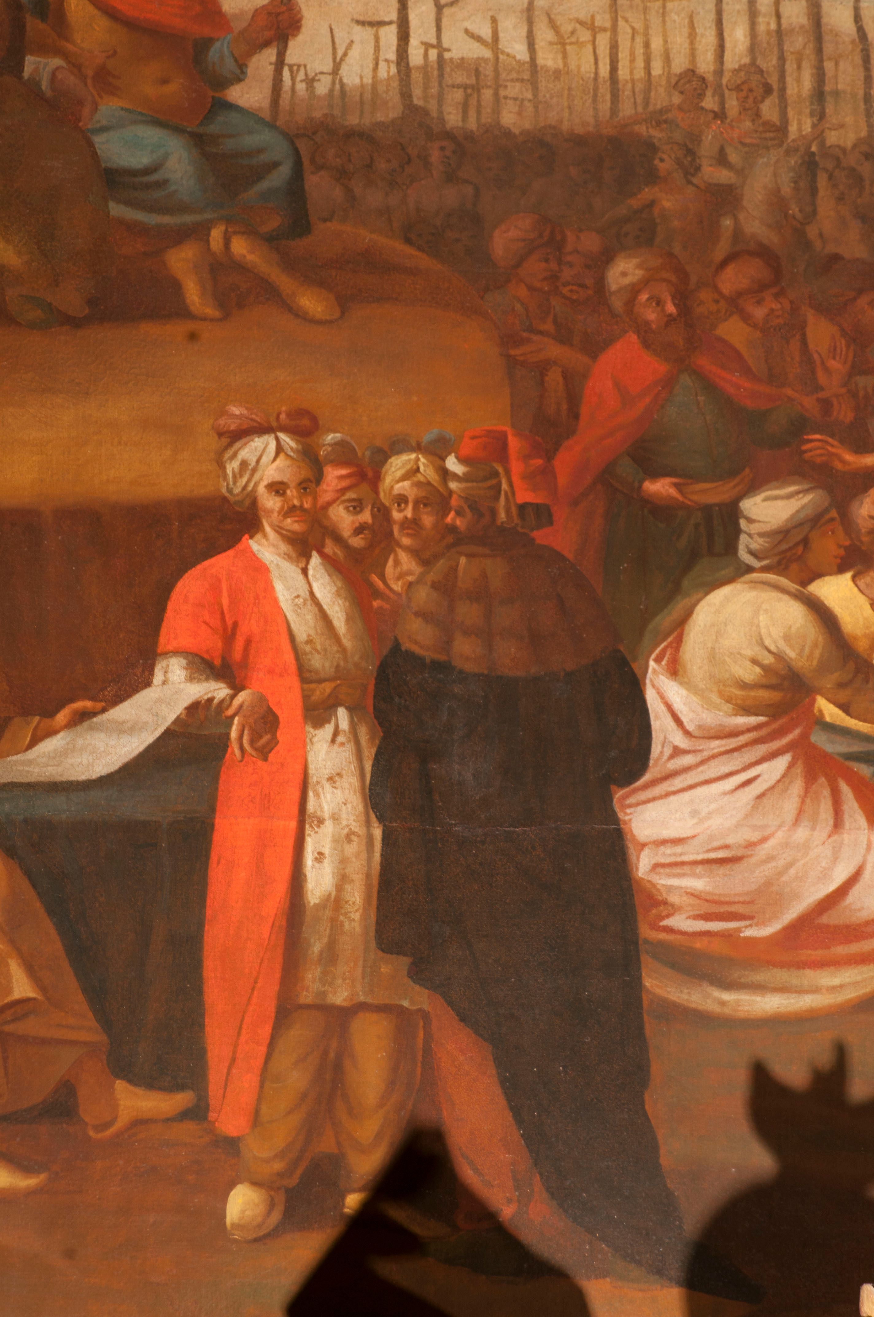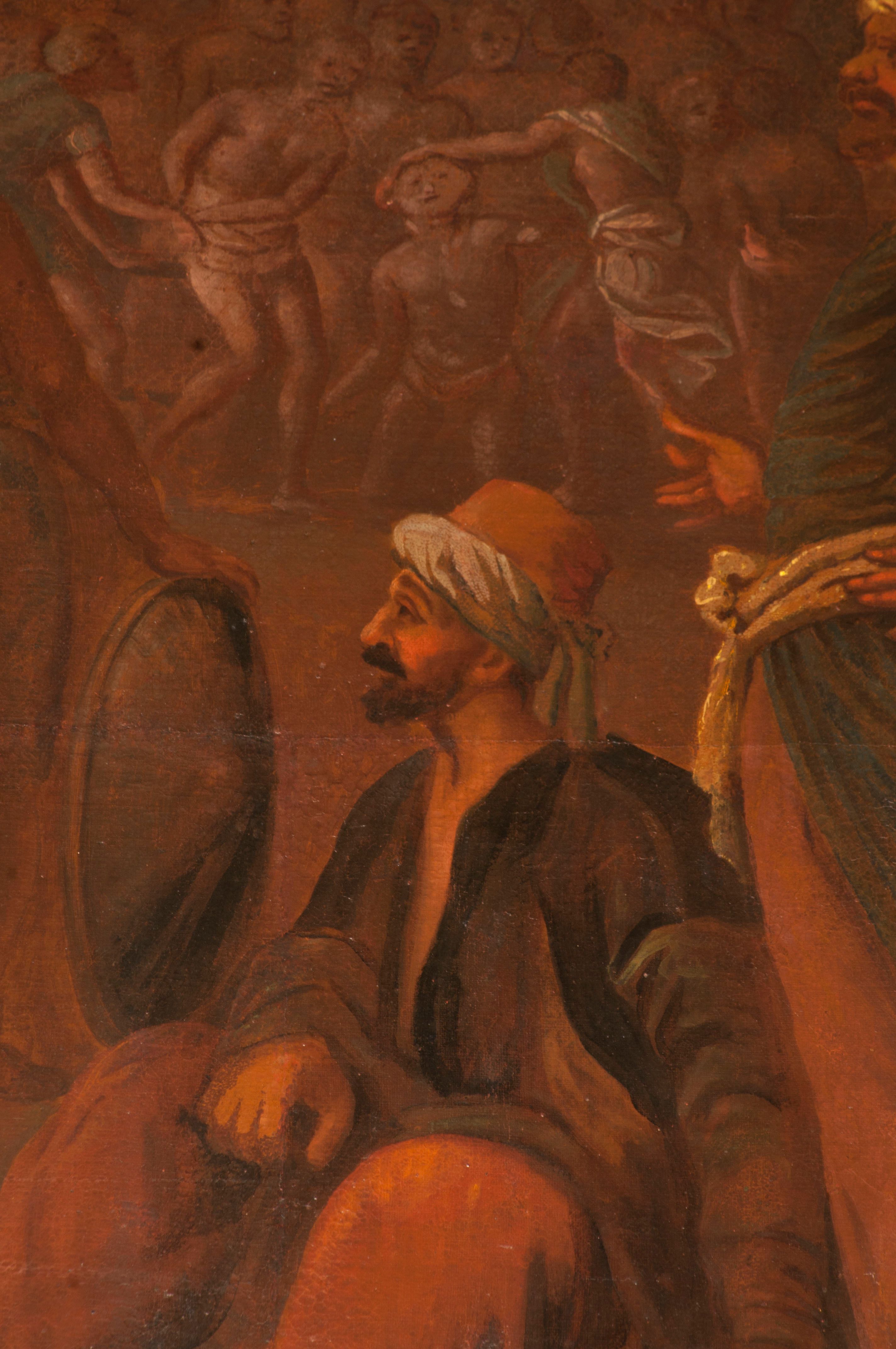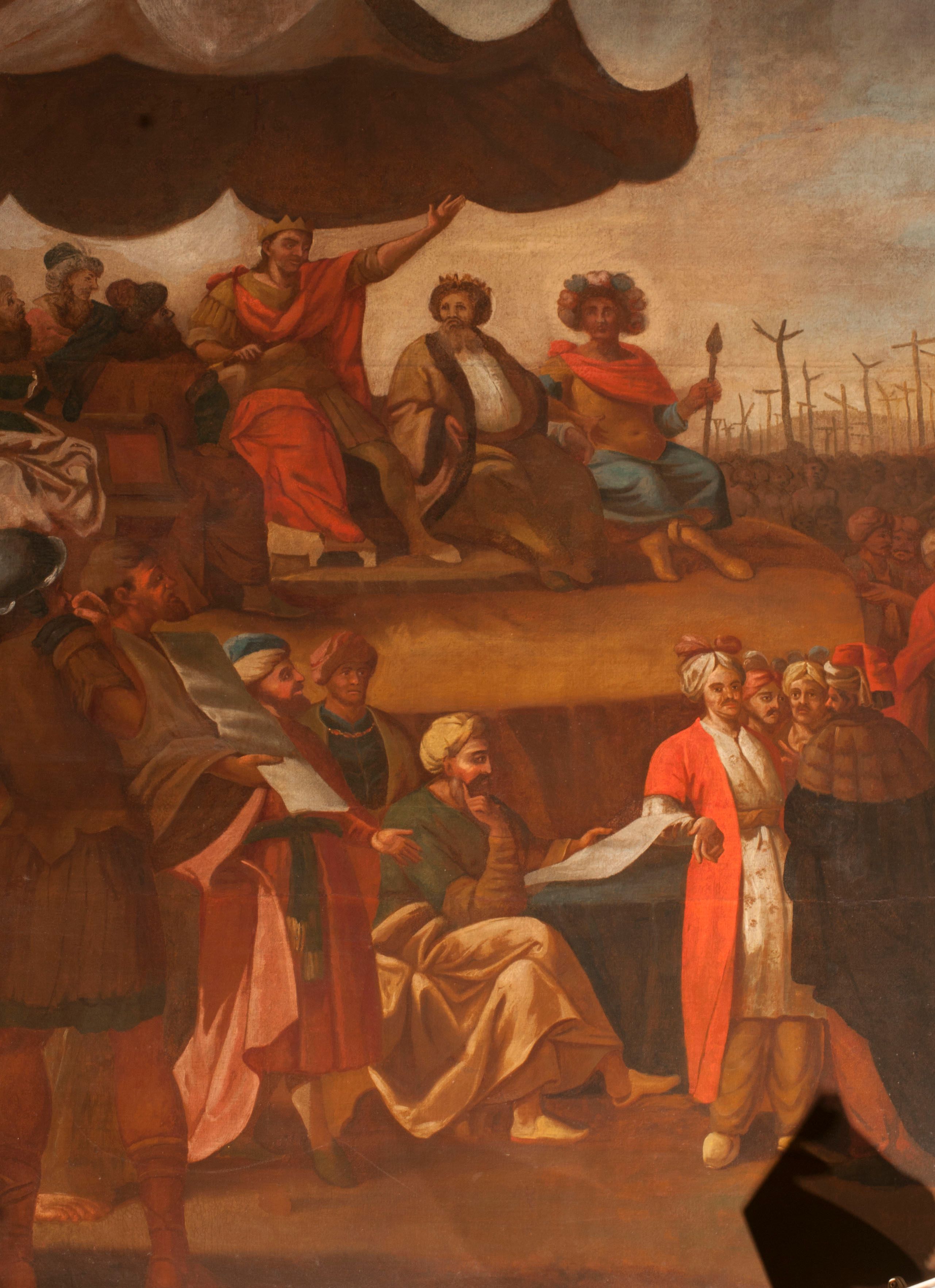Obraz znanego krakowskiego malarza Wojciecha Gutowskiego jest jednym z nielicznych w Polsce dzieł ukazujących wydarzenie z czasów męczeństwa pierwszych chrześcijan, w którym grupa chrześcijan z góry Ararat ze św. Achacym z Kapadocji została na rozkaz cesarza Hadriana (117-138). Tematykę tę podejmował Albrecht Dürer w obrazie z 1508 roku (Künstgeschichte-Museum, Wiedeń) i Jacopo Pontormo w obrazie z 1529-1530 roku (Galleria degli Uffizi, Florencja). Kompozycja Gutowskiego wyróżnia się niezwykłym rozmachem, ale i konwencjonalnym repertuarem formalnym, twórcy wykształconego u Walentego Janowskiego i związanego z krakowskim cechem malarzy.