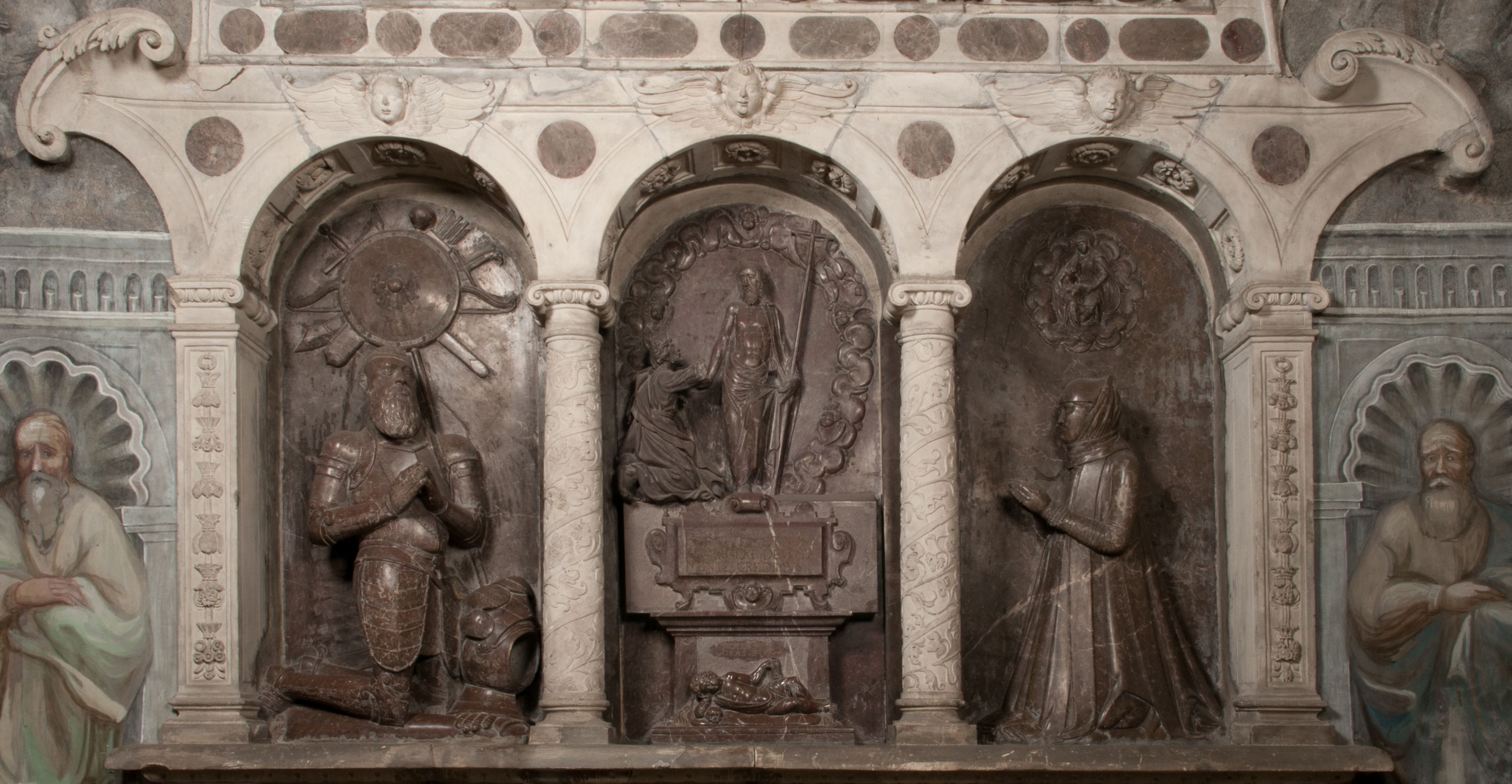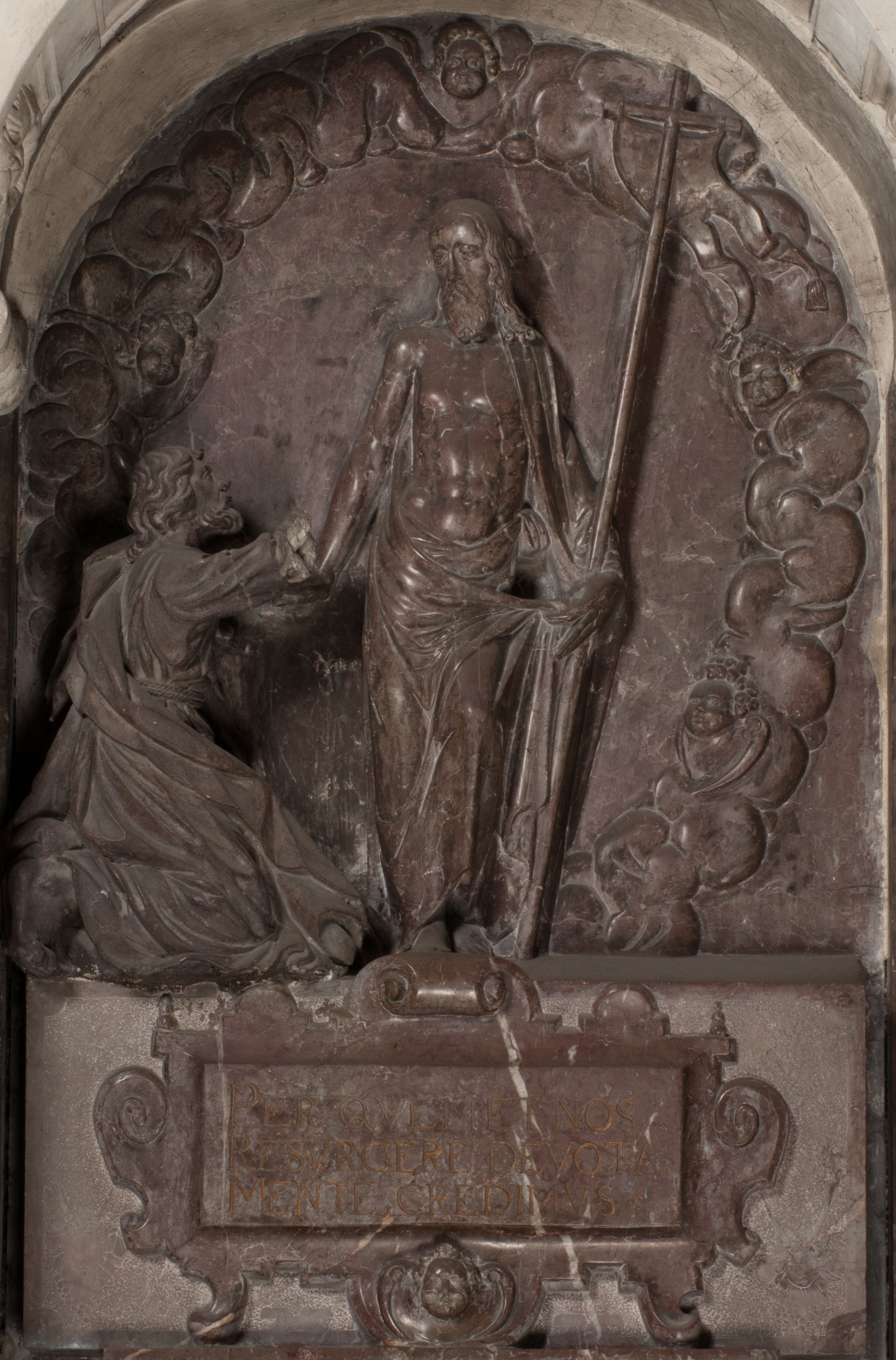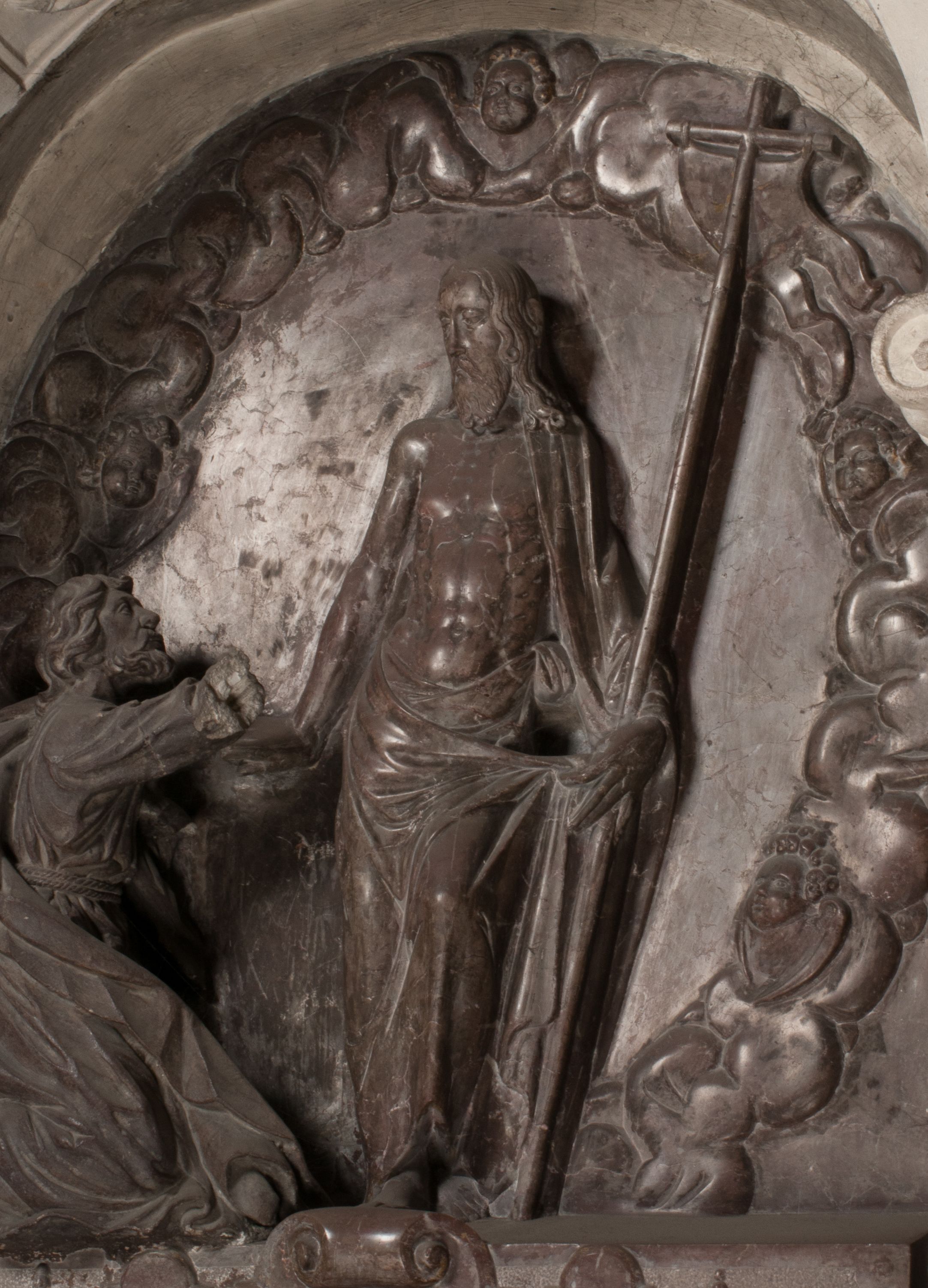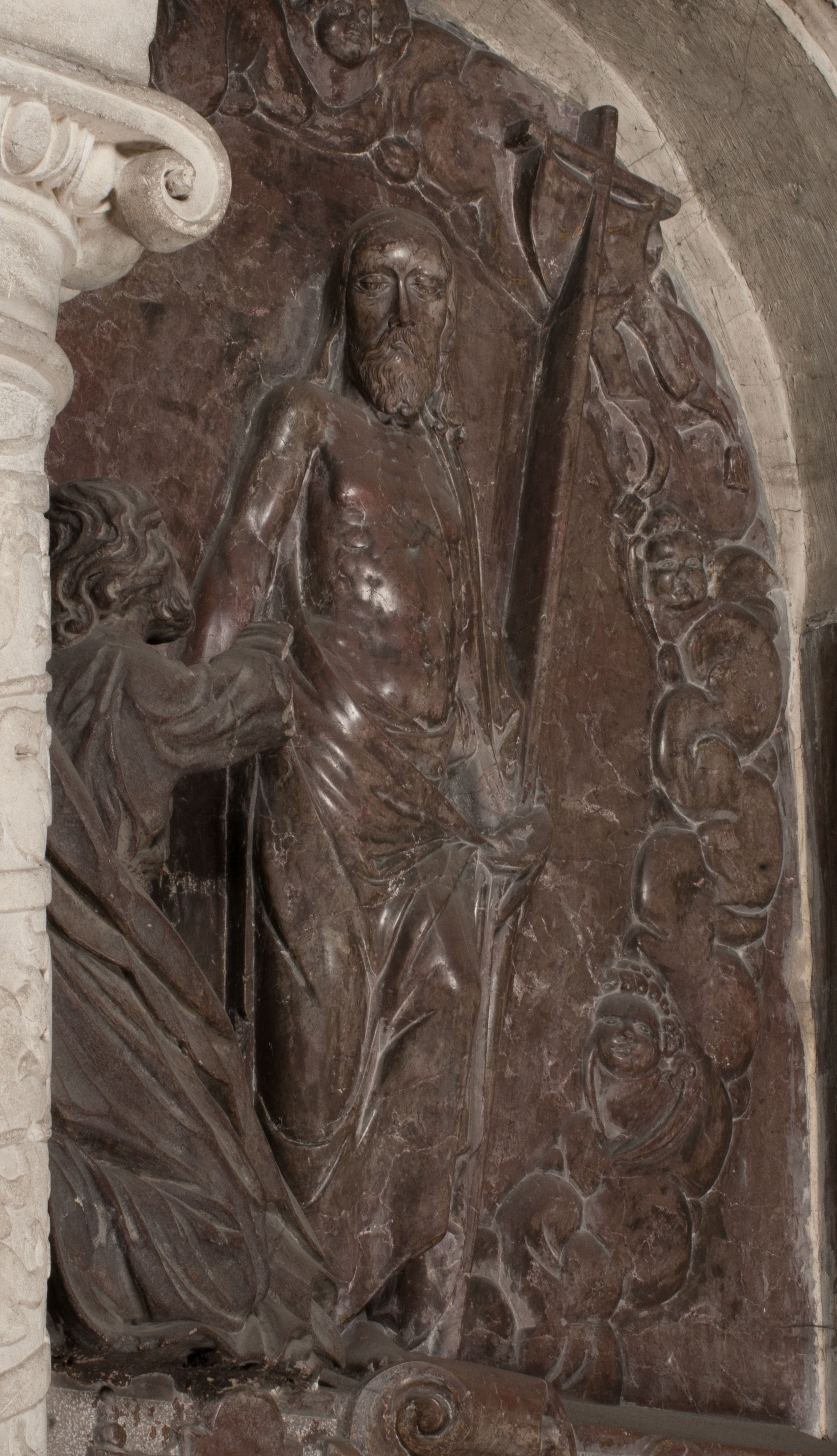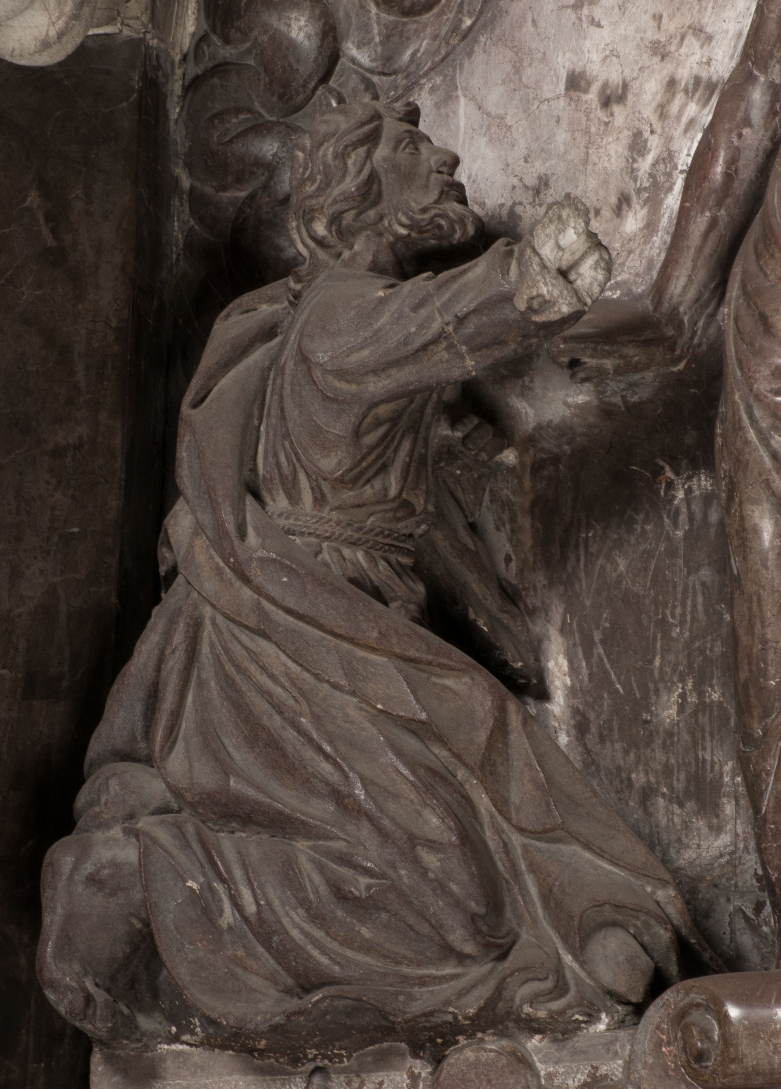 Autorem marmurowych figur nie był jednak Santi Gucci. Być może powstały nieco później, na co wskazywał Rafał Nawrocki. Manierystyczny typ postaci Chrystusa jest bliższy dziełom rzeźbiarzy niderlandzkich, podobnie jak motyw Vanitas rozpowszechniony w grafice niderlandzkiej. Jeszcze późniejsza wydaje się być figura św. Tomasza, kamienna, o wyraźnie barokowych kształtach.
