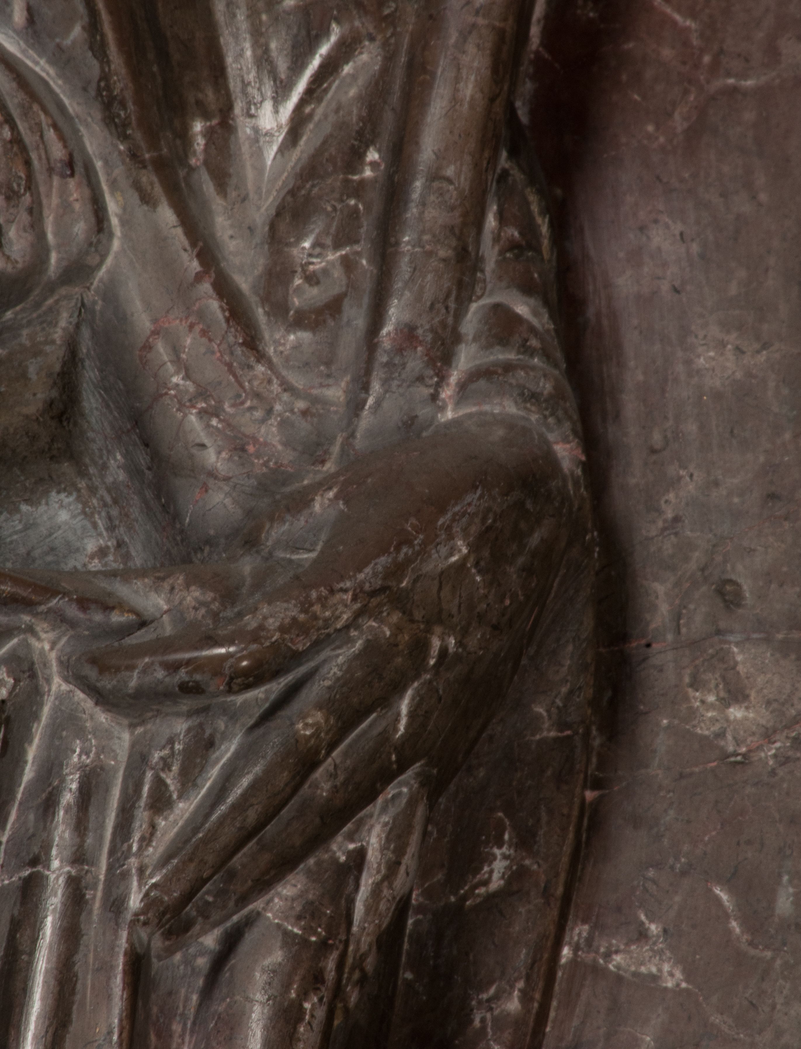 Uszkodzenia i zabrudzenia powierzchni kamienia i marmuru, odpryski i pęknięcia. Brak prawej dłoni św. Tomasza. Brak pierwotnej polichromii, której ślady widziała Sinko-Popielowa.