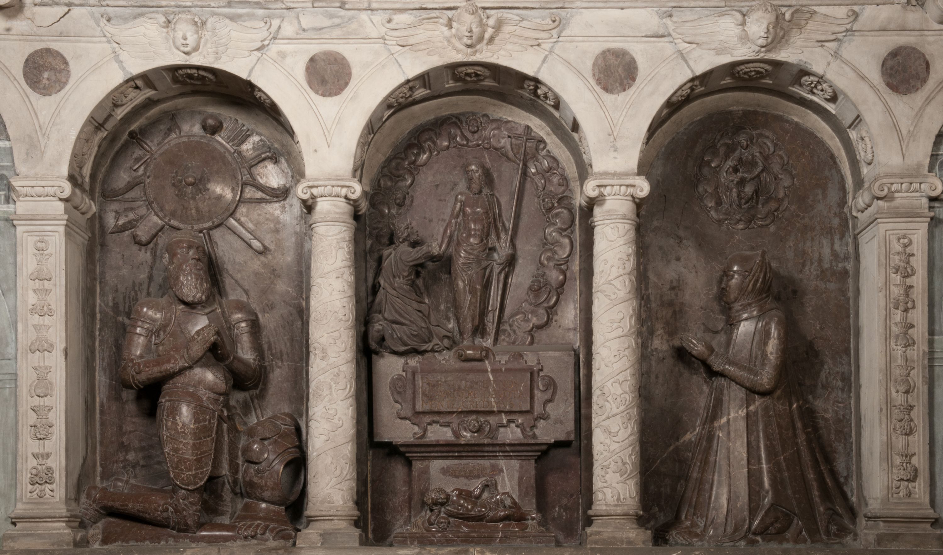 Nagrobek Katarzyny i Grzegorza Branickich należy do najciekawszych przykładów rzeźby i małej architektury w Polsce w okresie manieryzmu. Postał najpewniej pod koniec XVI wieku w warsztacie Santi Gucciego, ale partie figuralne, postacie adorujących zmartwychwstałego Chrystusa zmarłych wykonał rzeźbiarz o niderlandzkich korzeniach artystycznych.