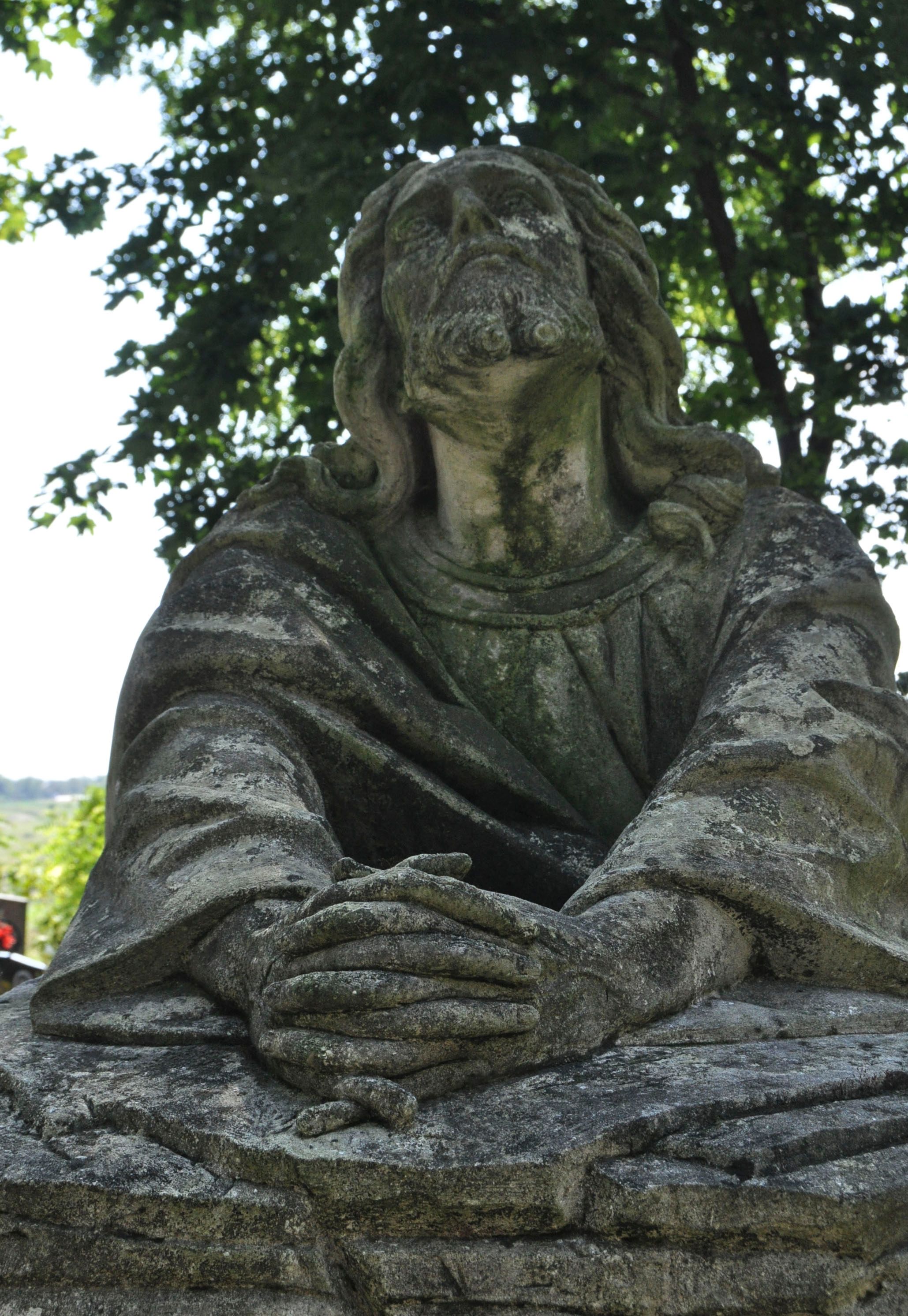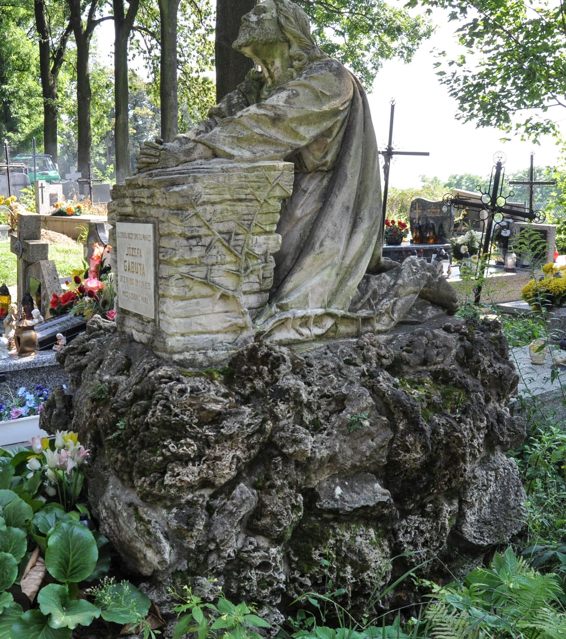 Nagrobek kamienny, wolnostojący z przedstawieniem modlitwy Chrystusa w Ogrójcu. Rzeźba posadowiona na bloku imitującym skały, na którym umieszczono Zbawiciela klęczącego przed pulpitem wybudowanym z kamieni. Chrystus złożone do modlitwy ręce wyciąga przed siebie i opiera na pulpicie, głowę ma uniesioną, spogląda w niebo. Ma podłużną twarz, na której maluje się wyraz rozpaczy, krótką brodę i długie włosy opadające puklami na ramiona i plecy. Jest ubrany w długą, przepasaną suknię i płaszcz. Na przedniej stronie pulpitu tablica z kutą, złoconą inskrypcją „ZA SPOKÓJ DUSZY ŚWIĘTEJ PAMIĘCI / JÓZEFA / GABUTA / UR(ODZONEGO) 2. VII 1910 ZM(ARŁEGO) 11. IV 1933. / PROSI O ZDROWAŚ MARIA”.
