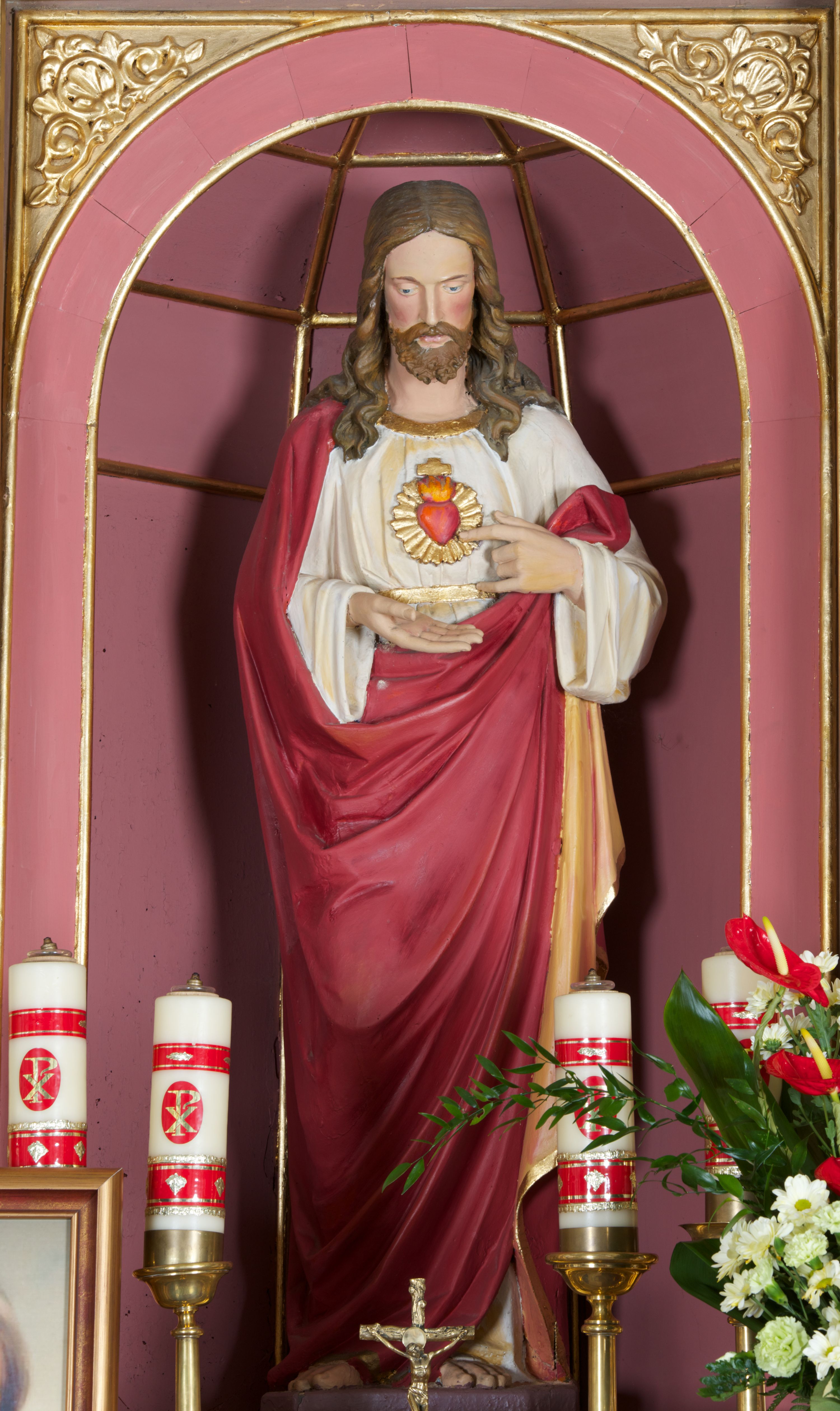 Rzeźba Najświętszego Serca Pana Jezusa została wykonana w zakładzie Kazimierza Mieczysława Chodzińskiego w Krakowie w 1895 roku i stanowi przykład najpopularniejszego wariantu ikonograficznego tego tematu w sztuce, zwłaszcza w drugiej połowie XIX i w XX wieku.