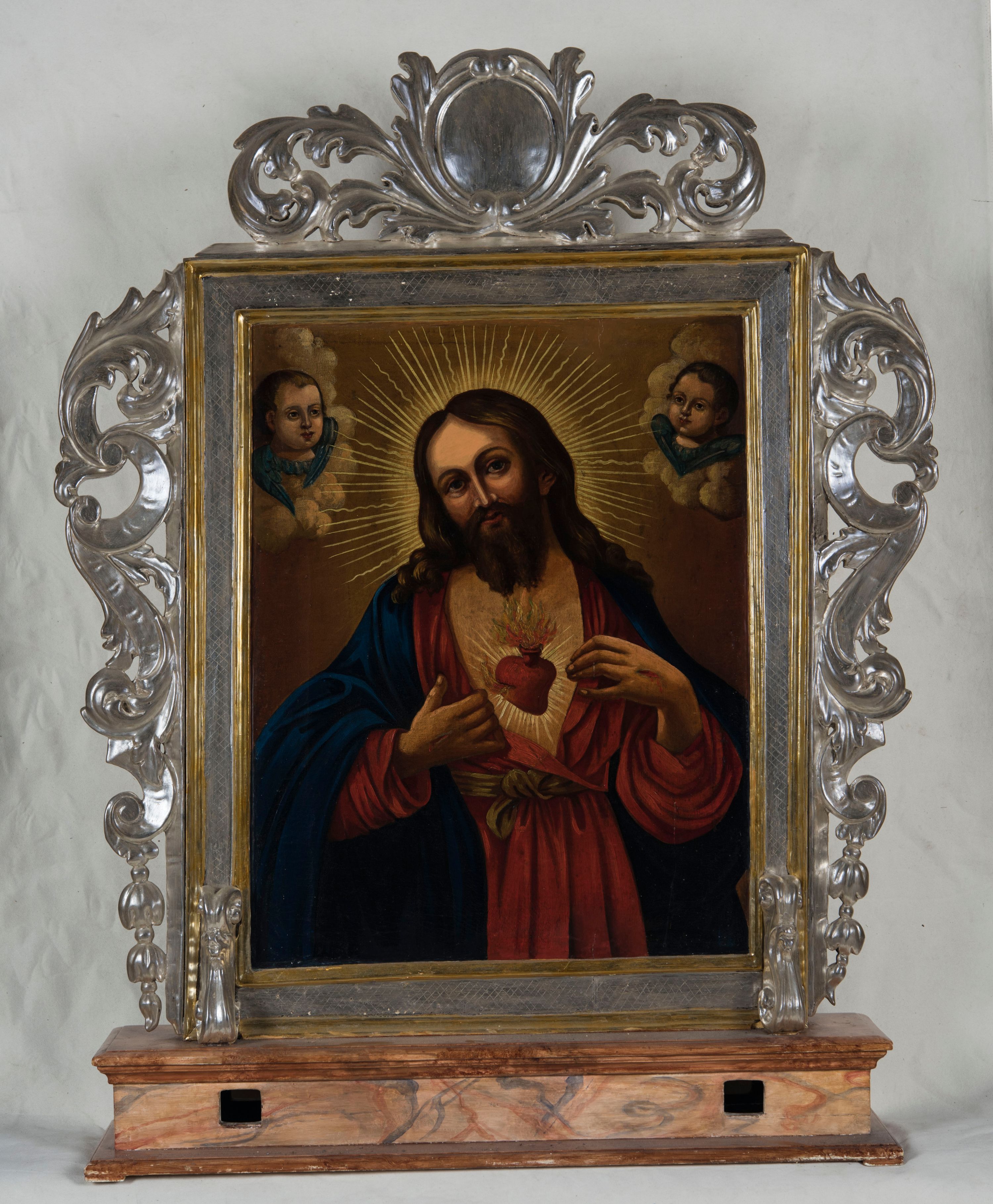 Rozwój przedstawień ukazujących Najświętsze Serca Pana Jezusa był związany z propagowaniem jego kultu przez jezuitów, wzmożonego po ustanowieniu w 1765 roku przez papieża Klemensa XIII osobnego święta, zaprowadzonego w Polsce na prośbę biskupów w 1763 roku. Kompozycja obrazu powtarza popularny układ postaci Chrystusa ukazującego Najświętsze Serce zastosowany na osiemnastowiecznym obrazie Najświętszego Serca Jezusa umieszczonym w piętnastowiecznym baldachimowym ołtarzu w katedrze św. Szczepana w Wiedniu, czy też dwóch obrazach z pierwszej połowy XIX wieku w ołtarzu głównym w kościele parafialnym św. Rocha w Zamarskach na Śląsku Cieszyńskim oraz w zbiorach konwentu benedyktynek w Staniątkach. Z kolei przedstawienie św. Izydora-Oracza z Madrytu, kanonizowanego w 1622 roku, który patronował rolnikom, wpisuje się w jego ciekawą ikonografię obecną w różnych miejscach w Europie. Najwięcej druczków hagiograficznych poświęconych św. Izydorowi zaczęło się ukazywać dopiero w XVII wieku. Jego kult propagowało wśród chłopów specjalnie powołane Bractwo św. Izydora. Pierwsza taka konfraternia w Polsce powstała w 1633 roku w Więcławicach pod Krakowem. Najczęściej z jego legendy przedstawiano dwa cuda. Święty Izydor jest pogrążony w modlitwie, zaś jego pracę (orkę wołami) wykonuje anioł lub aniołowie, co znalazło swój wyraz na jawiszowickim feretronie. Drugi cud dotyczył cudownego wyprowadzenia źródła przez św. Izydora, z którego mógł napić się jego pan Jan de Vargas. Artyści dla swoich przedstawień czerpali inspiracje z licznych drzeworytów, najczęściej ukazujących modlącego się św. Izydora przed krzyżem, co widać np. na późniejszym obrazie z początku XX wieku w kościele Trójcy Świętej w Bobrku koło Oświęcimia. Z kolei np. aniołów orzących zamiast św. Izydora odnajdujemy na obrazie tegoż świętego w kościele parafialnym św. Marcina w Radziechowach z 1719 roku, autorstwa Stanisława Lisickiego z Żywca. W tym przypadku ukazany na pierwszym planie św. Izydor podobnym rydlem co w Jawiszowicach wyprowadza źródło ze skały. Ciekawe jest również to, że św. Izydor-Oracz na feretronie został ukazany w stroju ludowym z terenów Wielkopolski.