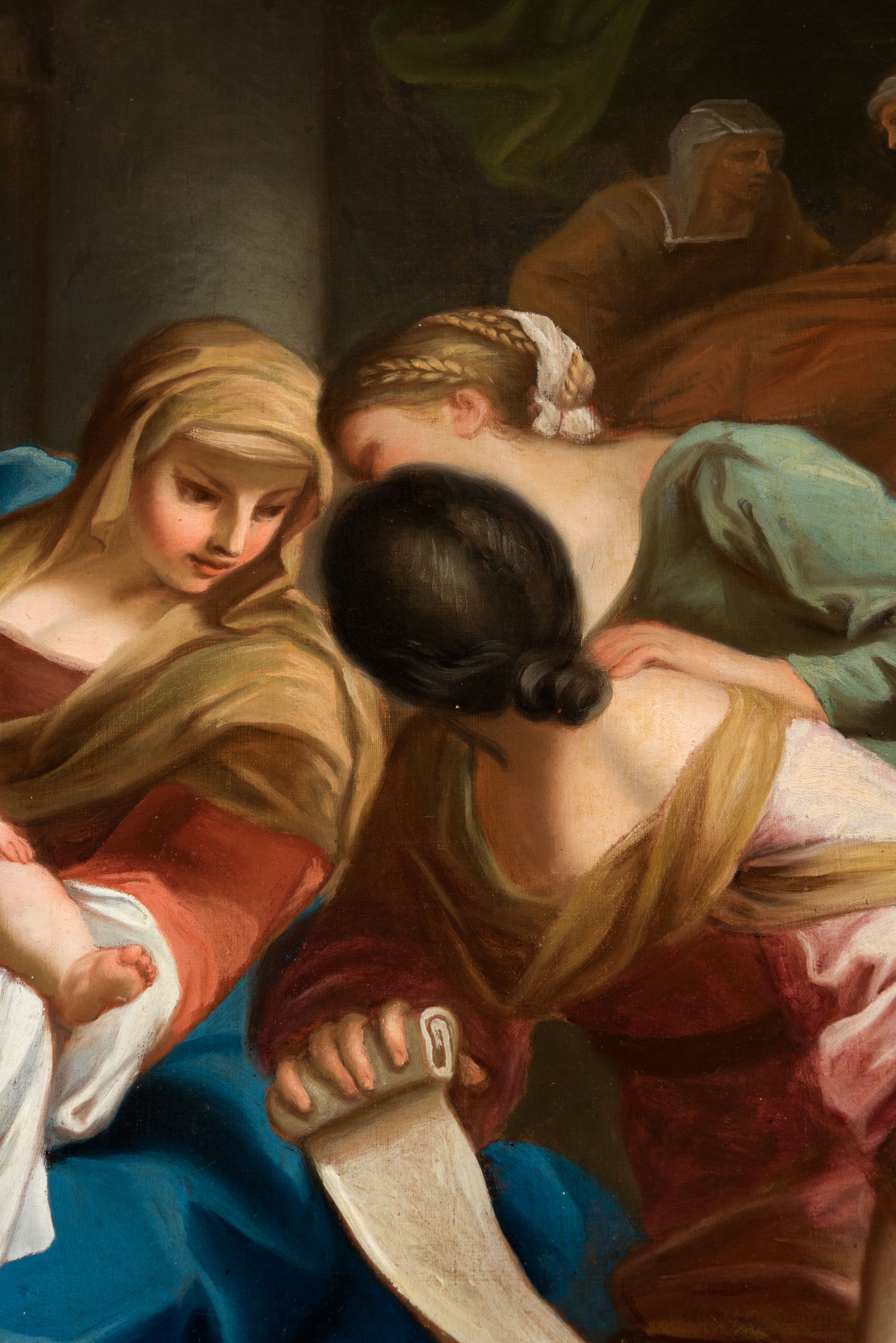 Cykl obrazów z zaplecek stall kościoła św. Anny wykonał Szymon Czechowicz około 1741 roku. Jego tematem są dzieje Joachima i Anny, rodziców Matki Boskiej. Obraz z przedstawieniem Narodzenia Marii jest ostatnim z cyklu. Pierwowzorem dzieła była rycina rzymskiego malarza Carla Maratty, nauczyciela w Akademii św. Łukasza w Rzymie, w której uczył się Czechowicz. Autor krakowskiego obrazu dostosował prostokątną rycinę do owalnego kształtu obrazu poprzez nieznaczne zmiany w tle oraz redukcję dwóch kobiecych postaci do jednej – Joachima. Charakterystycznymi cechami dzieła są dynamiczna kompozycja, bogata kolorystyka, szkicowy, szybki dukt pędzla, wystudiowane, niemal teatralne gesty oraz miękki modelunek światłocieniowy. Obraz z krakowskiego kościoła niewątpliwie należy do najświetniejszych dzieł tego wybitnego polskiego twórcy, który w latach czterdziestych większość dzieł wykonywał samodzielnie, nie będąc przytłoczony nadmiarem zleceń jak w latach późniejszych.