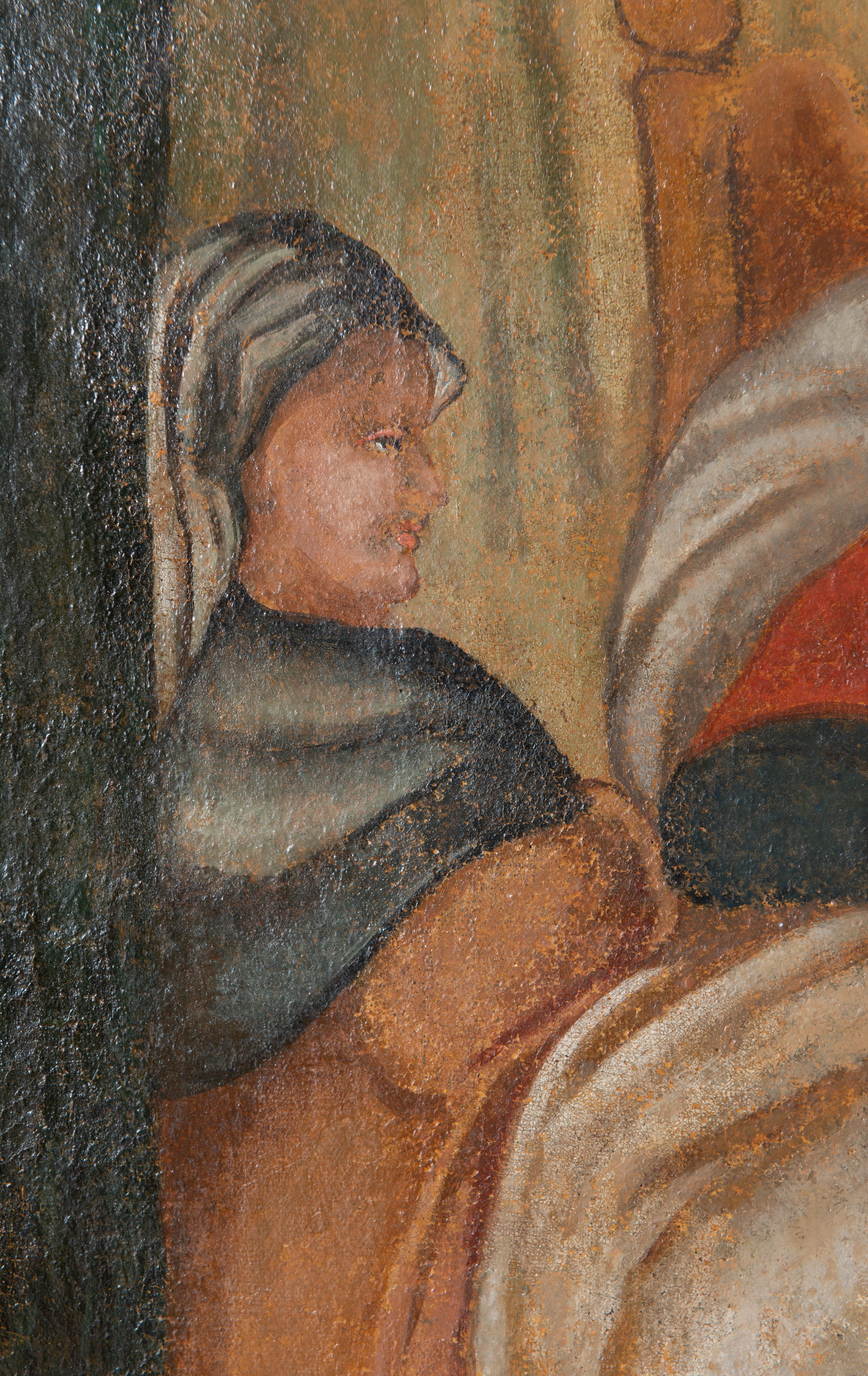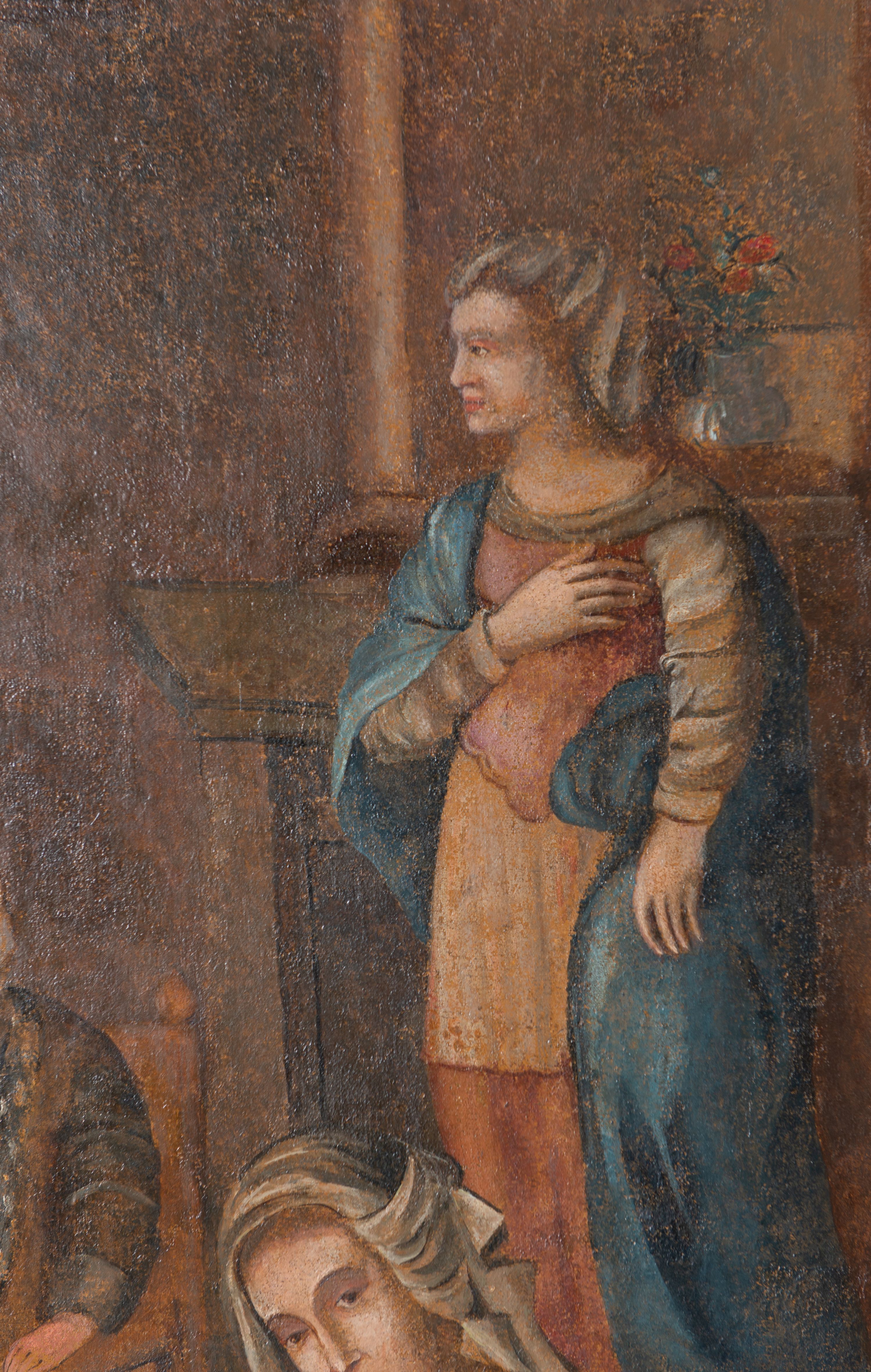 Obraz przechowywany na harklowskiej plebanii zdradza inspiracje malarstwem renesansowym, zwłaszcza gdy przyjrzeć się towarzyszącym scenie postaciom stojących po prawej stronie kompozycji kobiet – jednej z koszem, drugiej z ręką na piersi, jakby wyjętych z zupełnie innego przedstawienia. Artysta starał się ukazać wielopostaciową scenę, jednak nie zawsze trafnie oddane relacje wielkości osób i przedmiotów oraz proporcje ciał każą zauważyć, że nie do końca poradził sobie z tym trudnym zadaniem.
