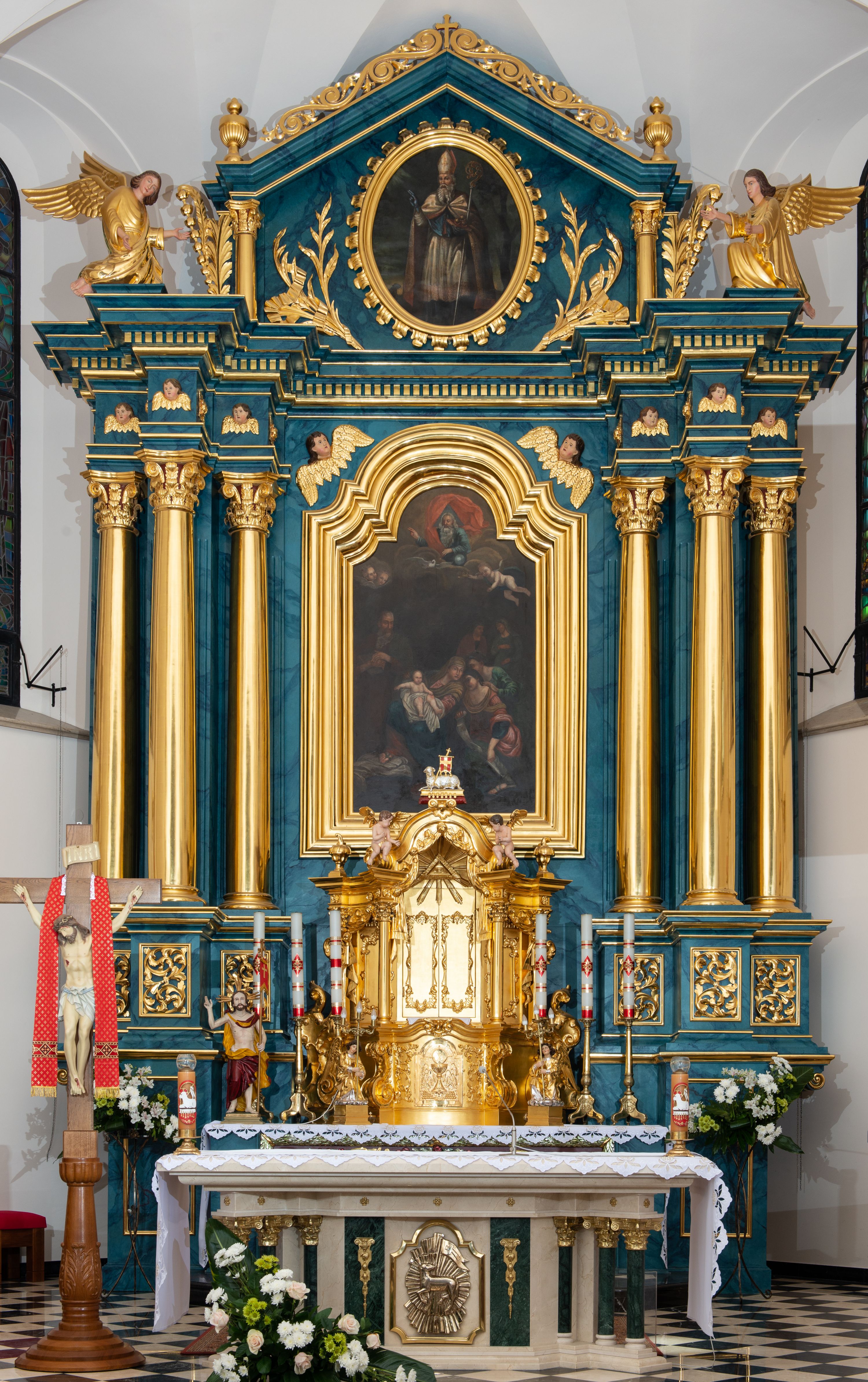 Umieszczony w ołtarzu głównym kościoła parafialnego w Myślenicach obraz przedstawiający scenę Narodzenia Najświętszej Marii Panny został namalowany w 1830 roku przez myślenickiego malarza, Sebastiana Stolarskiego. Fundatorami dzieła było małżeństwo – Jan i Marianna Święchowie.