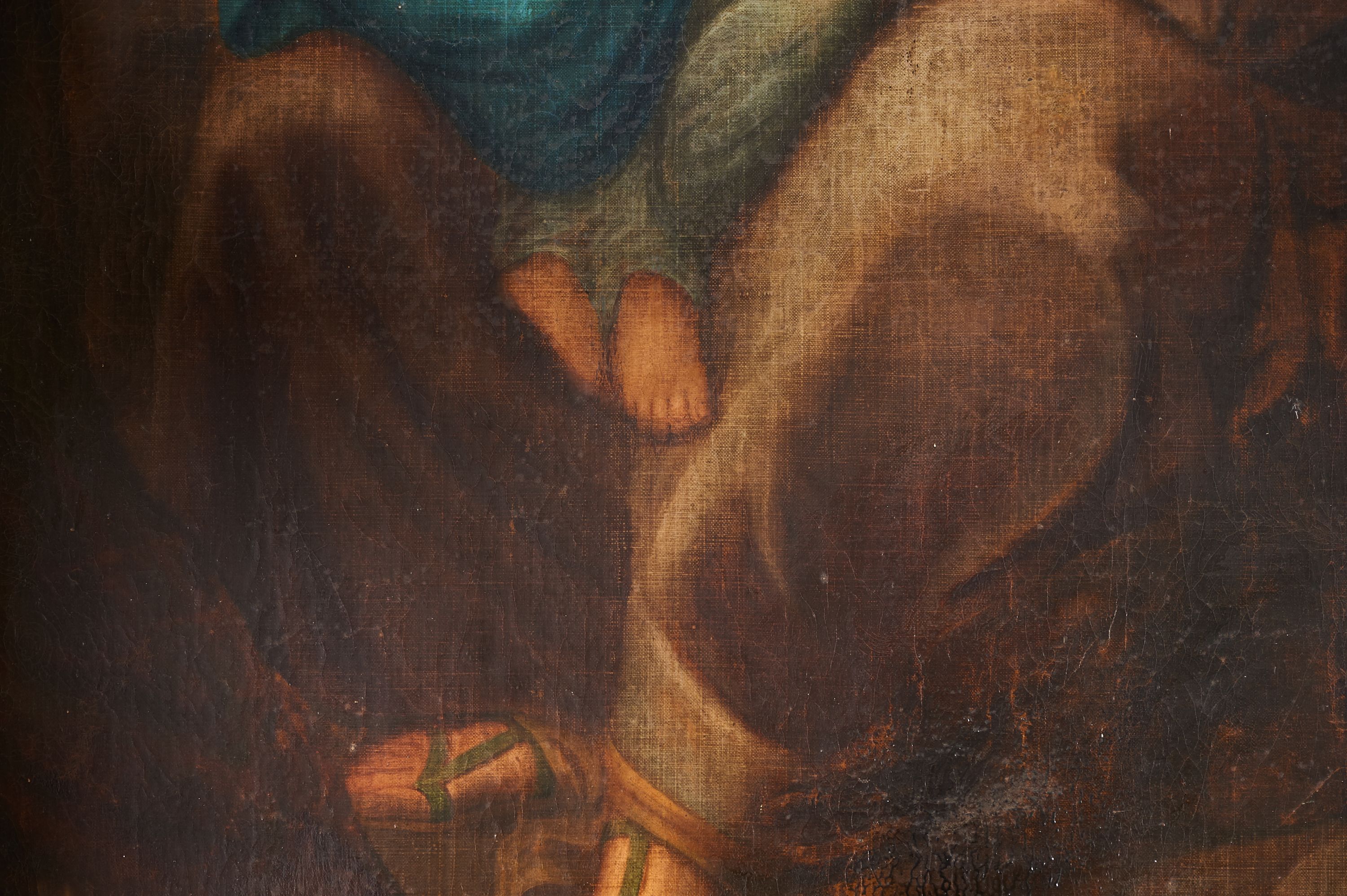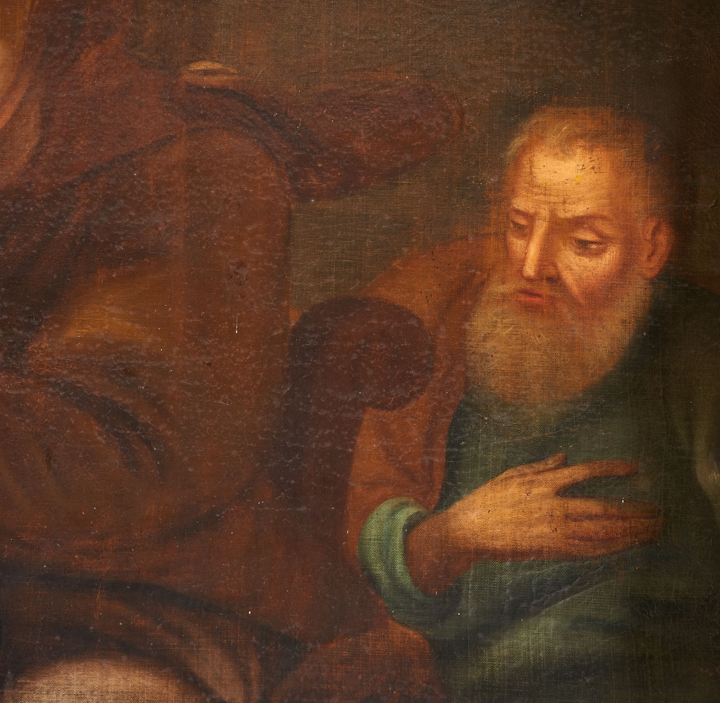 Przetarcia warstwy malarskiej na całej powierzchni obrazu, krakelury i zabrudzenia.