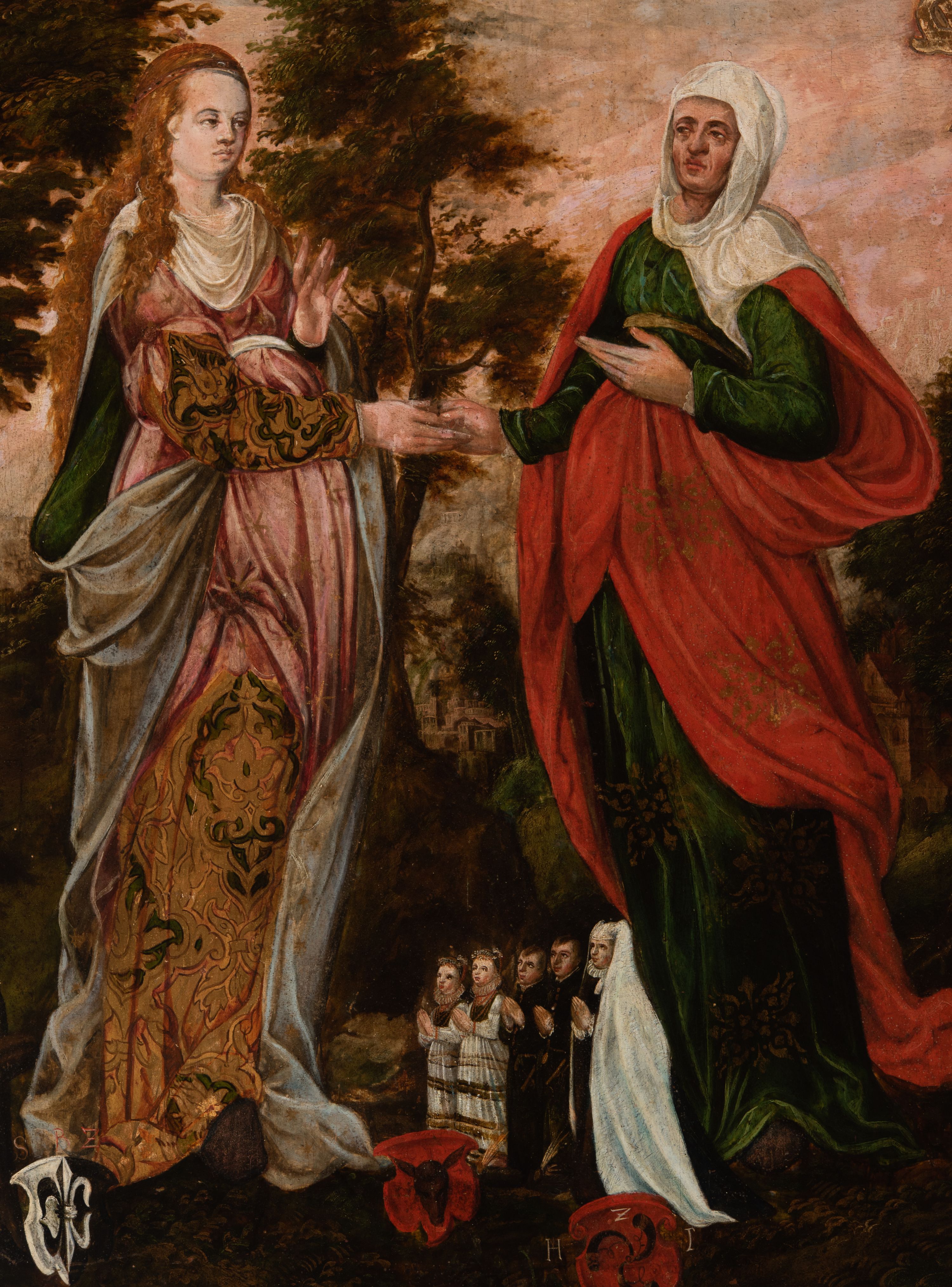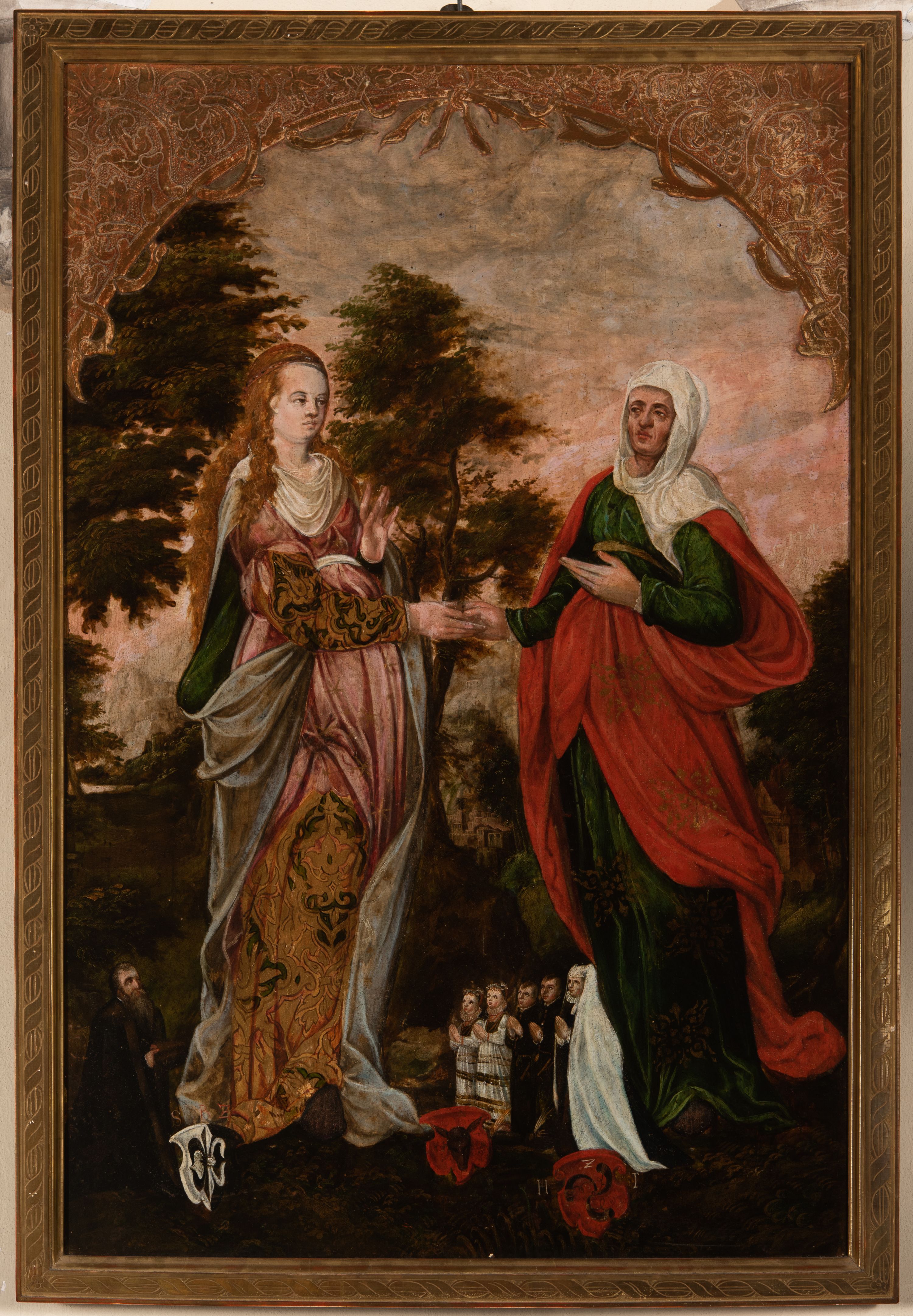 Obraz przedstawia scenę Nawiedzenia przez Marię św. Elżbiety opisaną w Ewangelii św. Łukasza: „W tym czasie Maryja wybrała się i poszła z pośpiechem w góry do pewnego miasta w [pokoleniu] Judy. Weszła do domu Zachariasza i pozdrowiła Elżbietę. Gdy Elżbieta usłyszała pozdrowienie Maryi, poruszyło się dzieciątko w jej łonie, a Duch Święty napełnił Elżbietę. Wydała ona okrzyk i powiedziała: «Błogosławiona jesteś między niewiastami i błogosławiony jest owoc Twojego łona. A skądże mi to, że Matka mojego Pana przychodzi do mnie? Oto, skoro głos Twego pozdrowienia zabrzmiał w moich uszach, poruszyło się z radości dzieciątko w moim łonie. Błogosławiona jesteś, któraś uwierzyła, że spełnią się słowa powiedziane Ci od Pana»” (Łk 1, 39-45).