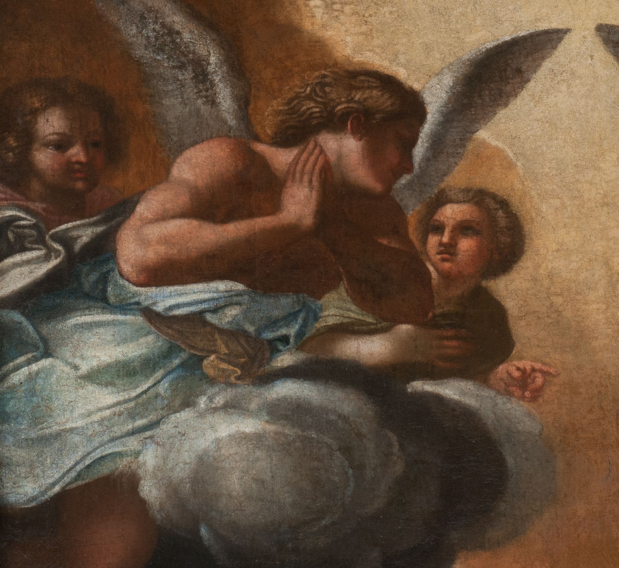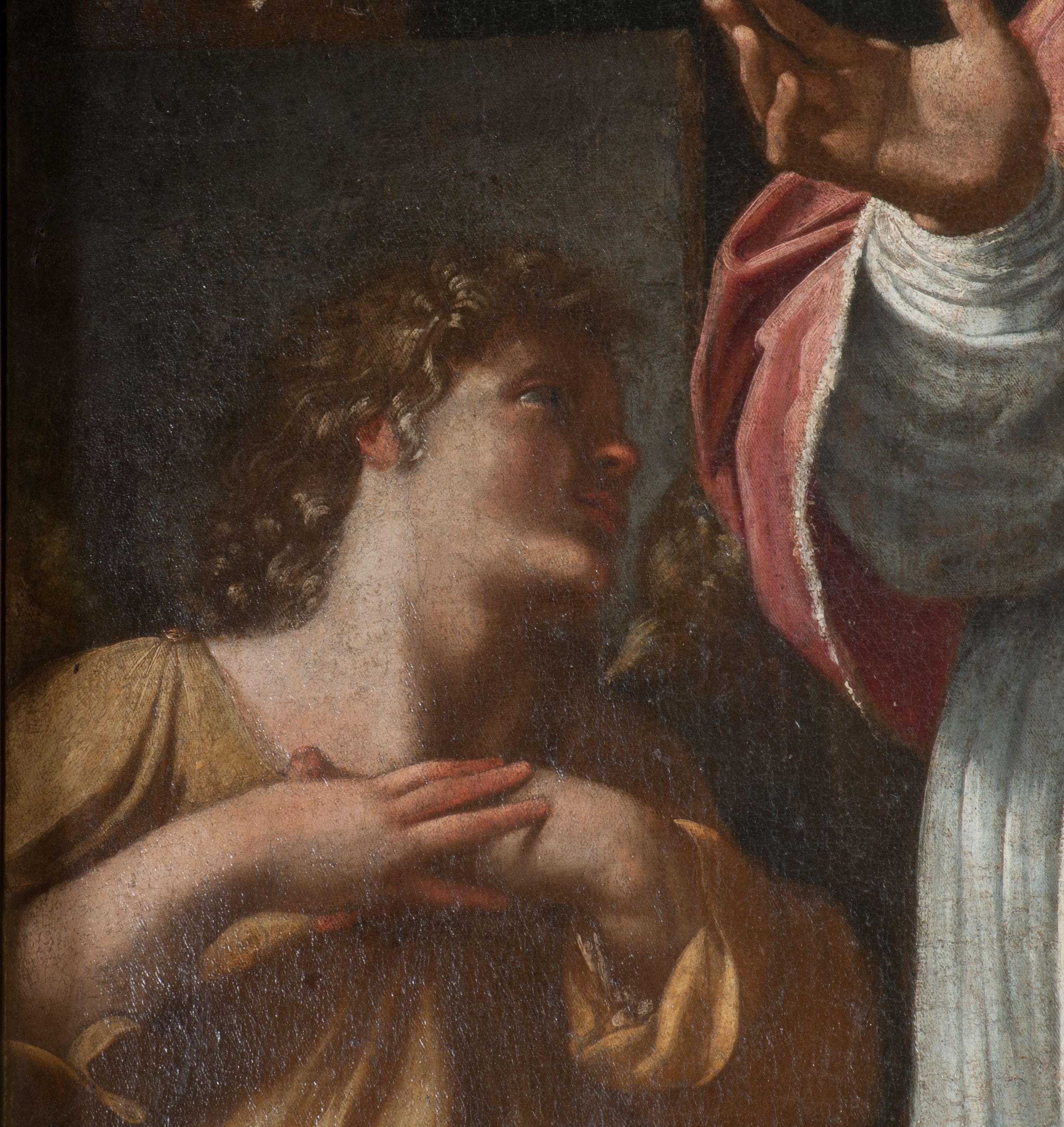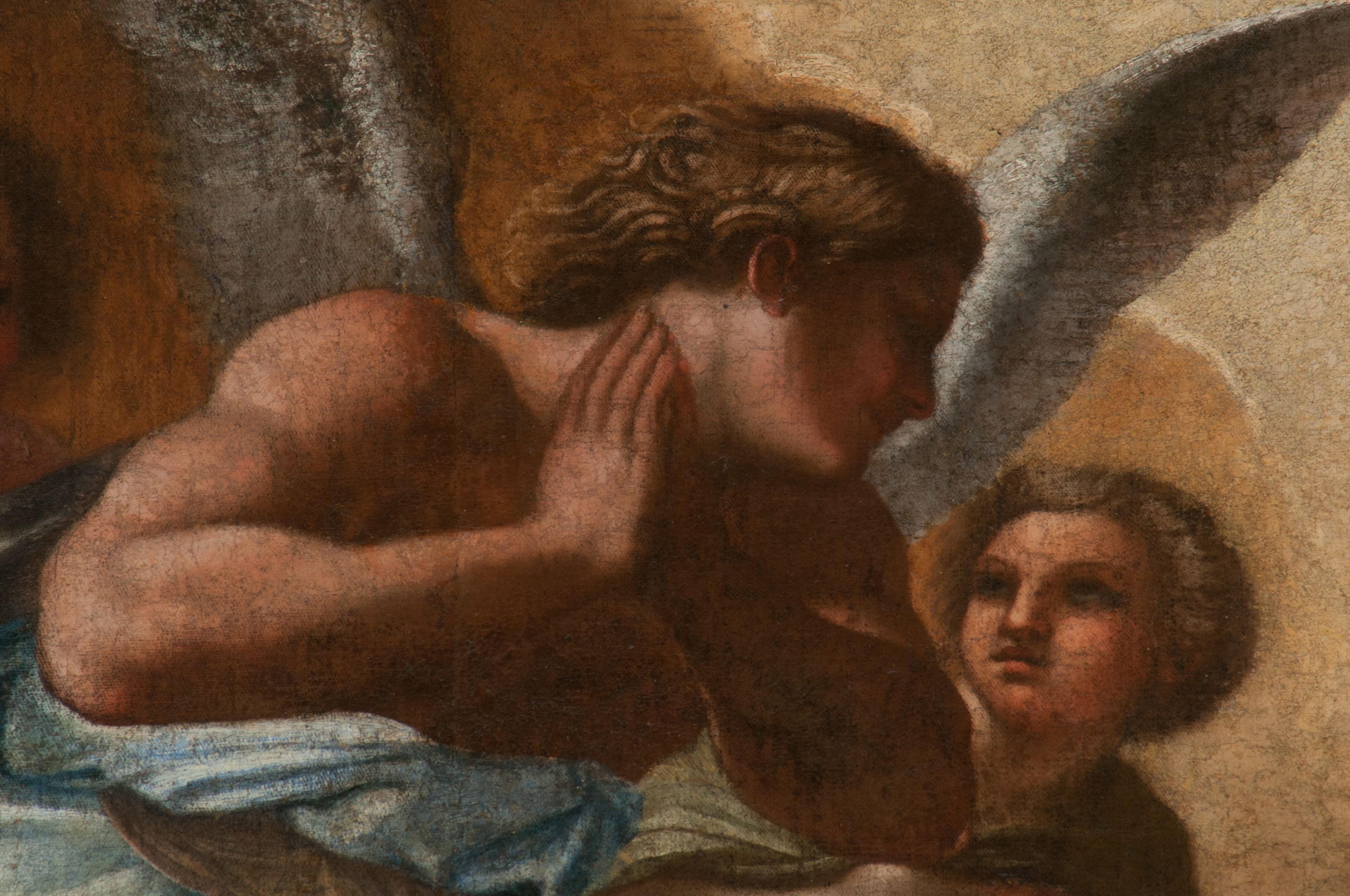 Stan zachowania bardzo dobry, brak widocznych ubytków; obraz odnawiany i konserwowany wraz z nastawą.