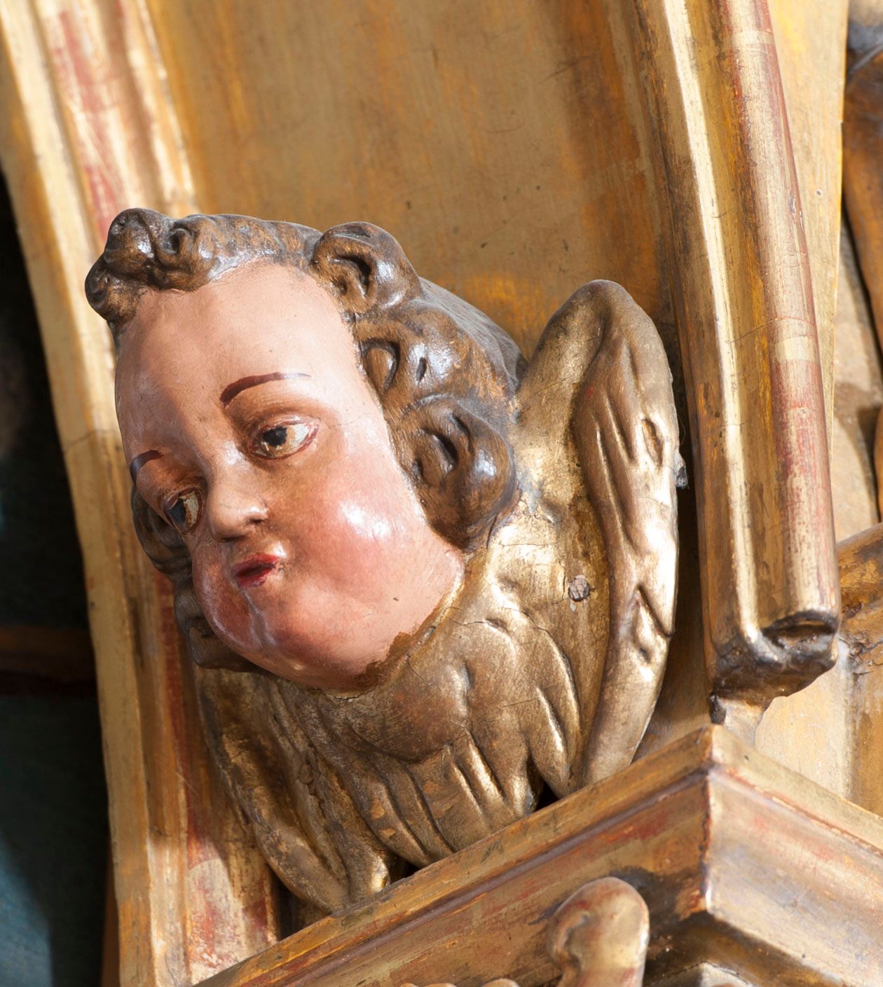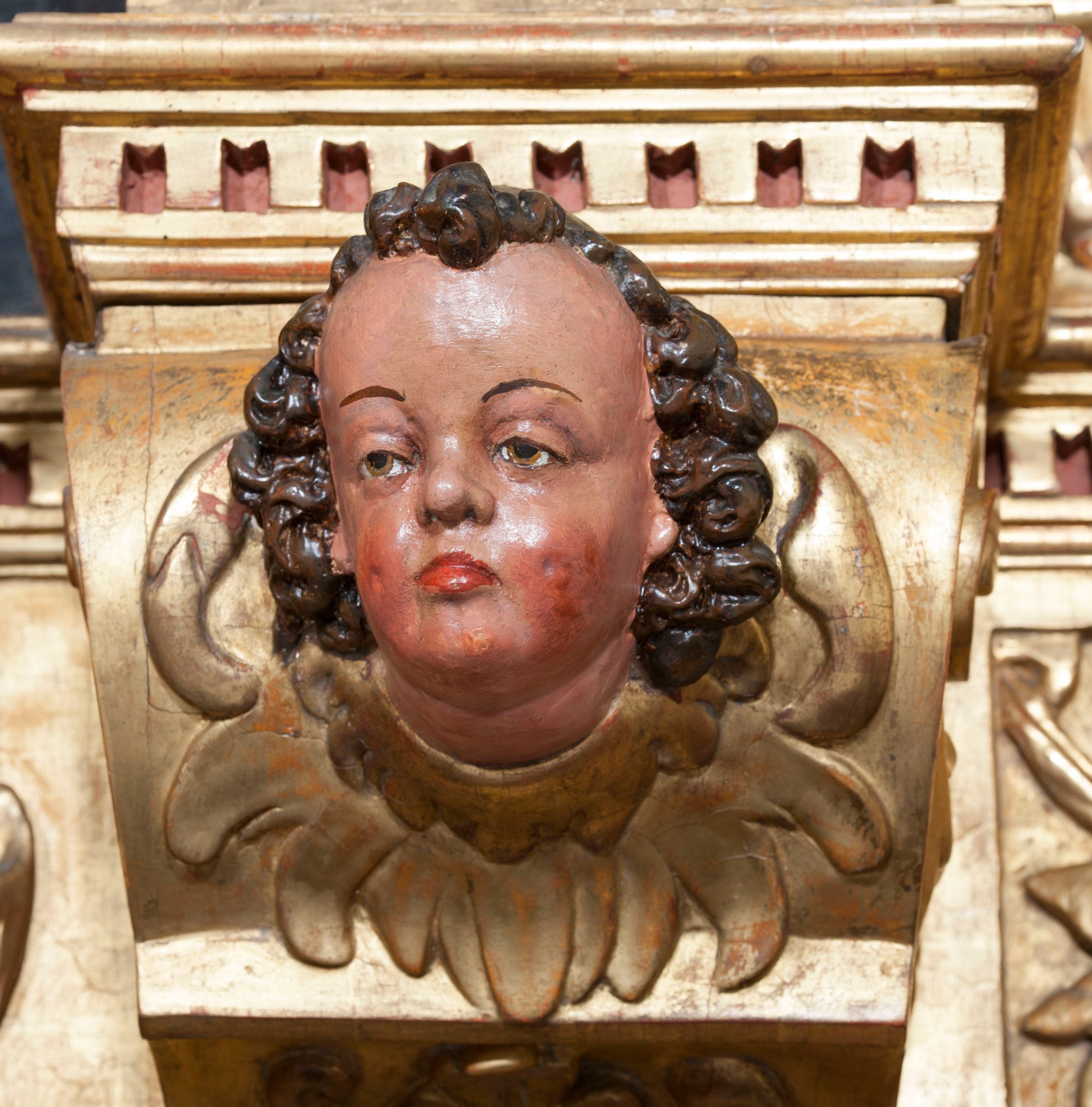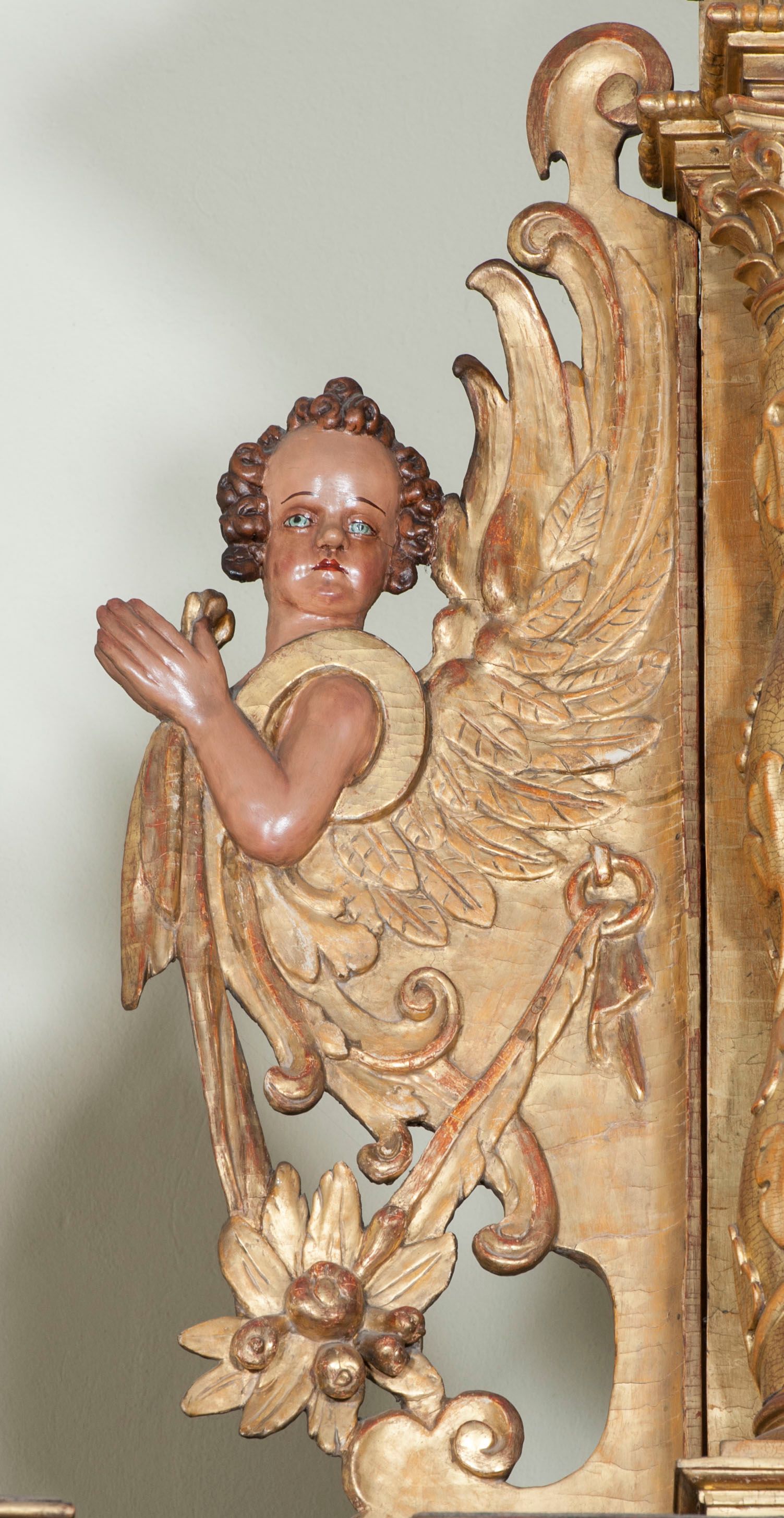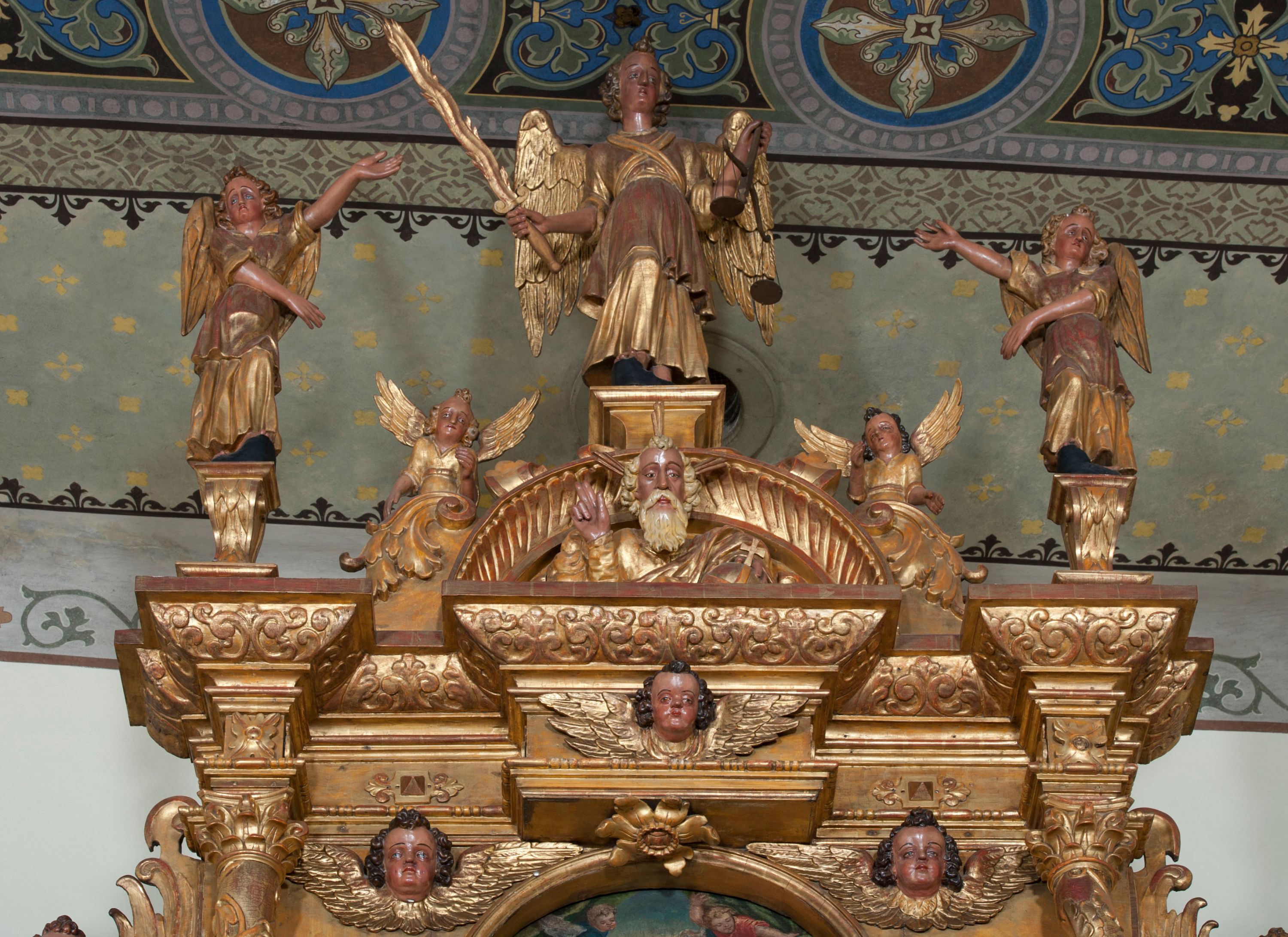 Ołtarz wyjątkowo bogaty, „rojący się od rzeźb”, tryptykowy.
