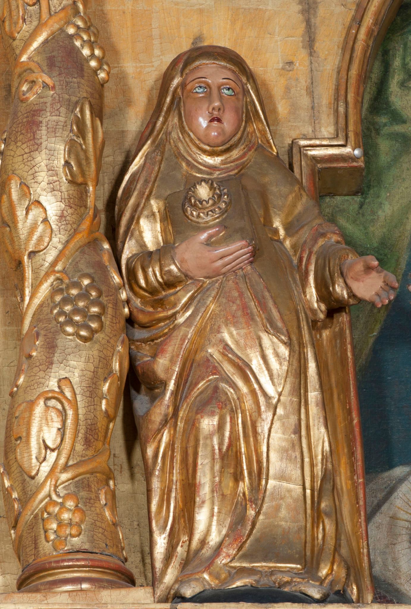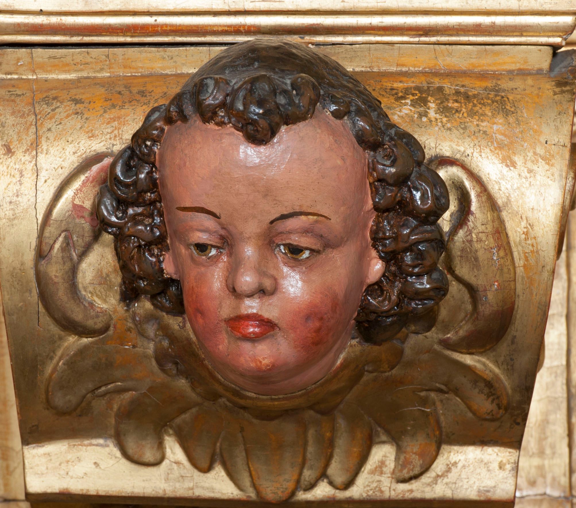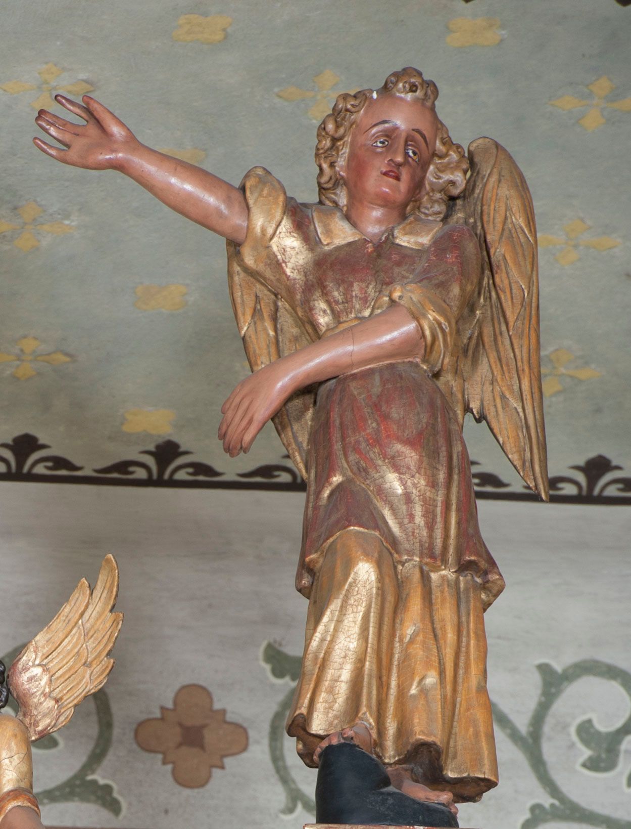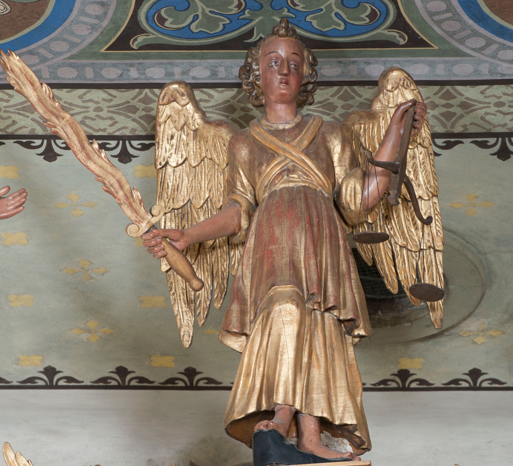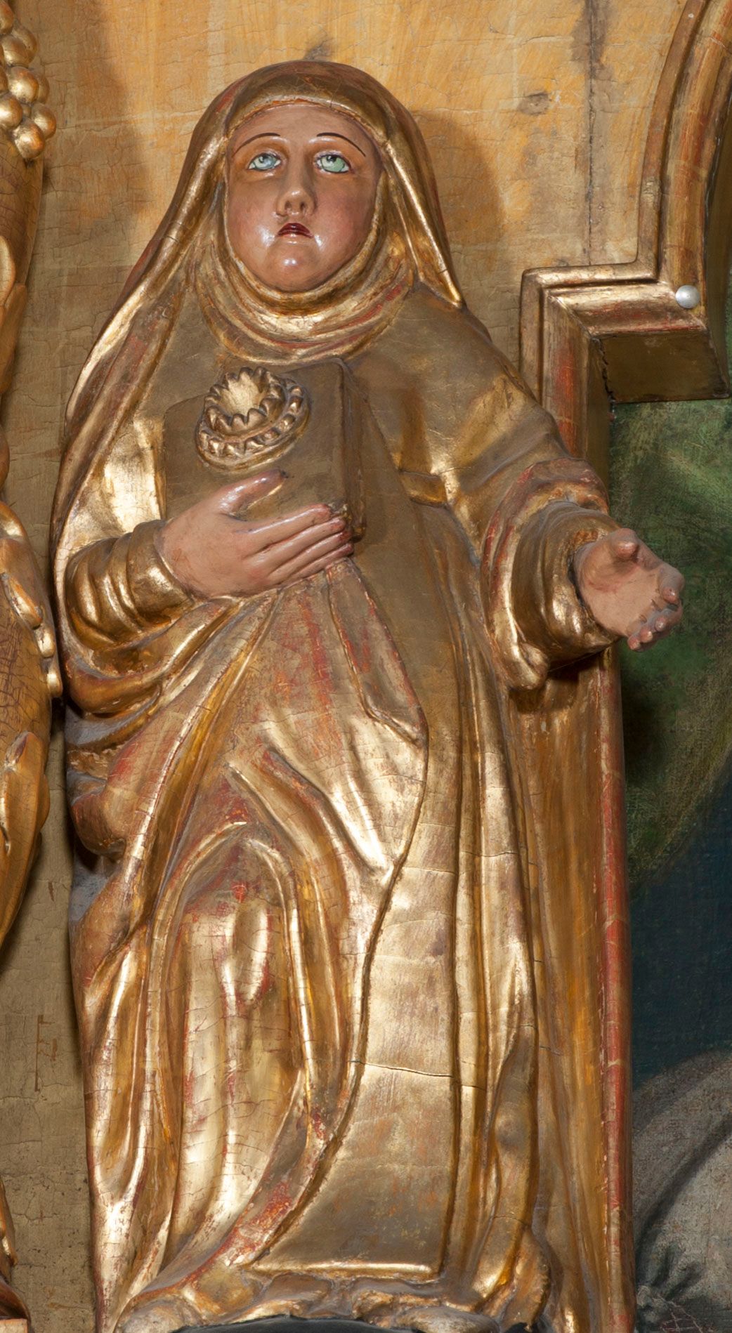Ołtarz wyjątkowo bogaty, „rojący się od rzeźb”, tryptykowy.