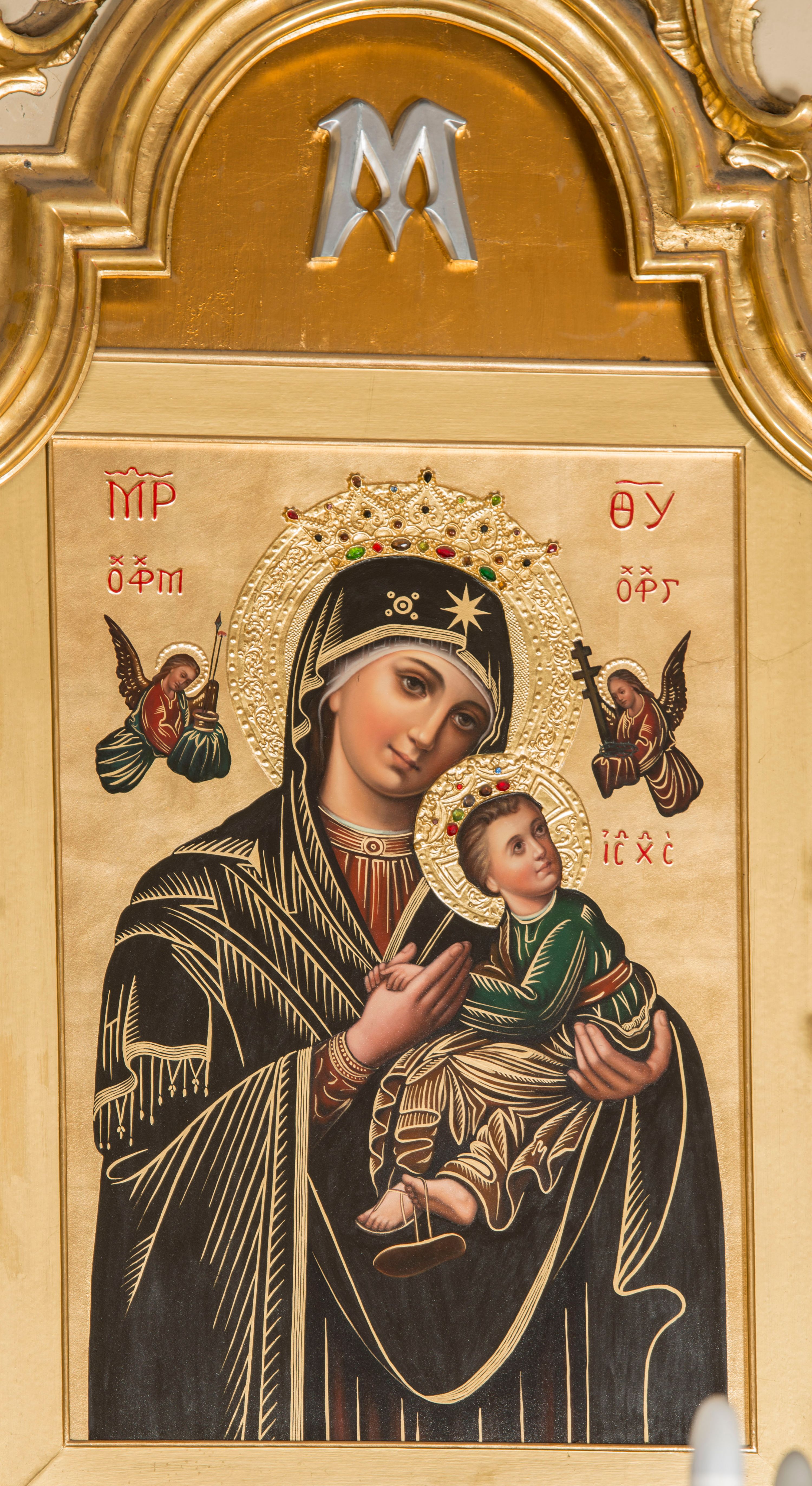 Nastawa została opisana w aktach wizytacji z 1783 roku jako „Drugi Ołtarz na boku z obrazem Matki Boskiey snycerskiey roboty nowy, ieszcze niemalowany, na mensie murowaney z Portatelem”. Informacja ta wskazuje, że retabulum powstało w 1783 roku, a w kolejnych latach zostało polichromowane i złocone.