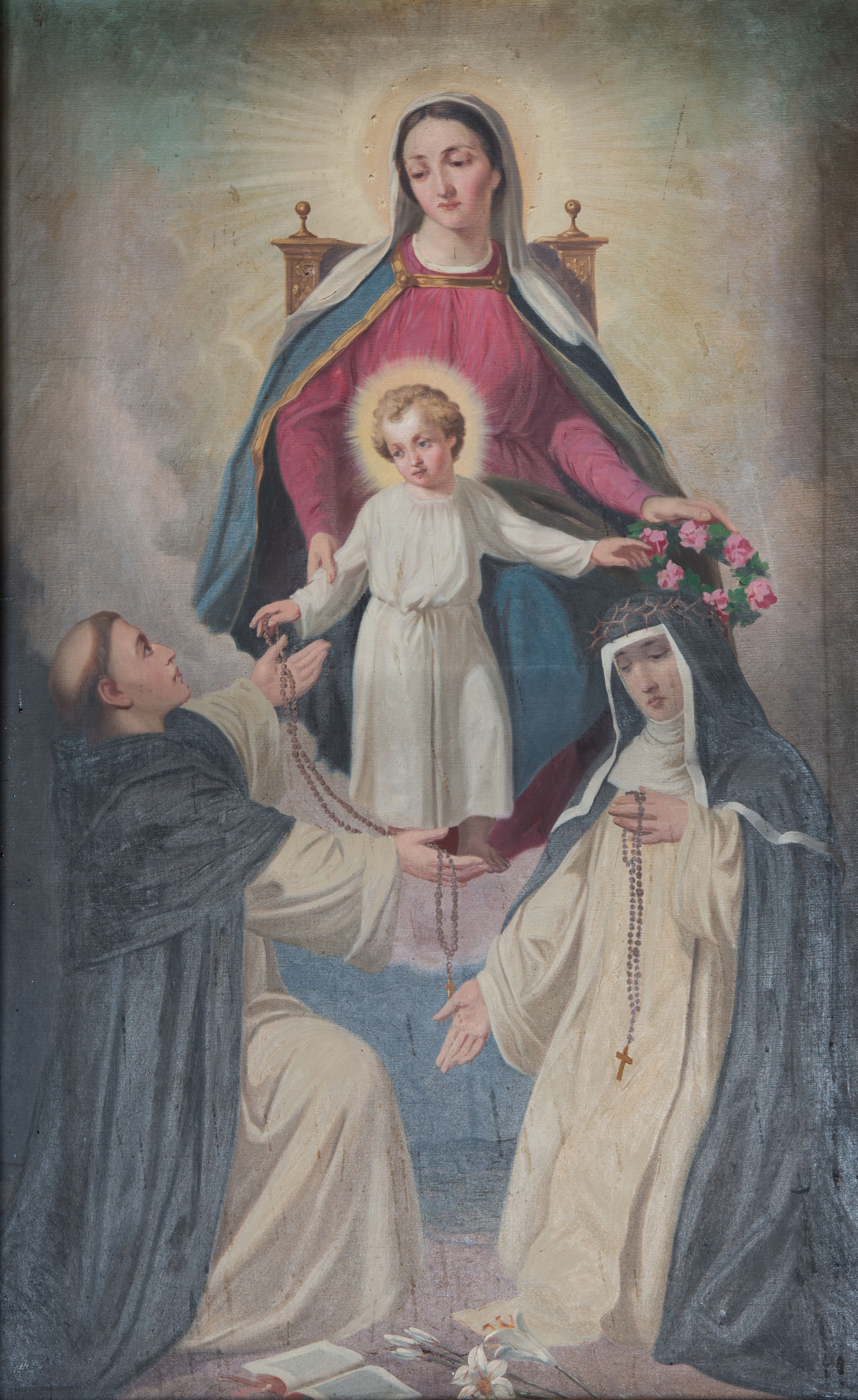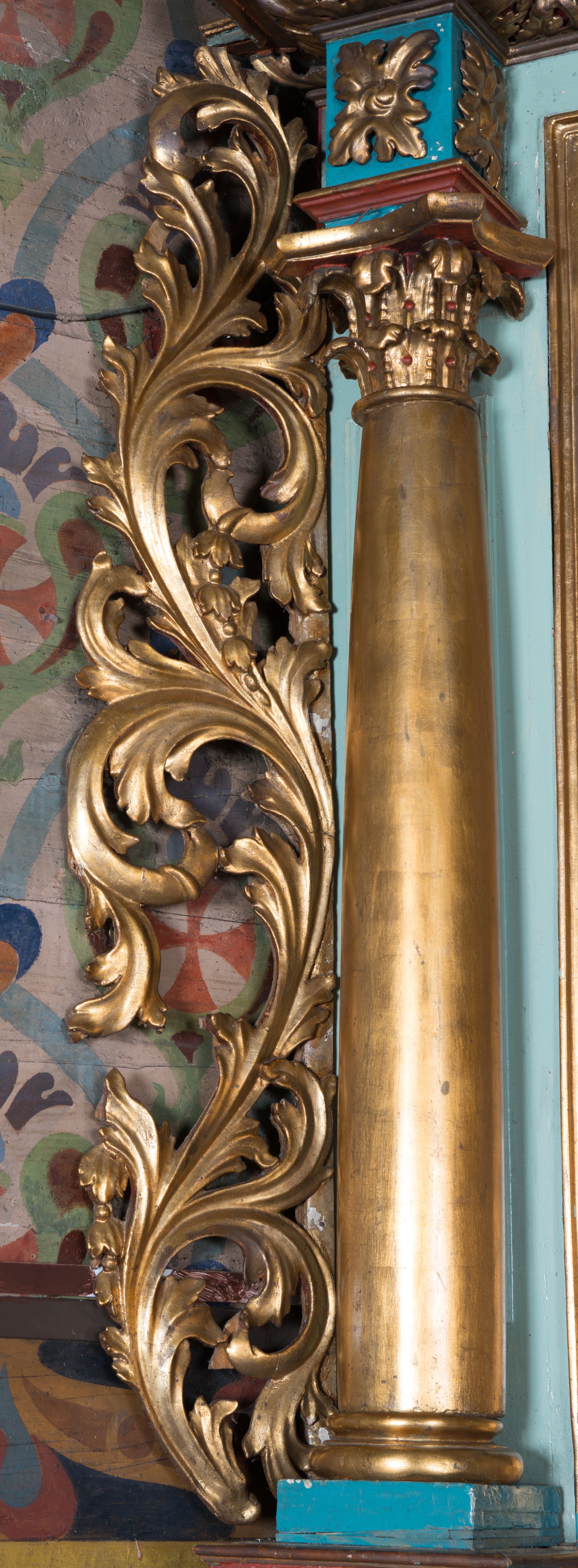 Przetarcia i drobne ubytki mechaniczne polichromii. Liczne przetarcia warstwy złoceń.